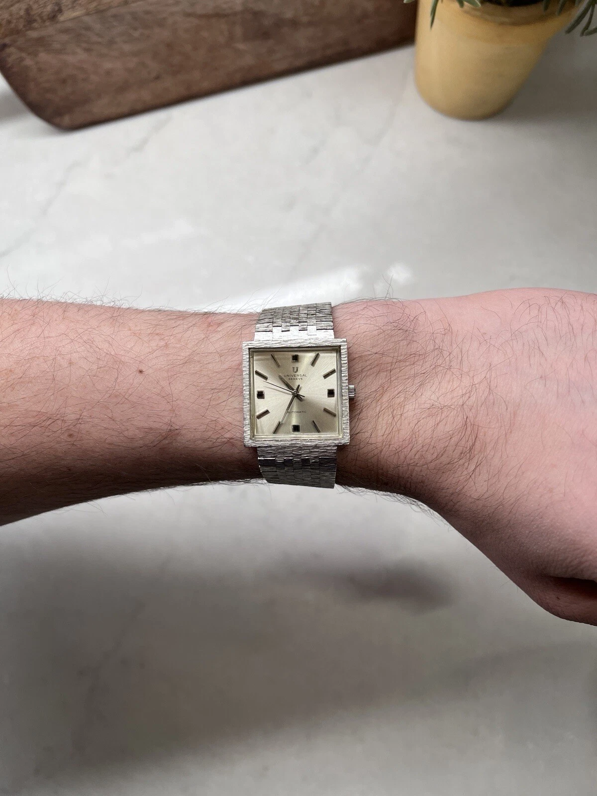 Universal Geneve Integrated Bracelet Watch Automatic Mens Stainless Steel Square