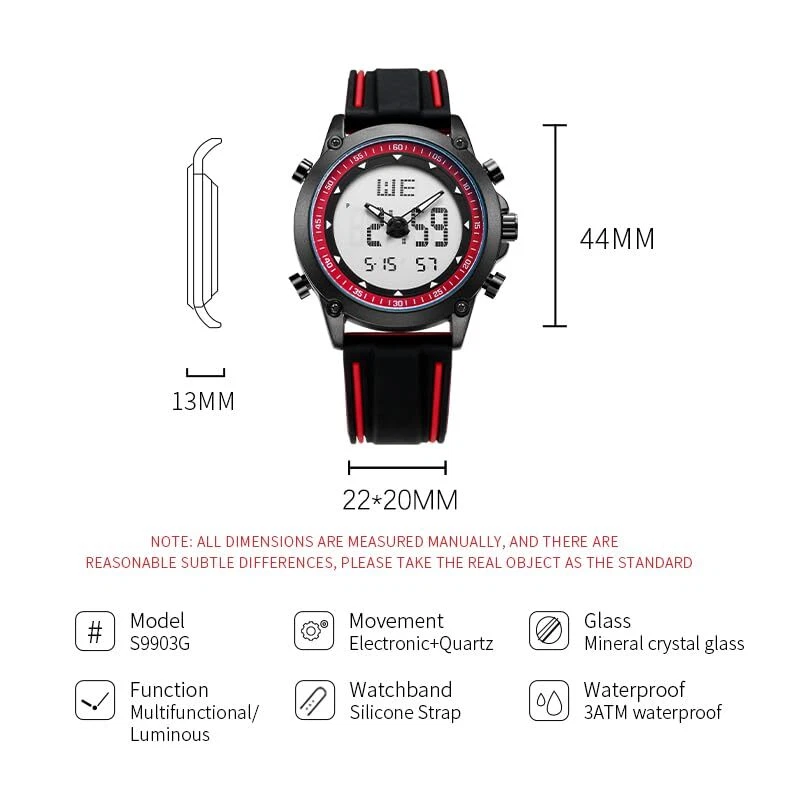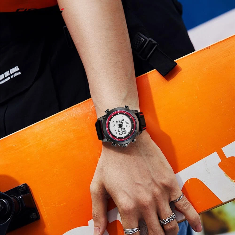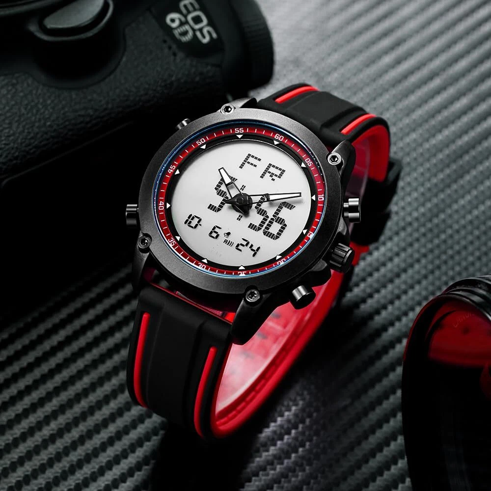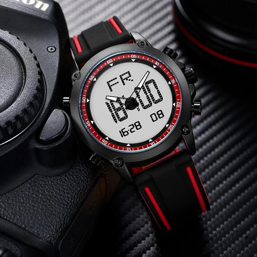 SINOBI Men' Watch Silicone Strap Back Ligh/Alarm/Chronograph, Black-Red, Superb