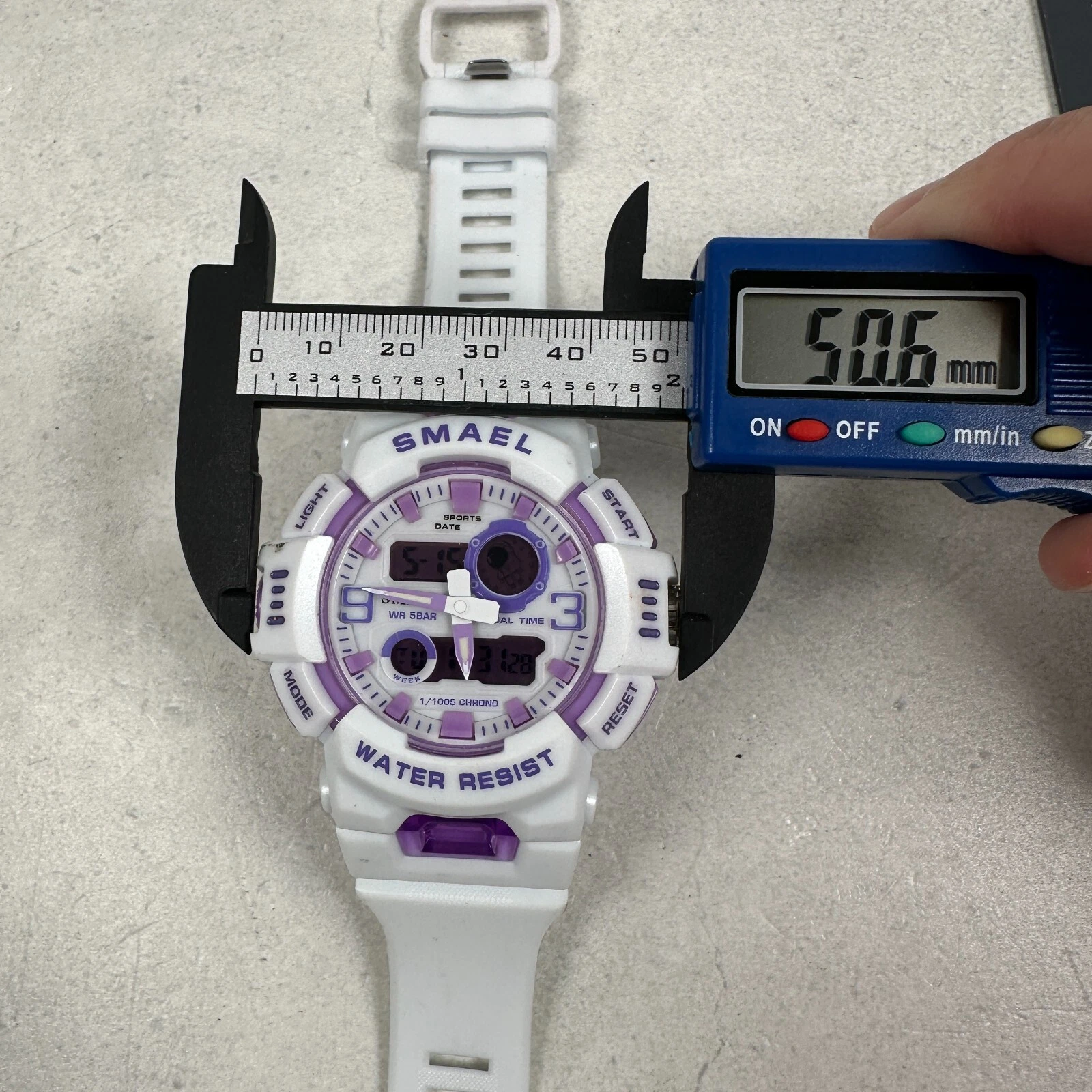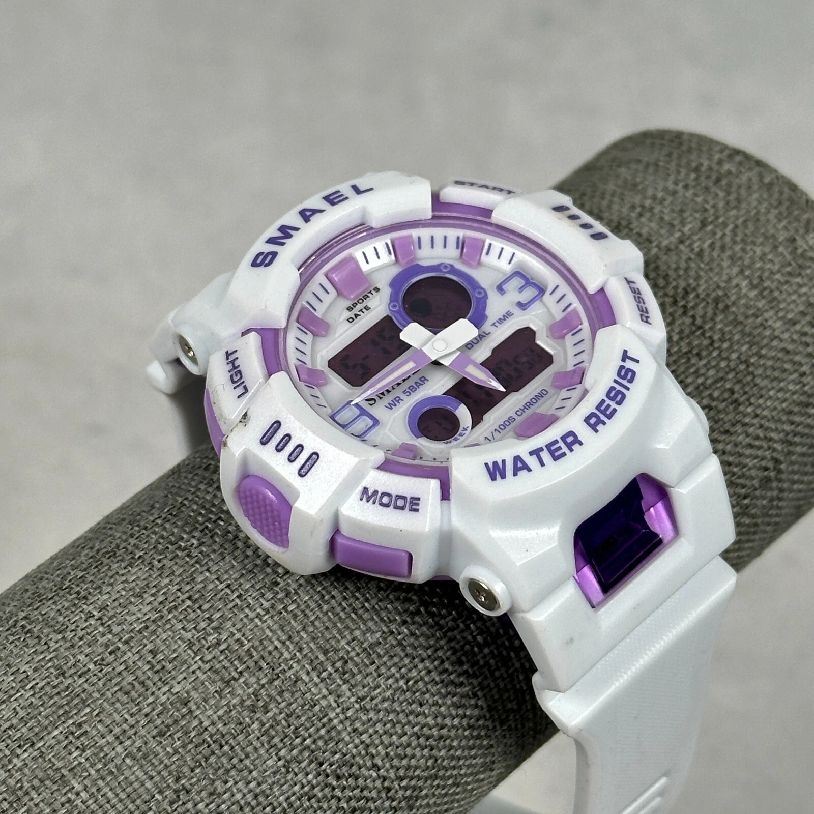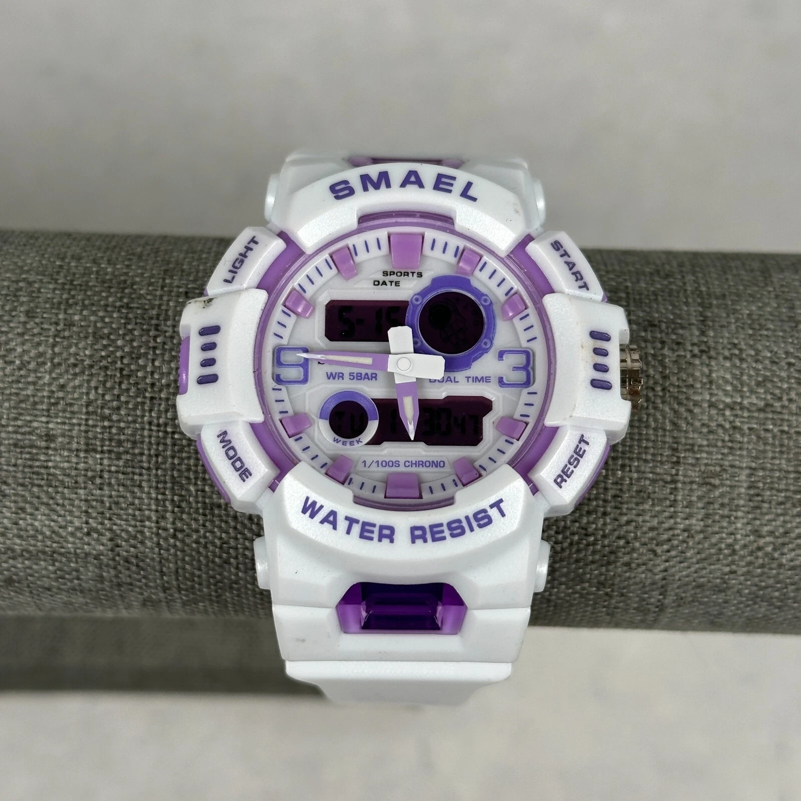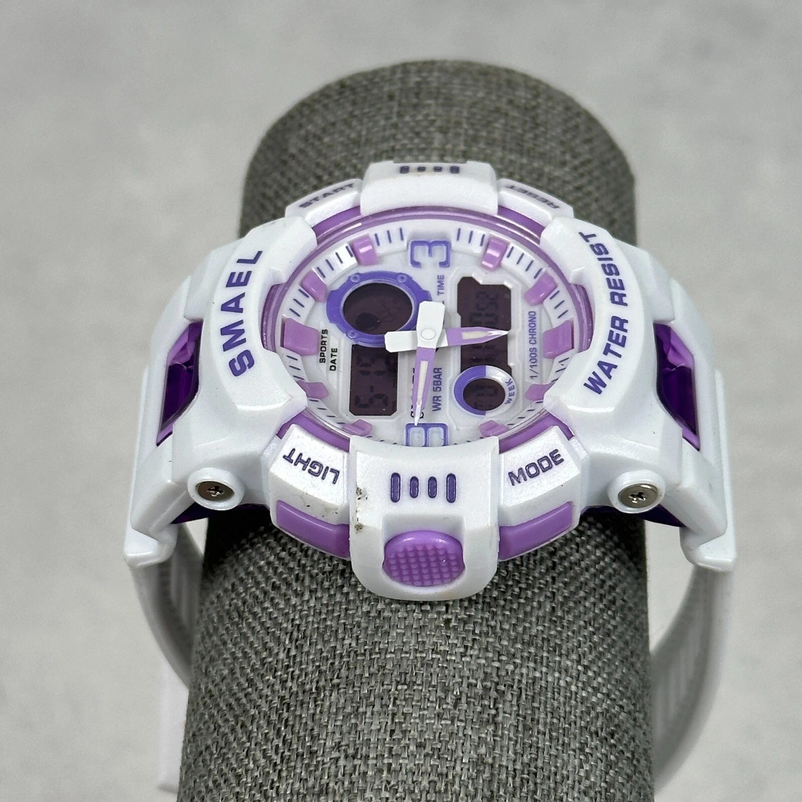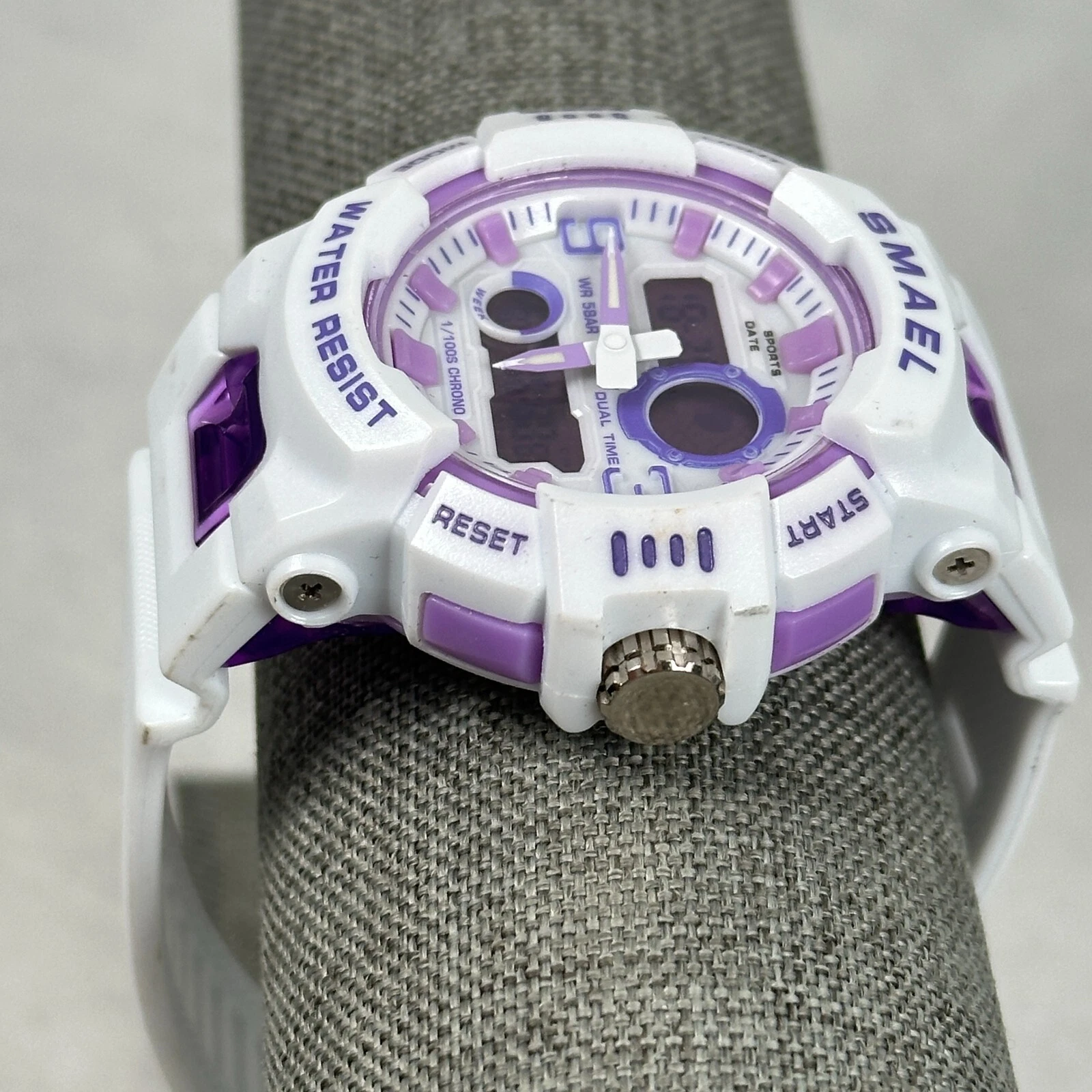 Skemi Watch 50mm White Purple Digital Sport Timer Alarm Water Resist New Battery