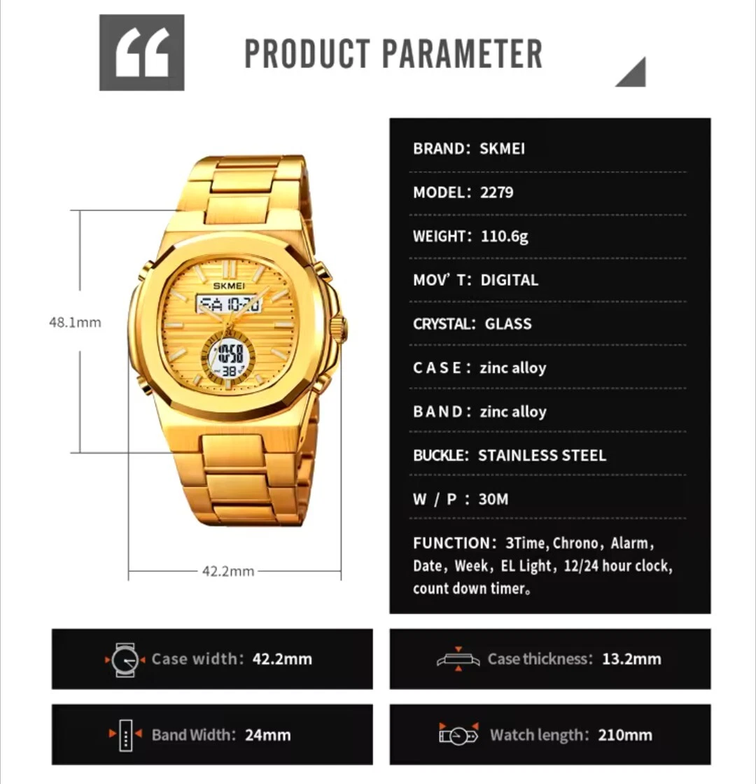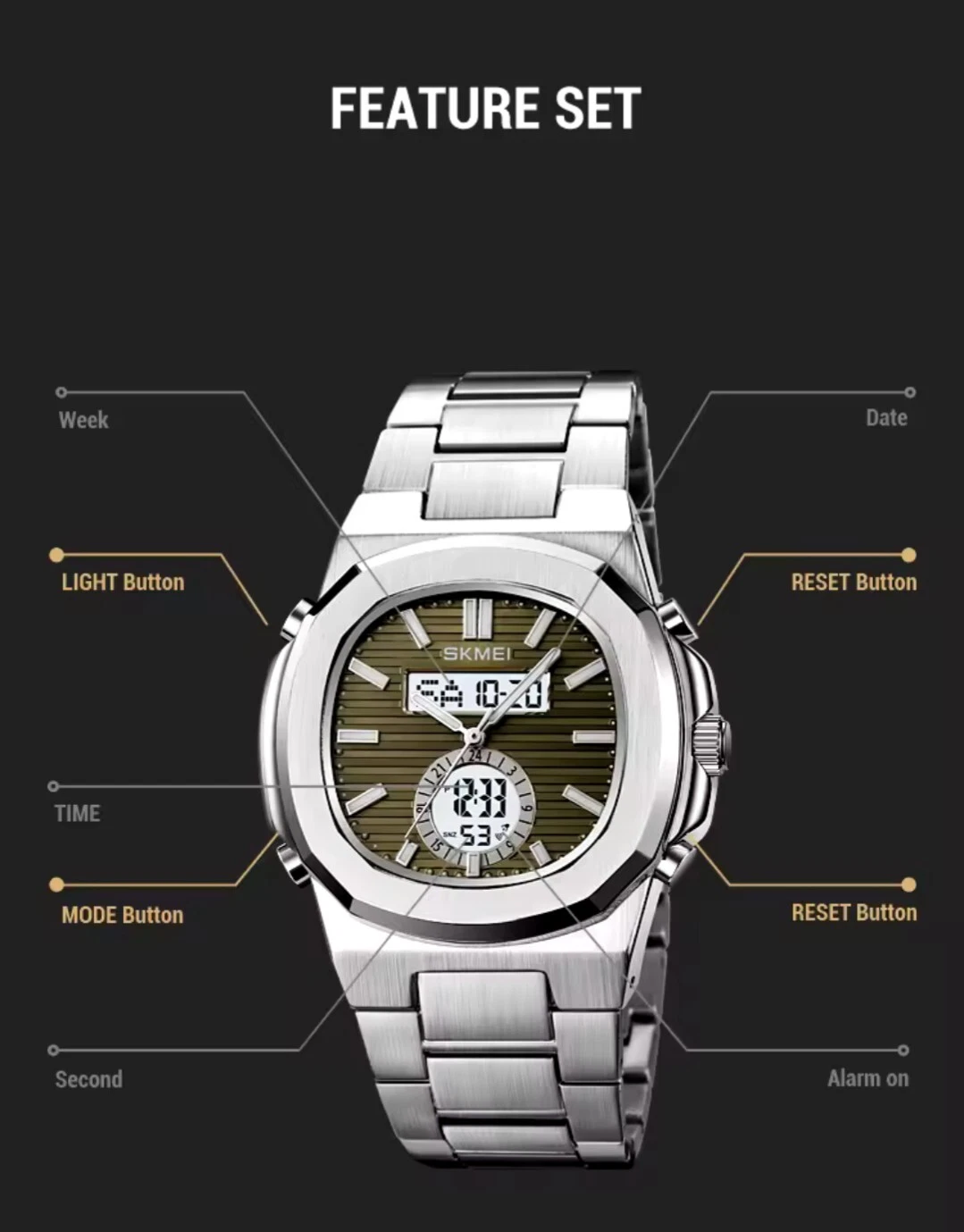New Fashion Watch Men Digital, Dual Time, Chronograph, Waterproof With Case