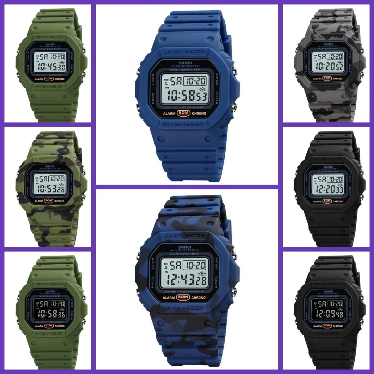 Stylish Retro Watch Men | 2-Time, Countdown, Digital, Sport, Fashion Rubber Watc