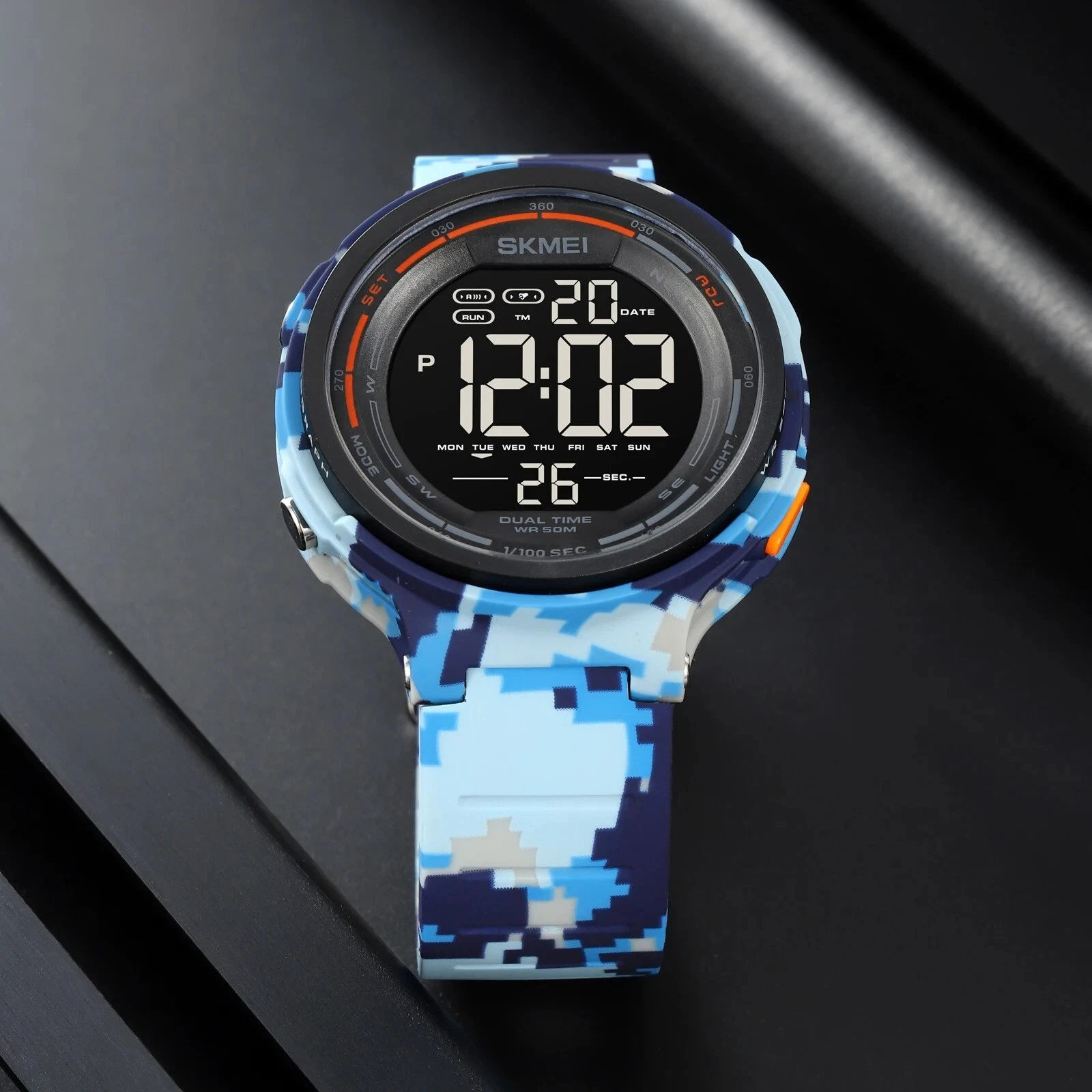 Digital Mens Sport Watch | LED Light, Countdown, Alarm, Camo, 5Bar Waterproof