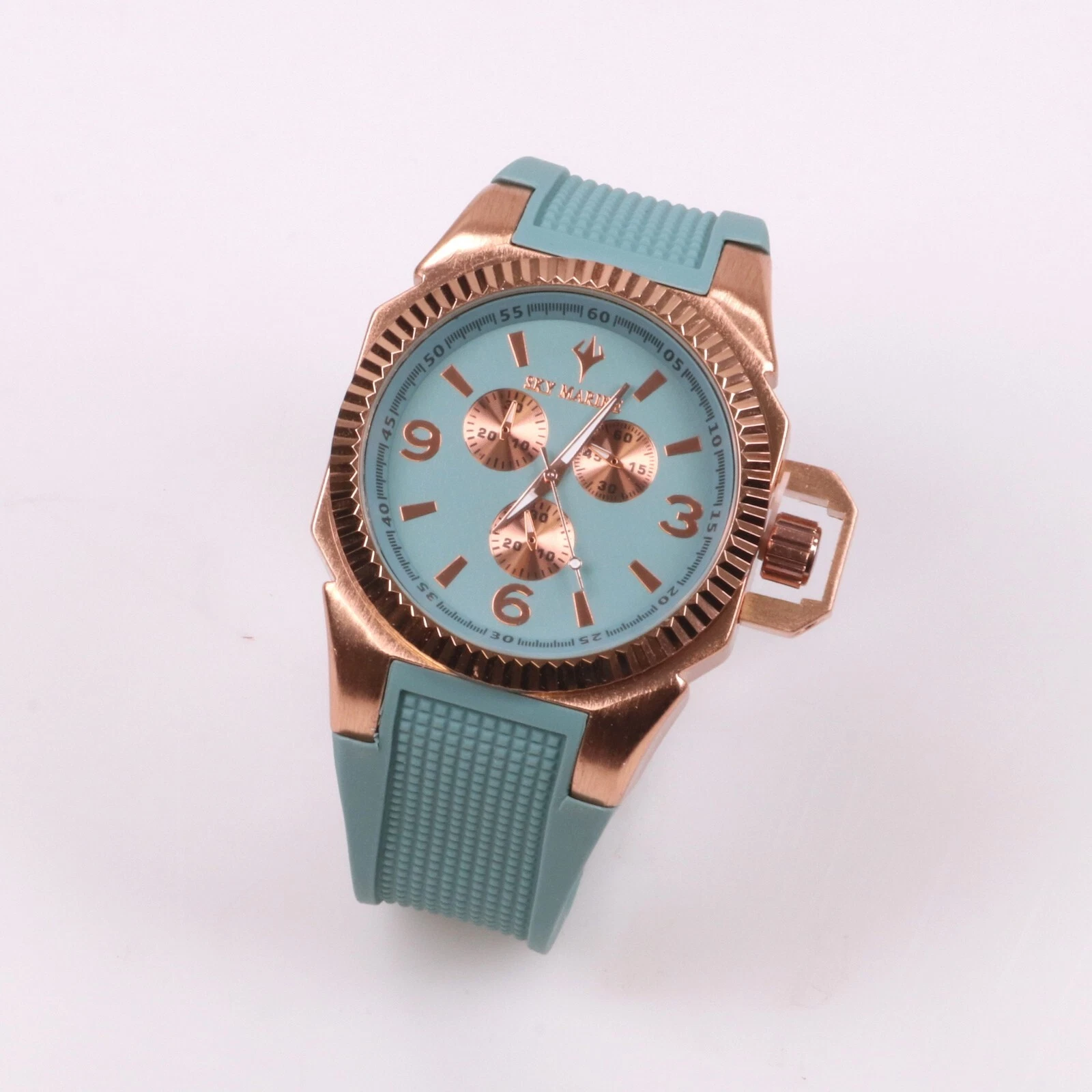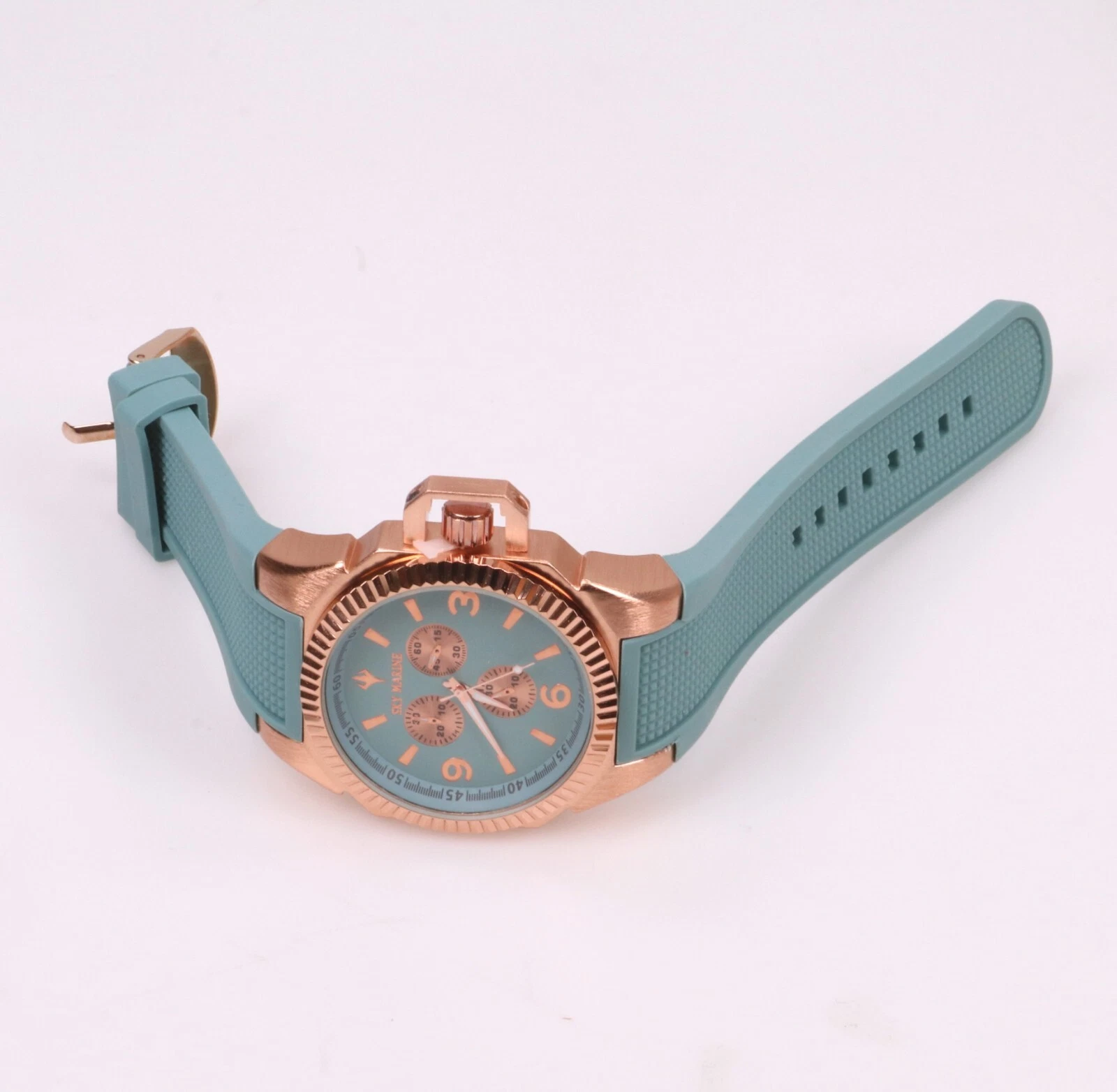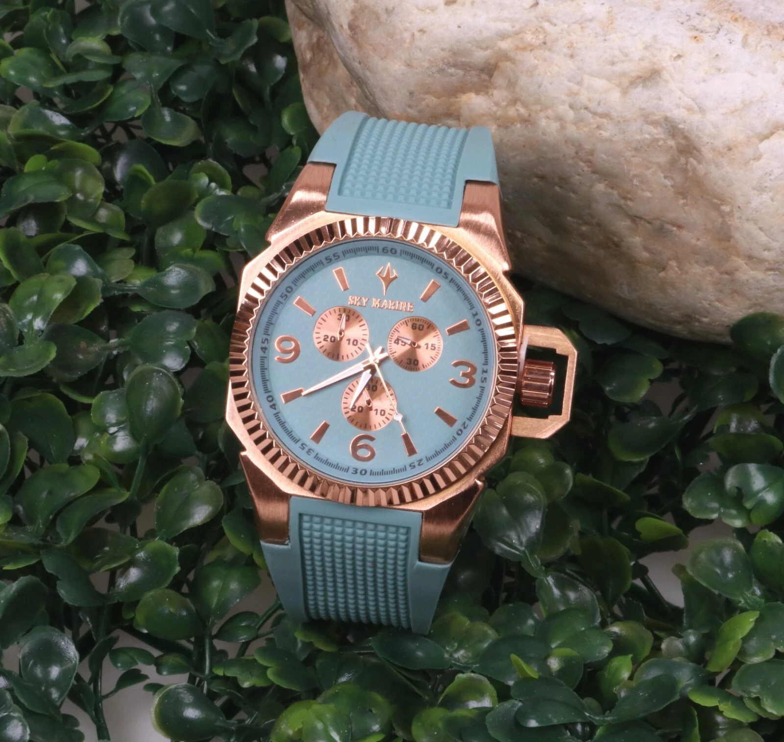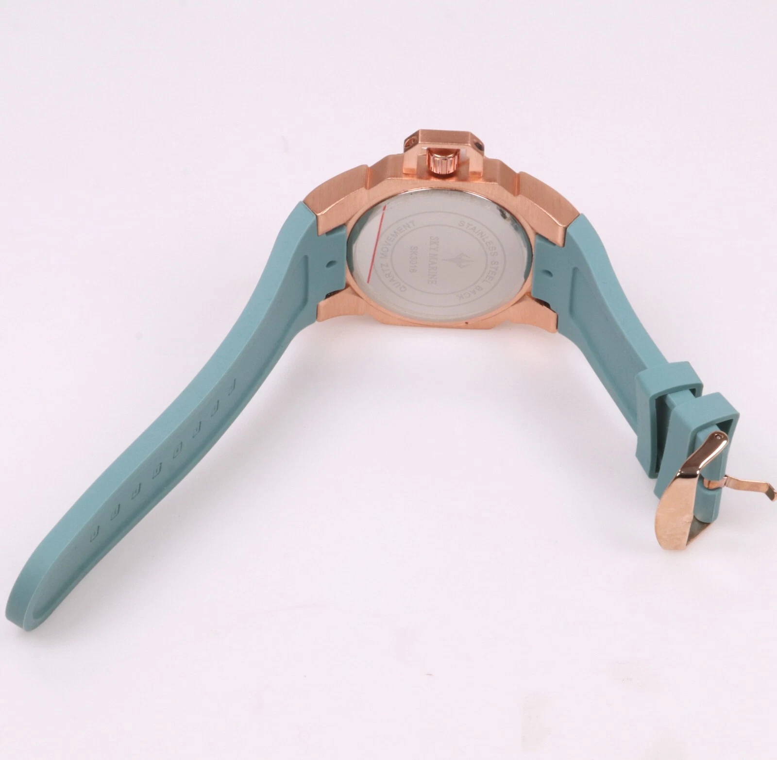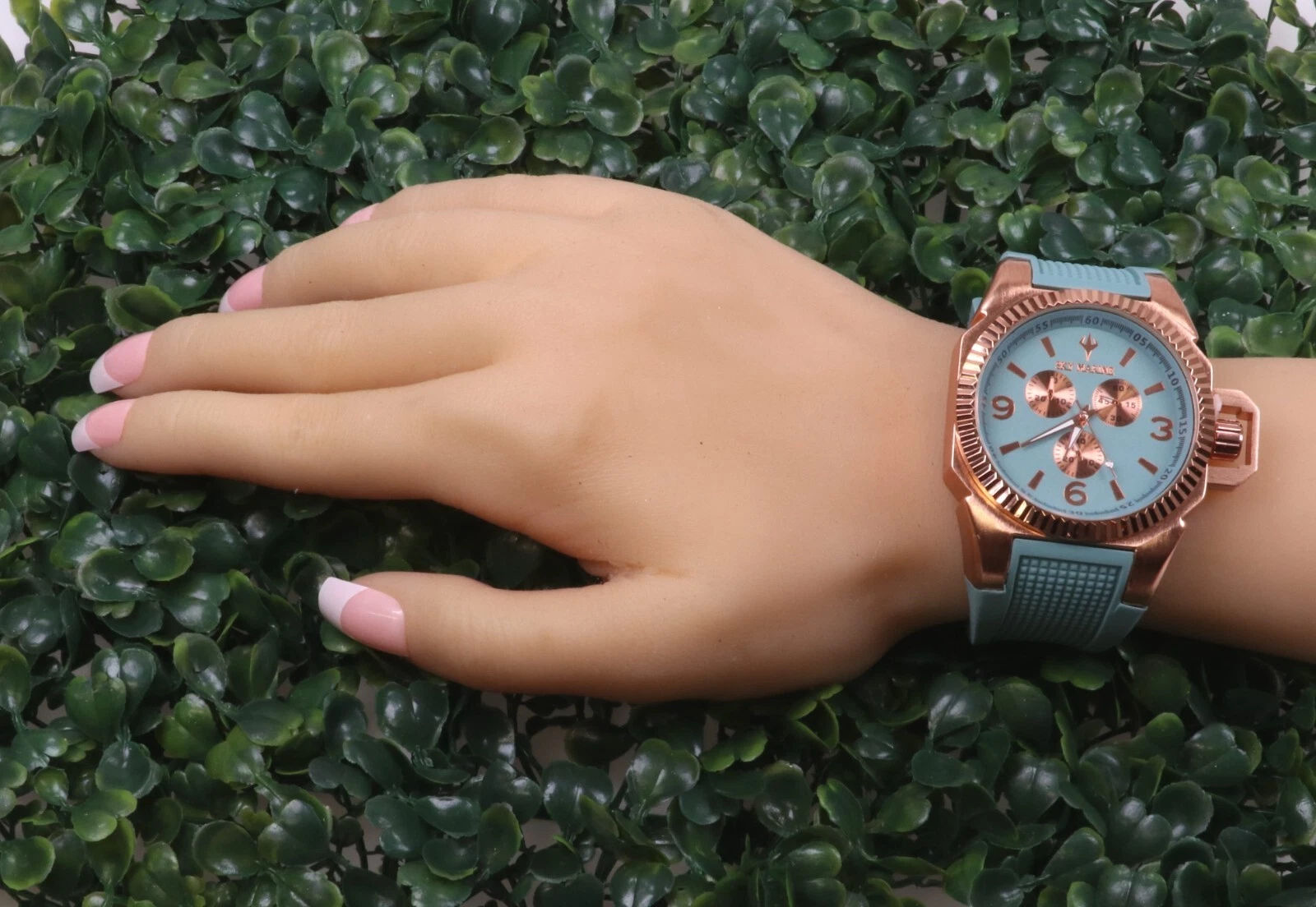 New Sky Mairine Women's Rose Gold, Green Silicone Band