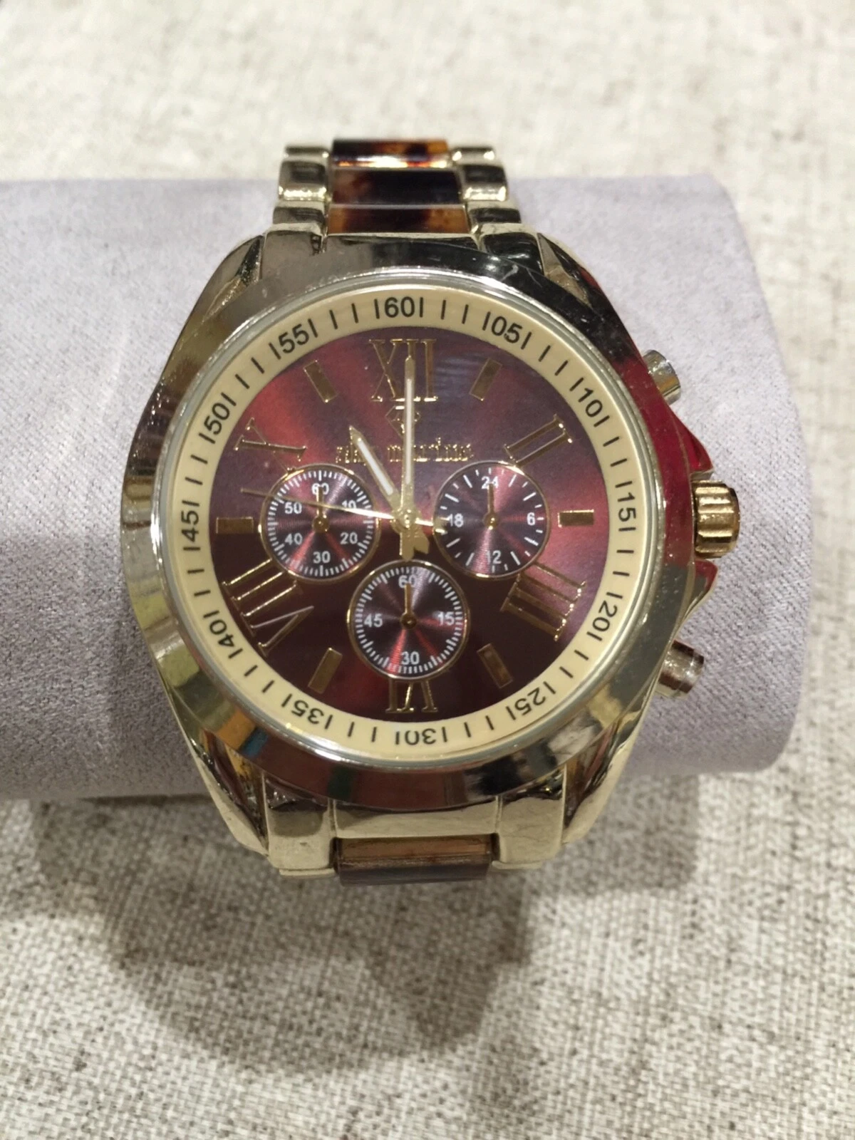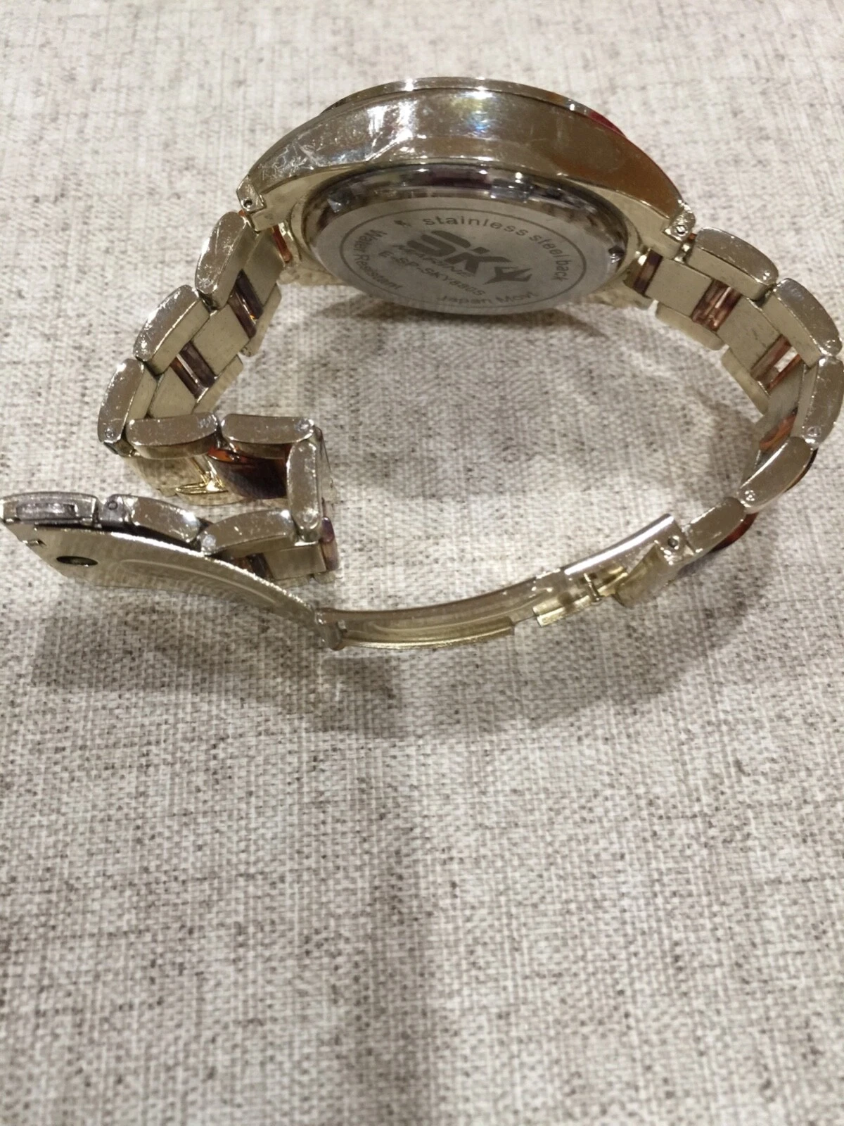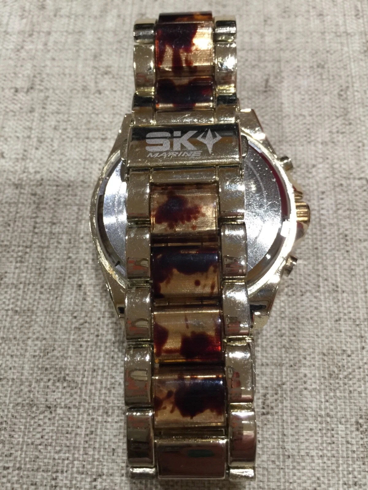 Sky Marine Mens water resistant gold tone bracelet watch japan movt New battery