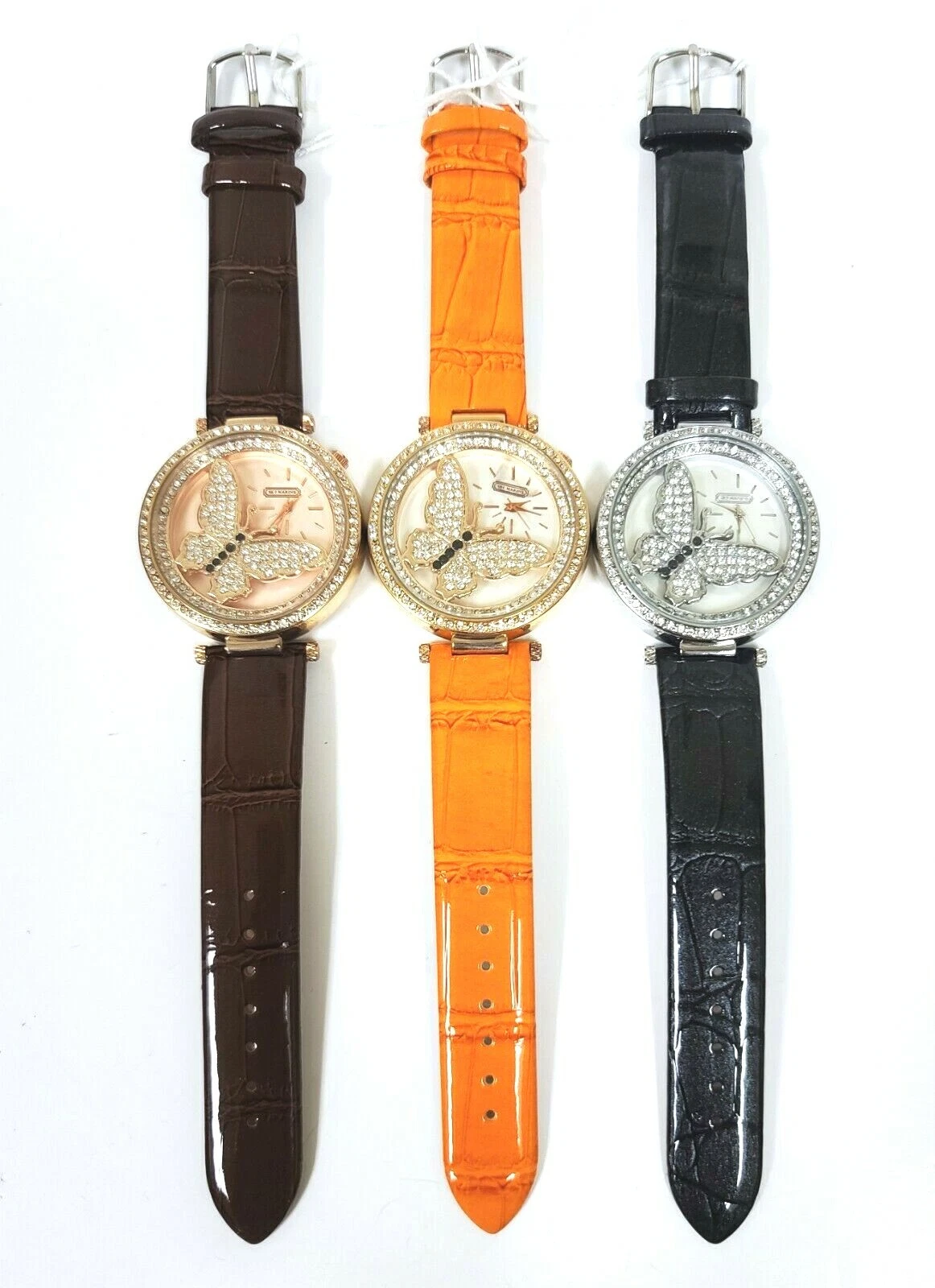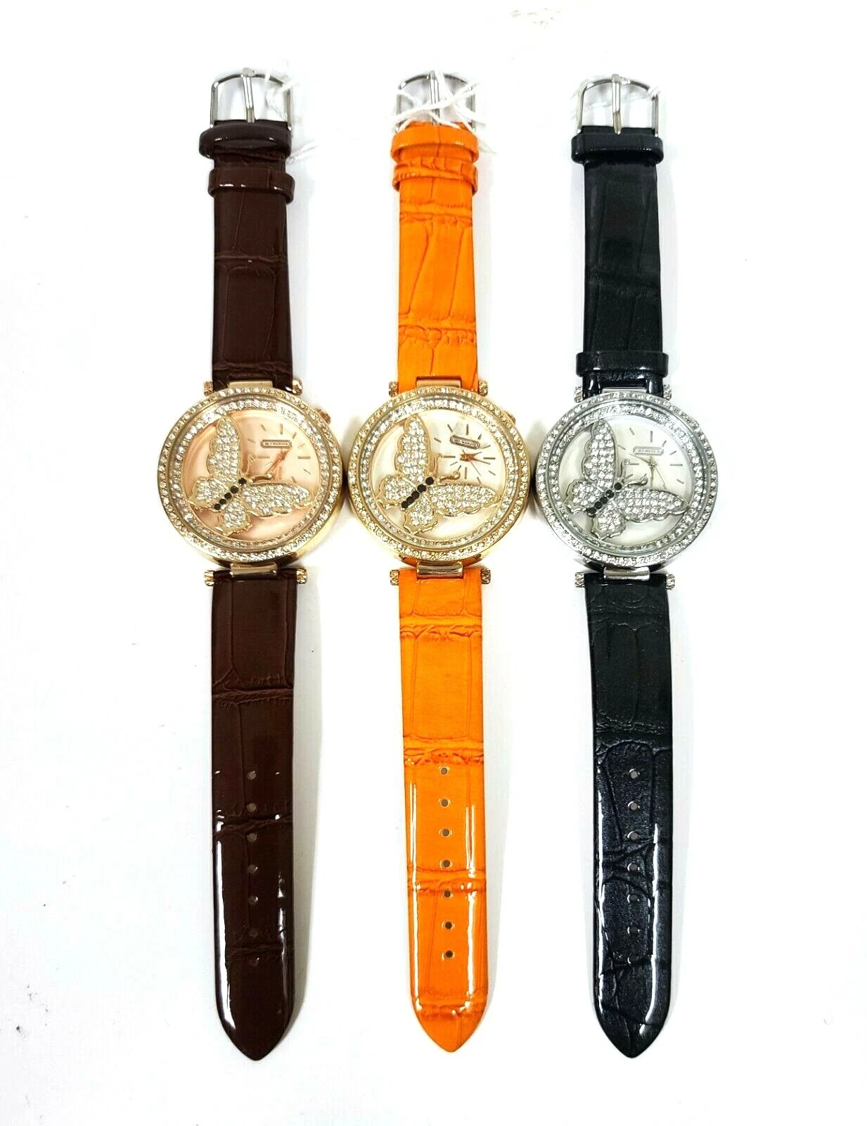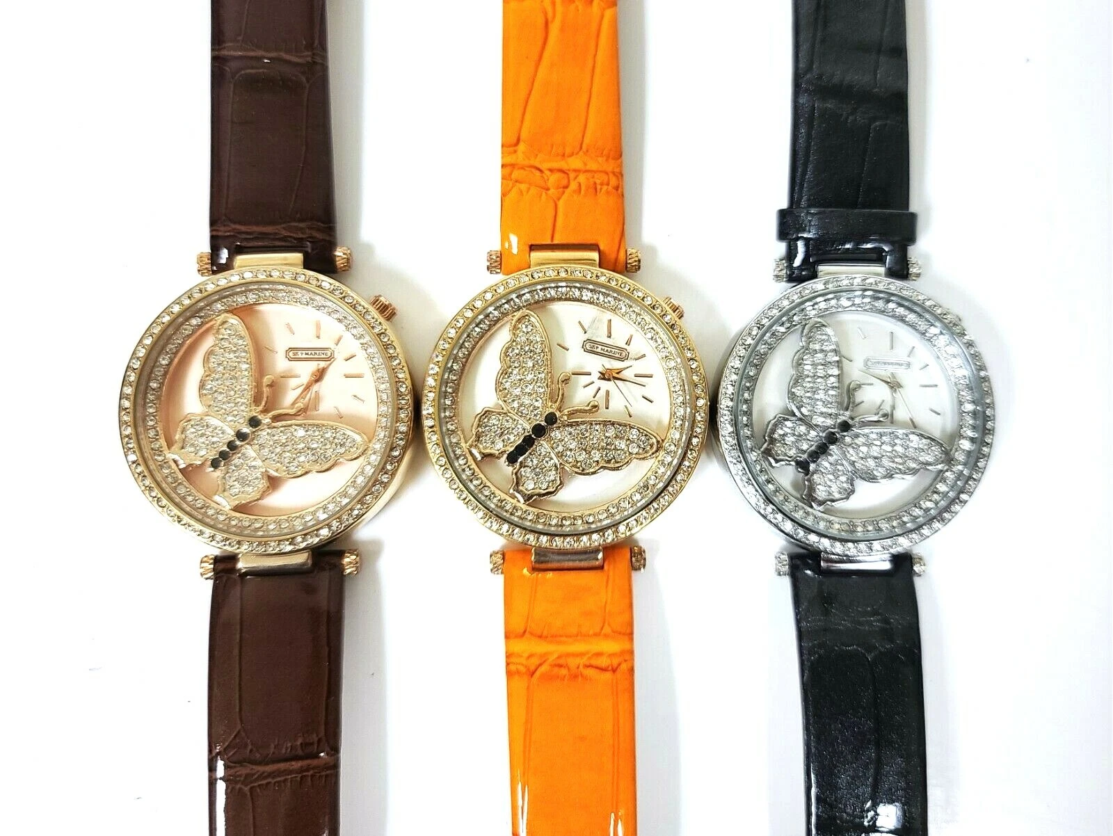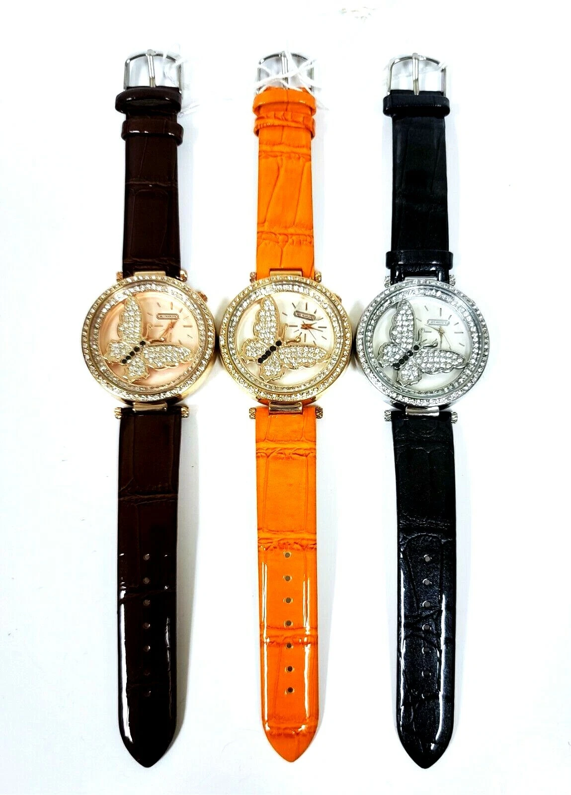 SKY MARINE ROSE,GOLD,SILVER CRYSTAL GLITZ BUTTERFLY,PATENT LEATHERETTE WATCH