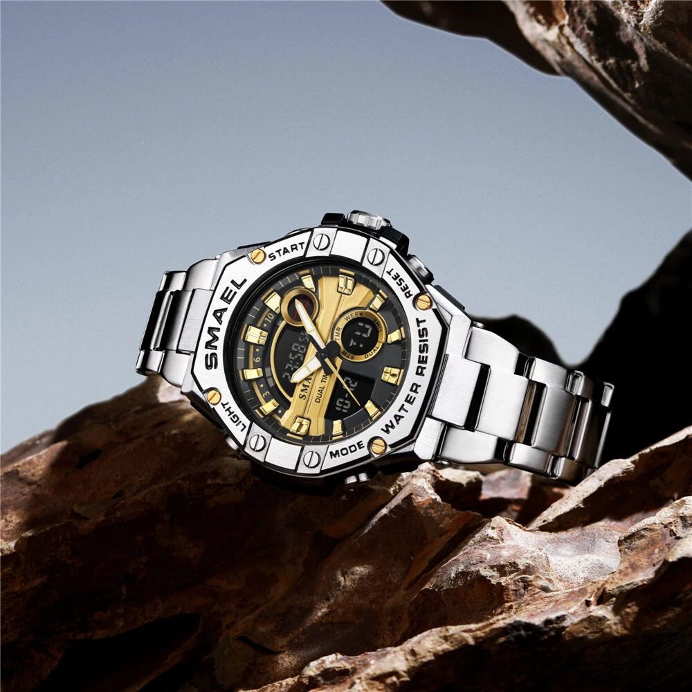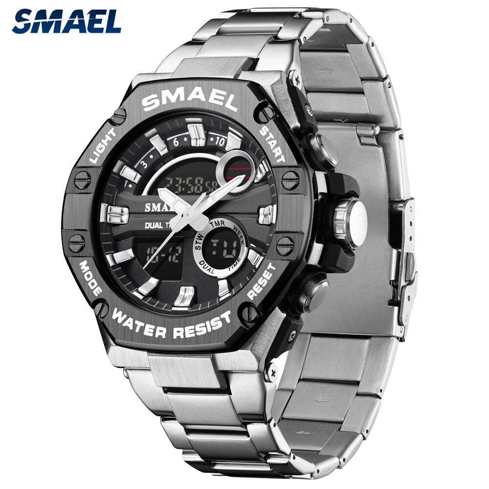 SMAEL Men Sport Watches Fashion Digital Quartz Steel Wristwatch Males LED Watch