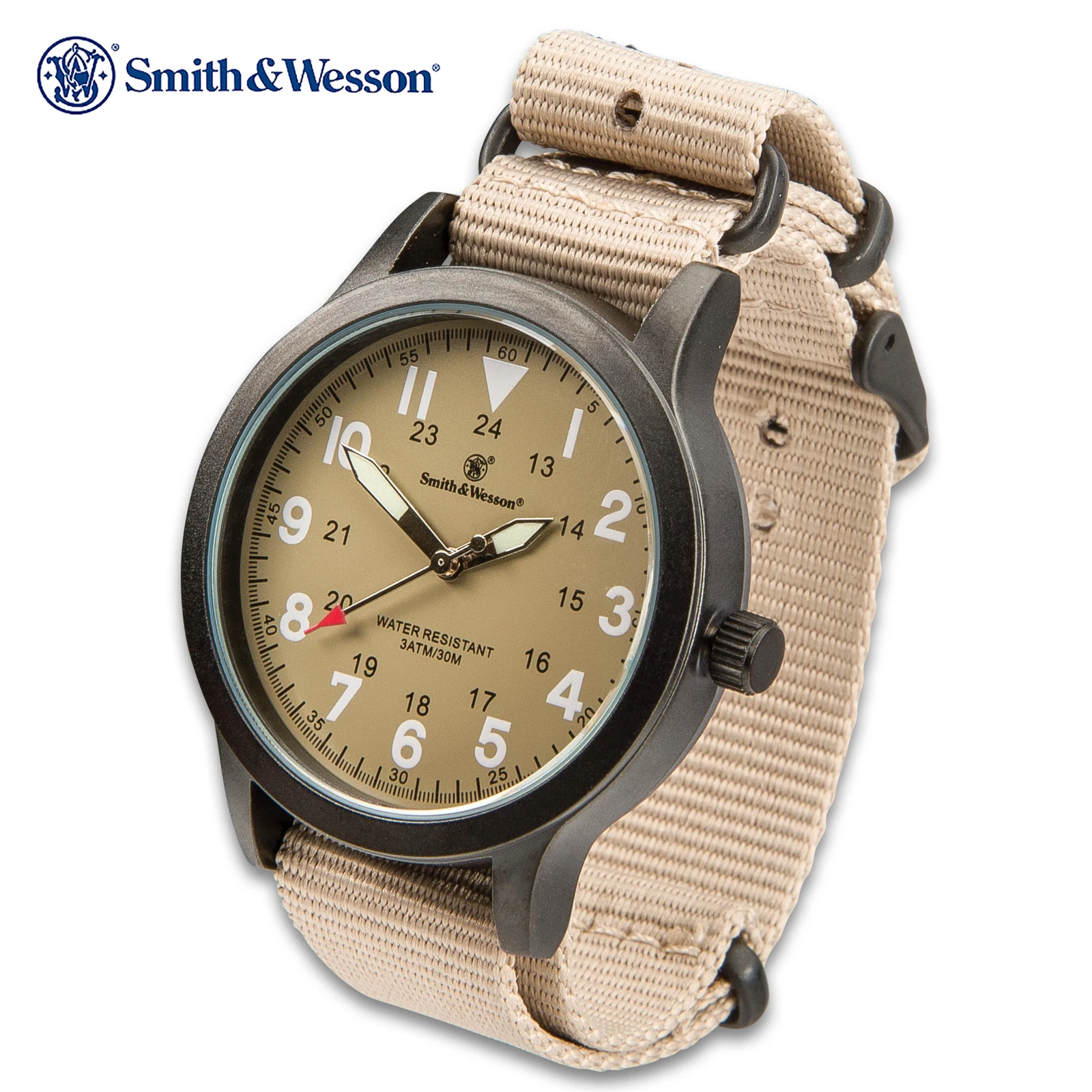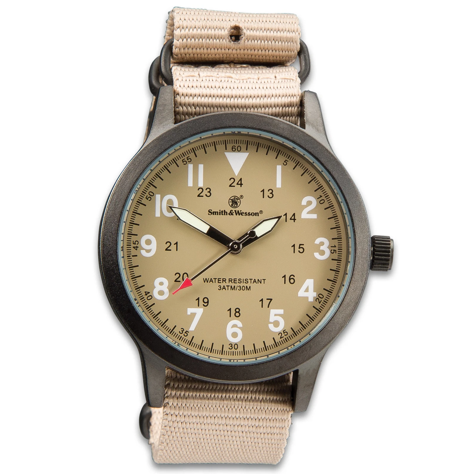 Smith & Wesson Tan Canvas Tactical Military Case 30m Water Resistant Watch