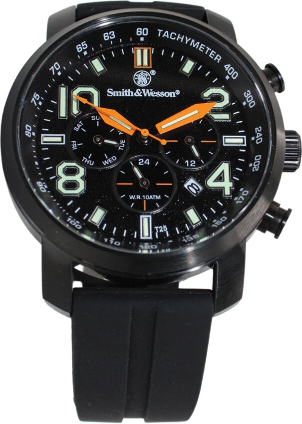 Smith & Wesson Tritium Chronograph Black Leather Strap Wrist Watch W1500BLK