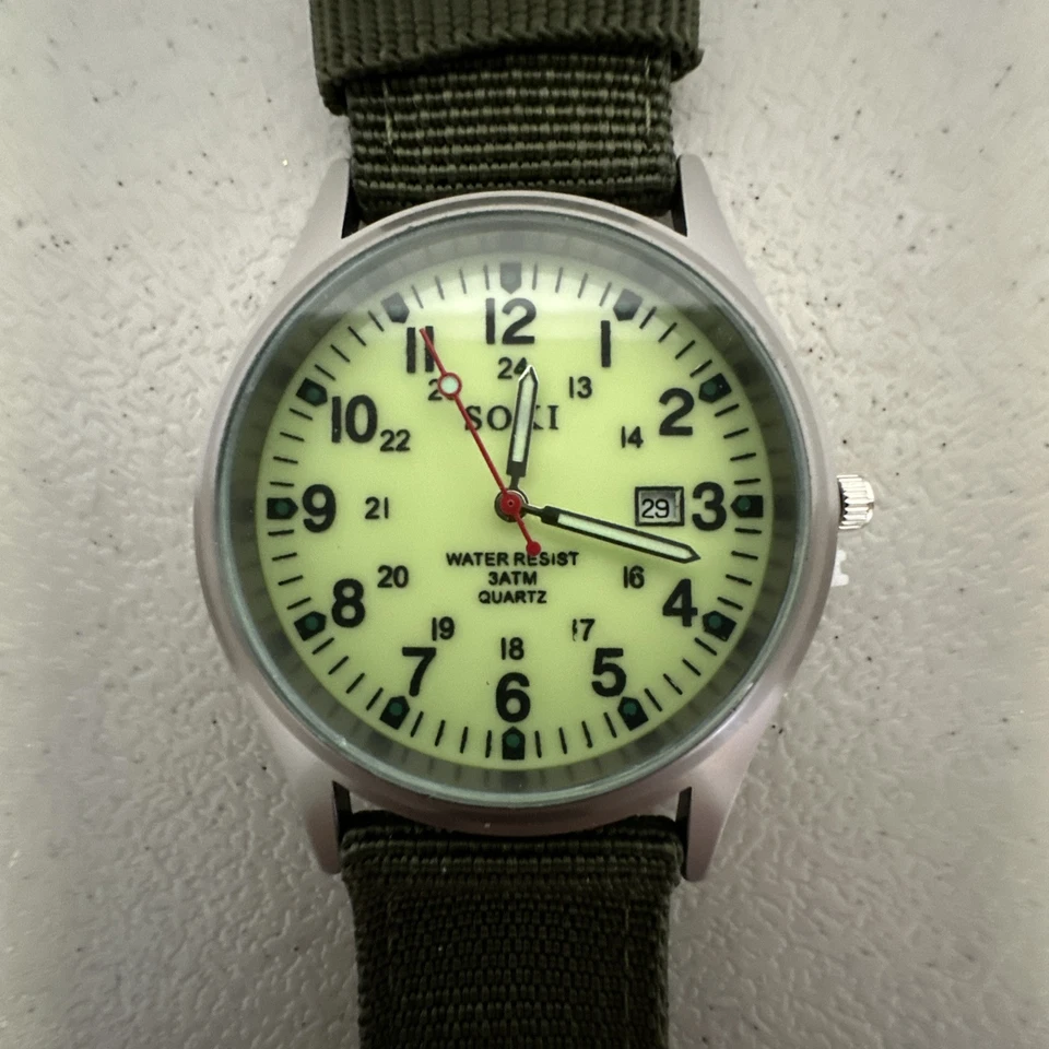 SOKI Military Army Mens Date Canvas Strap Analog Water Resistant, Wrist Watch -