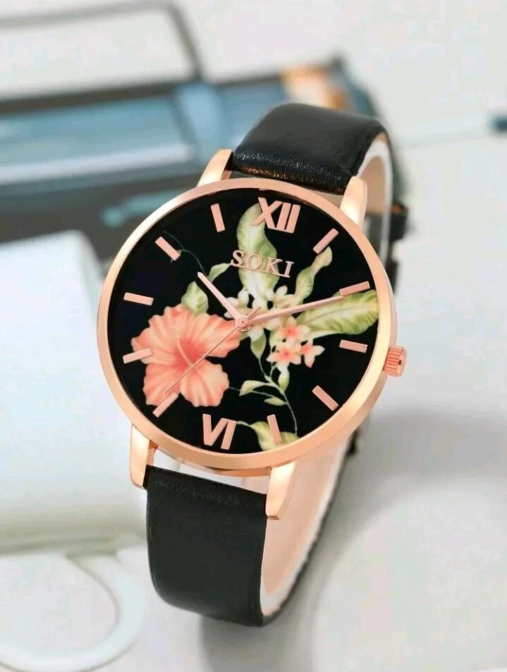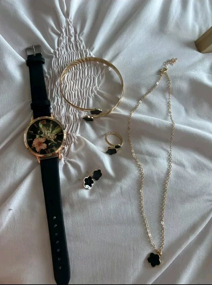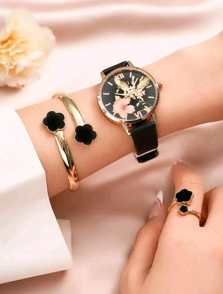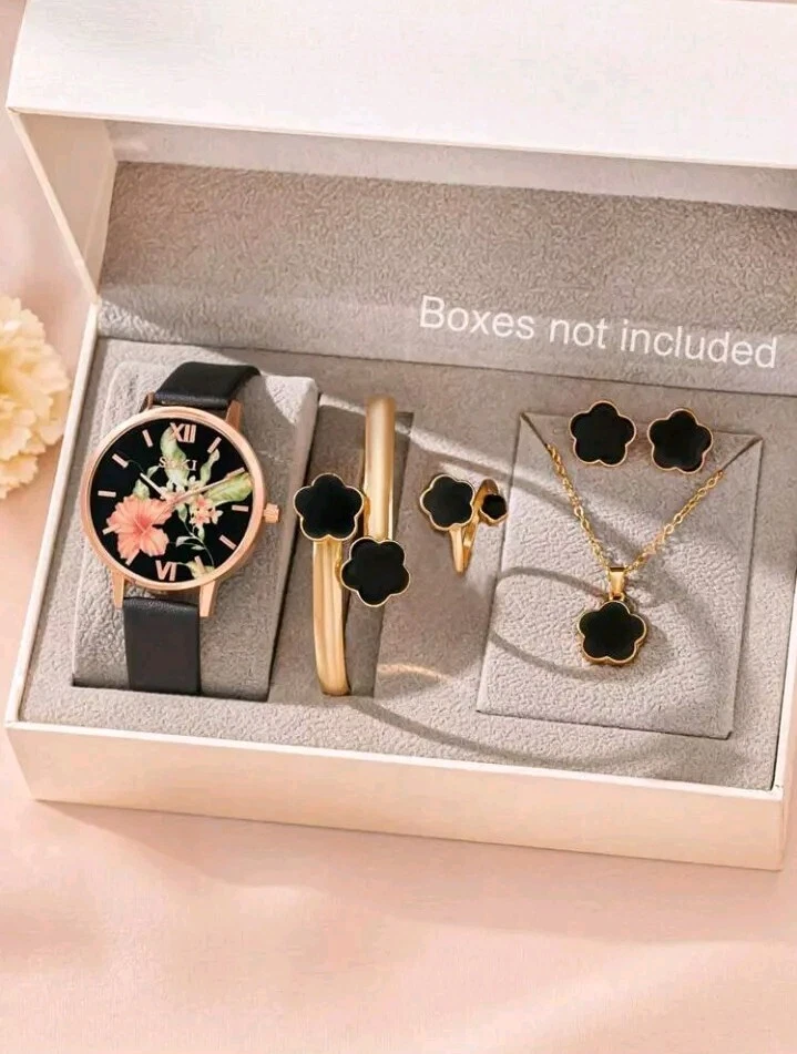 5-piece set of luxurious and elegant style lucky clover dial quartz watch.