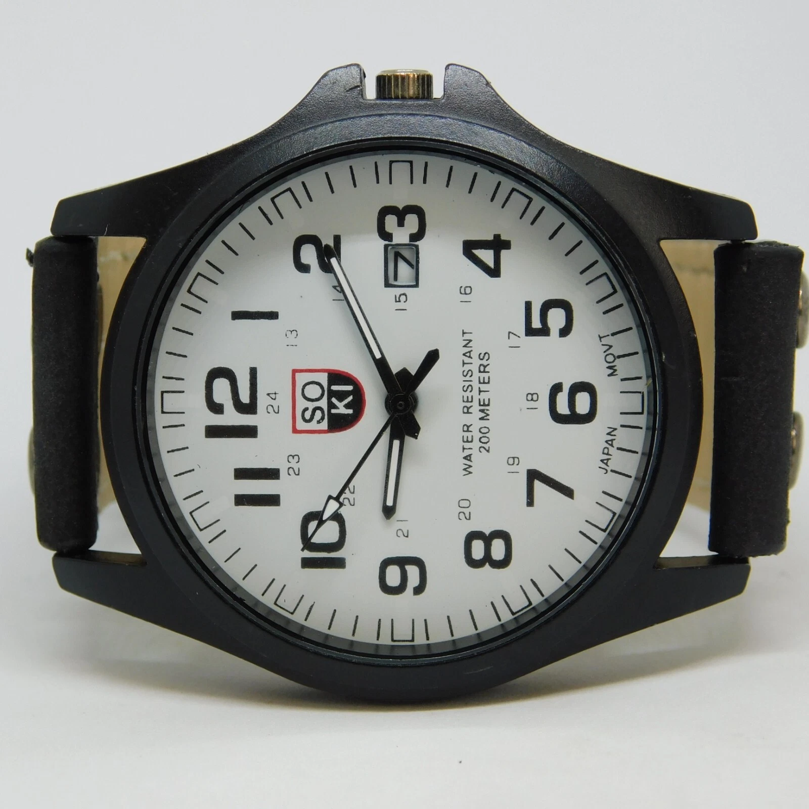 SOKI Military Dial Black Tone Quartz Analog Men's Fashion Watch New Battery