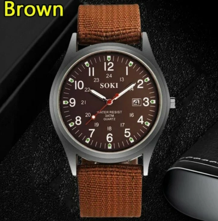 US Men's SOKI Military Army Canvas Calendar Analog Quartz  BROWN Watch SALE $11