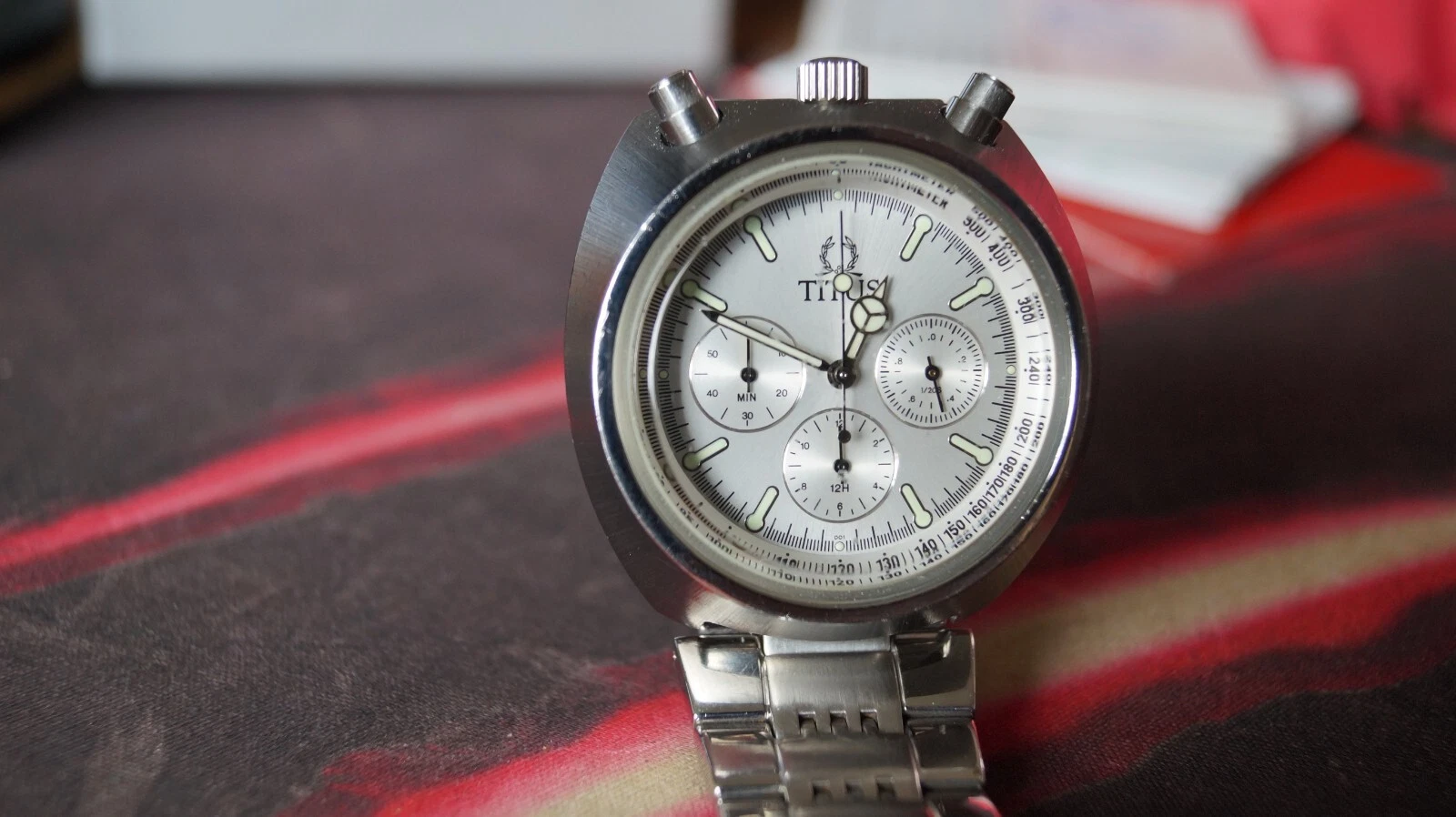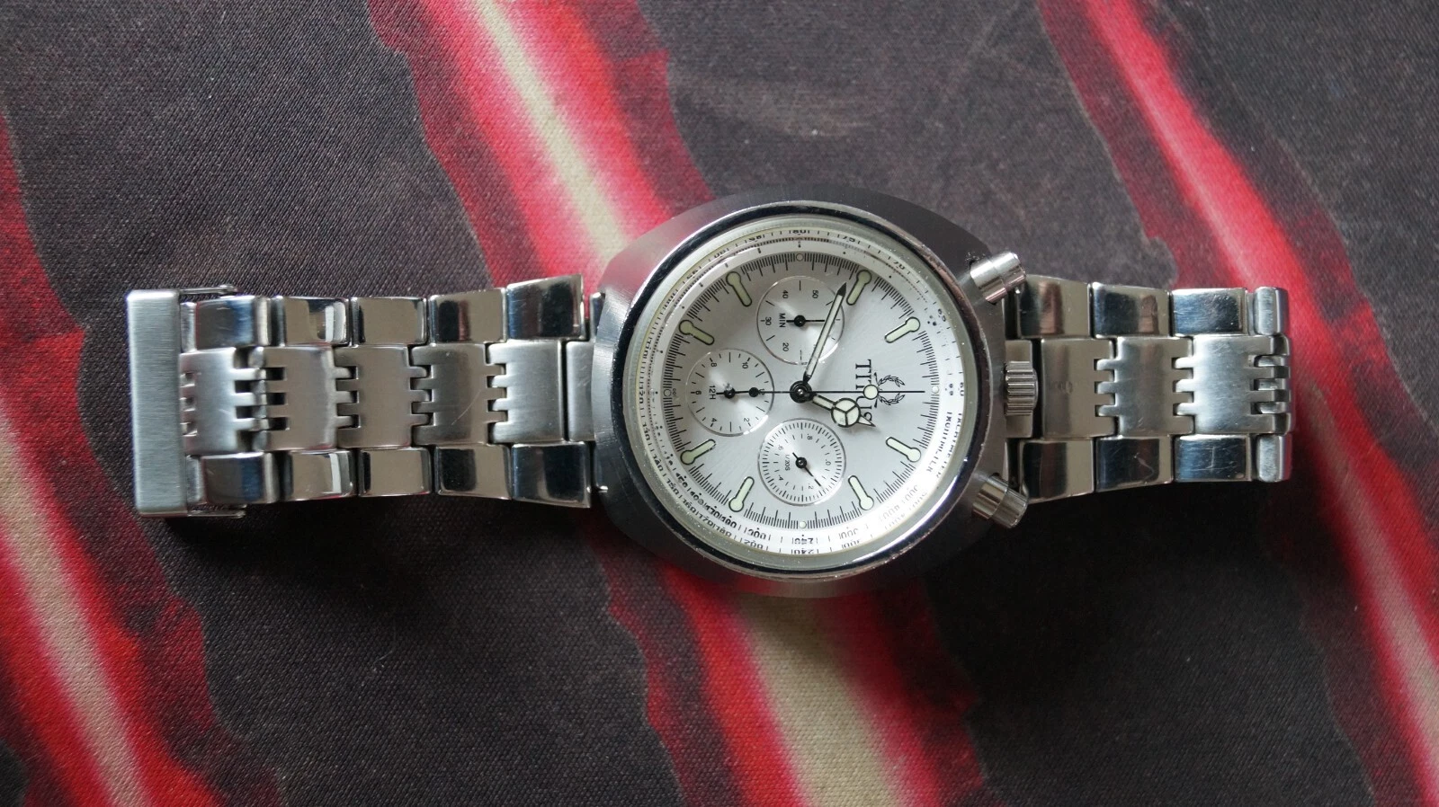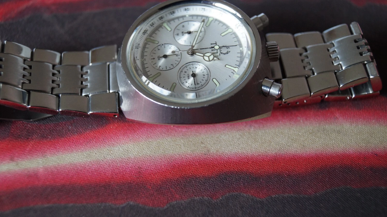 Solvil et Titus bullhead chronograph quartz watch case 41mm 06-0407-001 silver