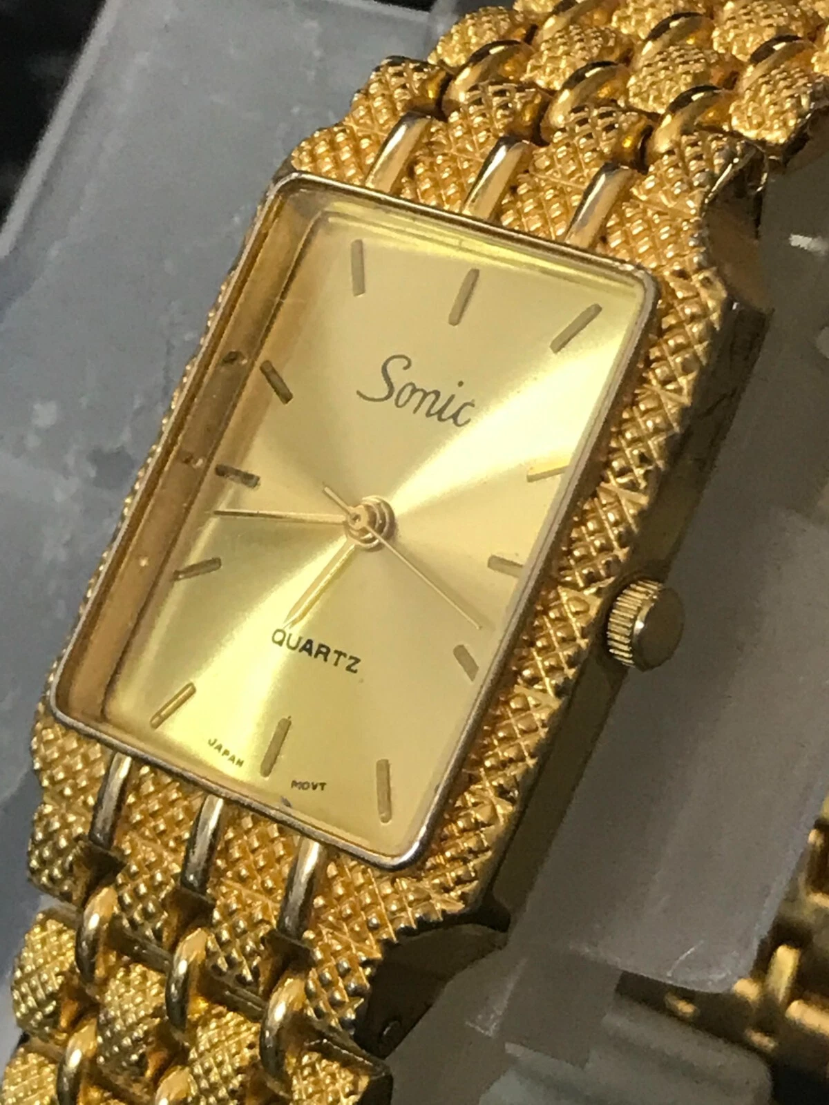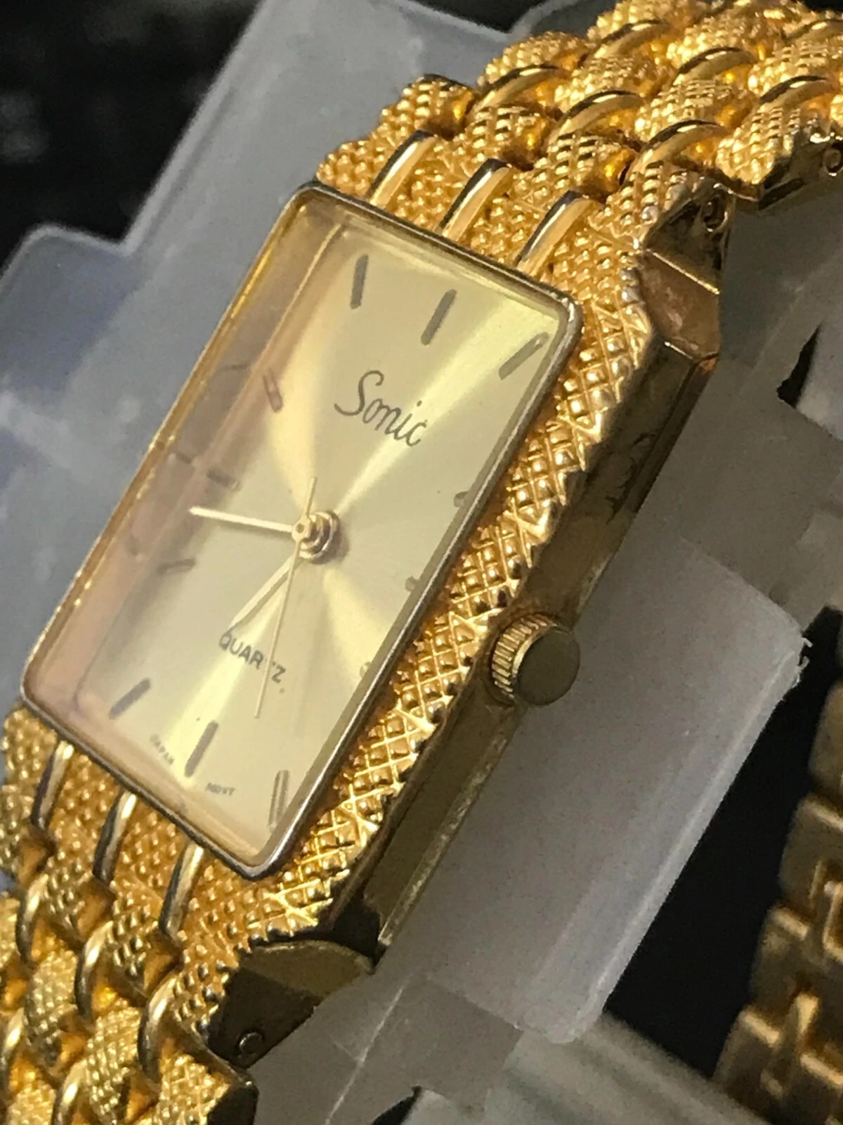 SONIC 26x30mm Gold Dial Tank Quartz Unisex Watch, Run (Lot 1892)