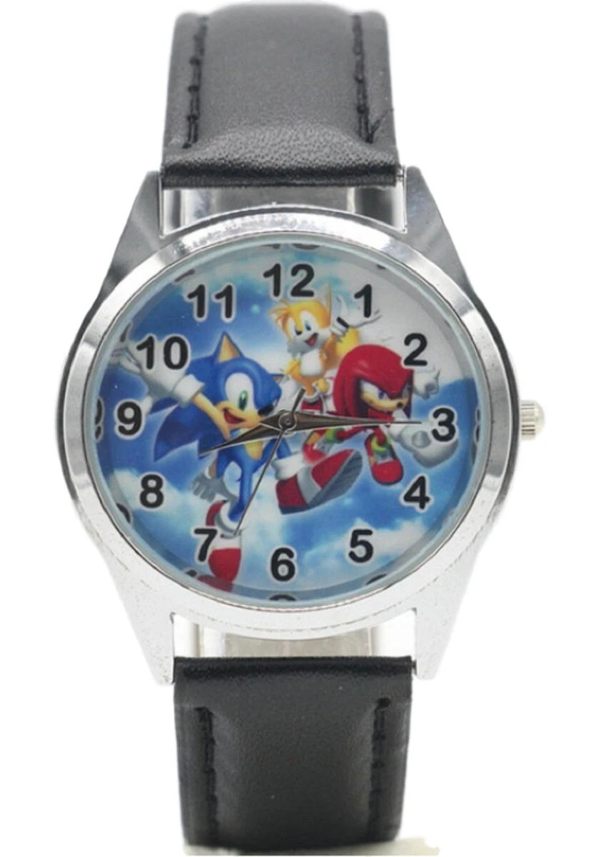 Sonic & Friends Black Genuine Leather Band Wrist Watch