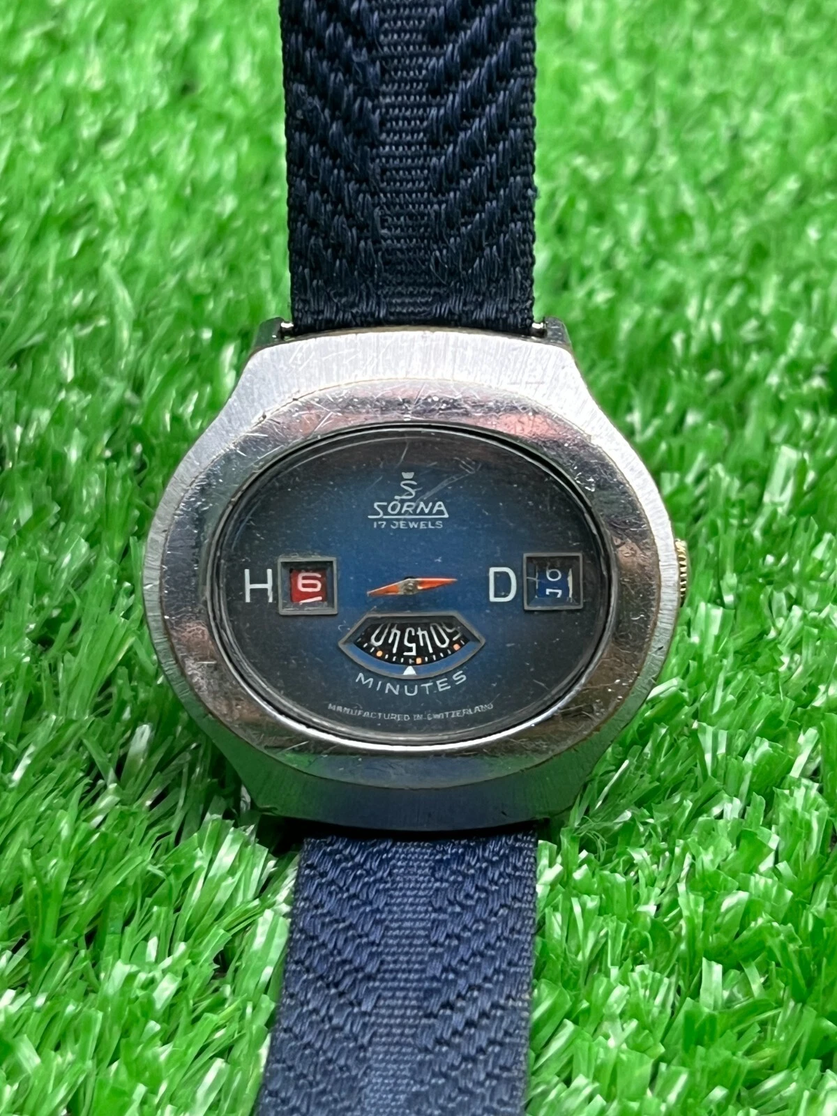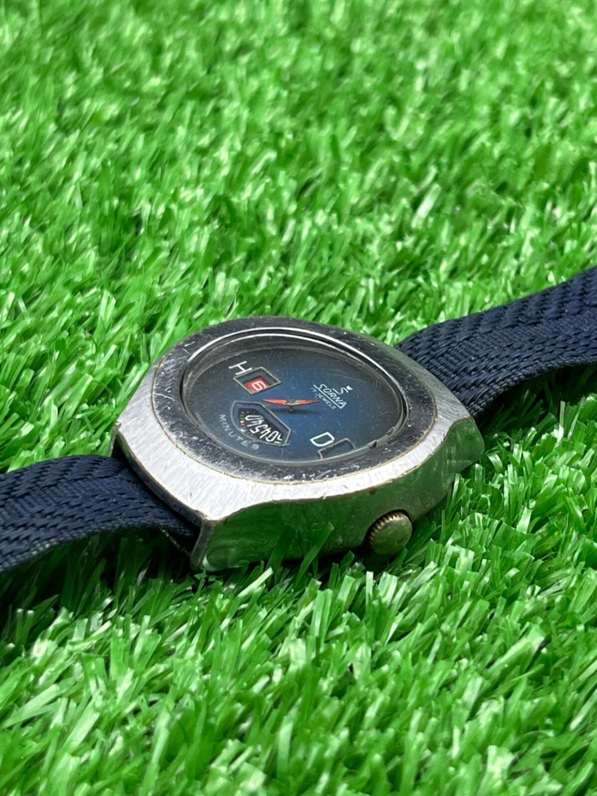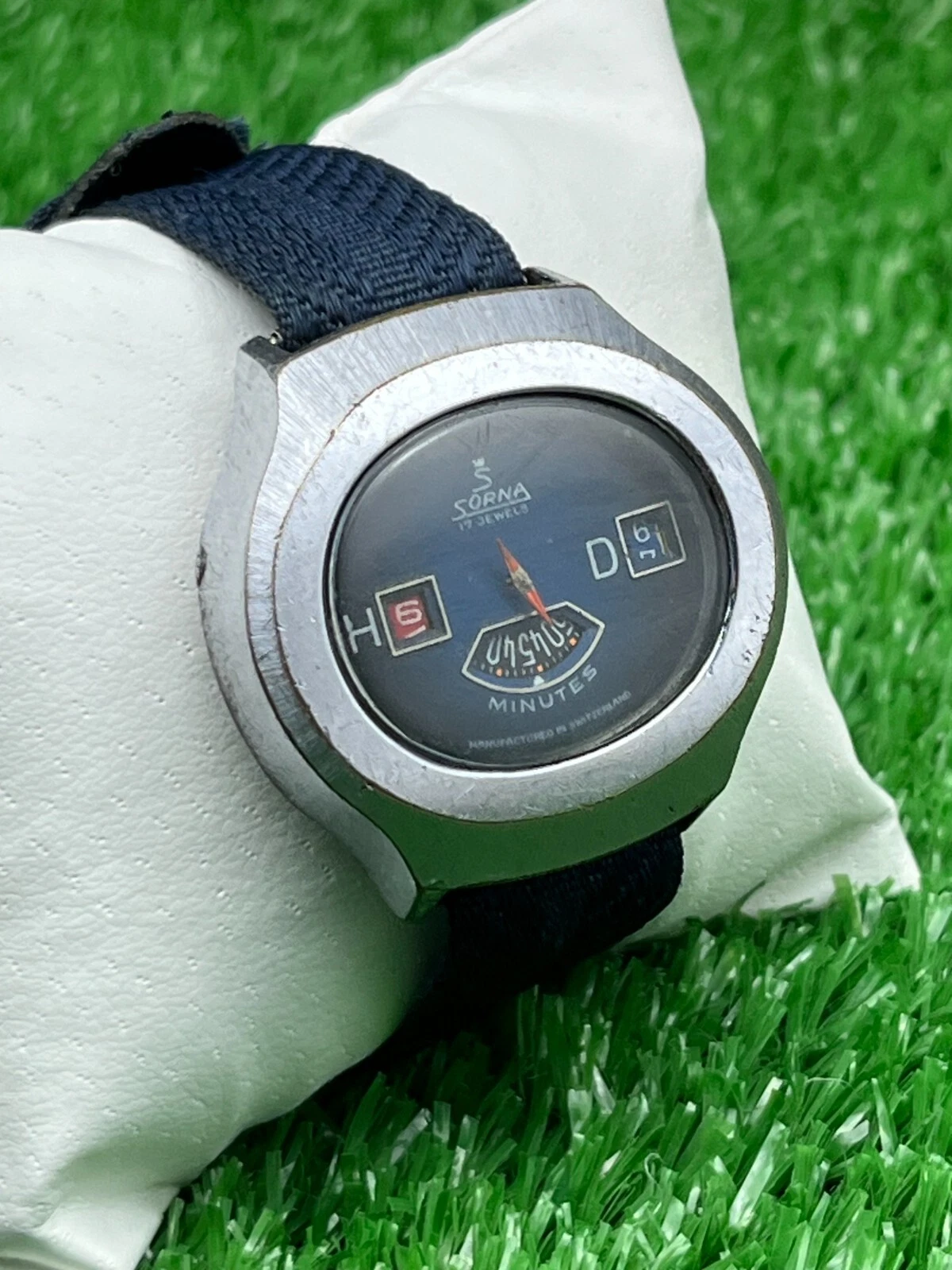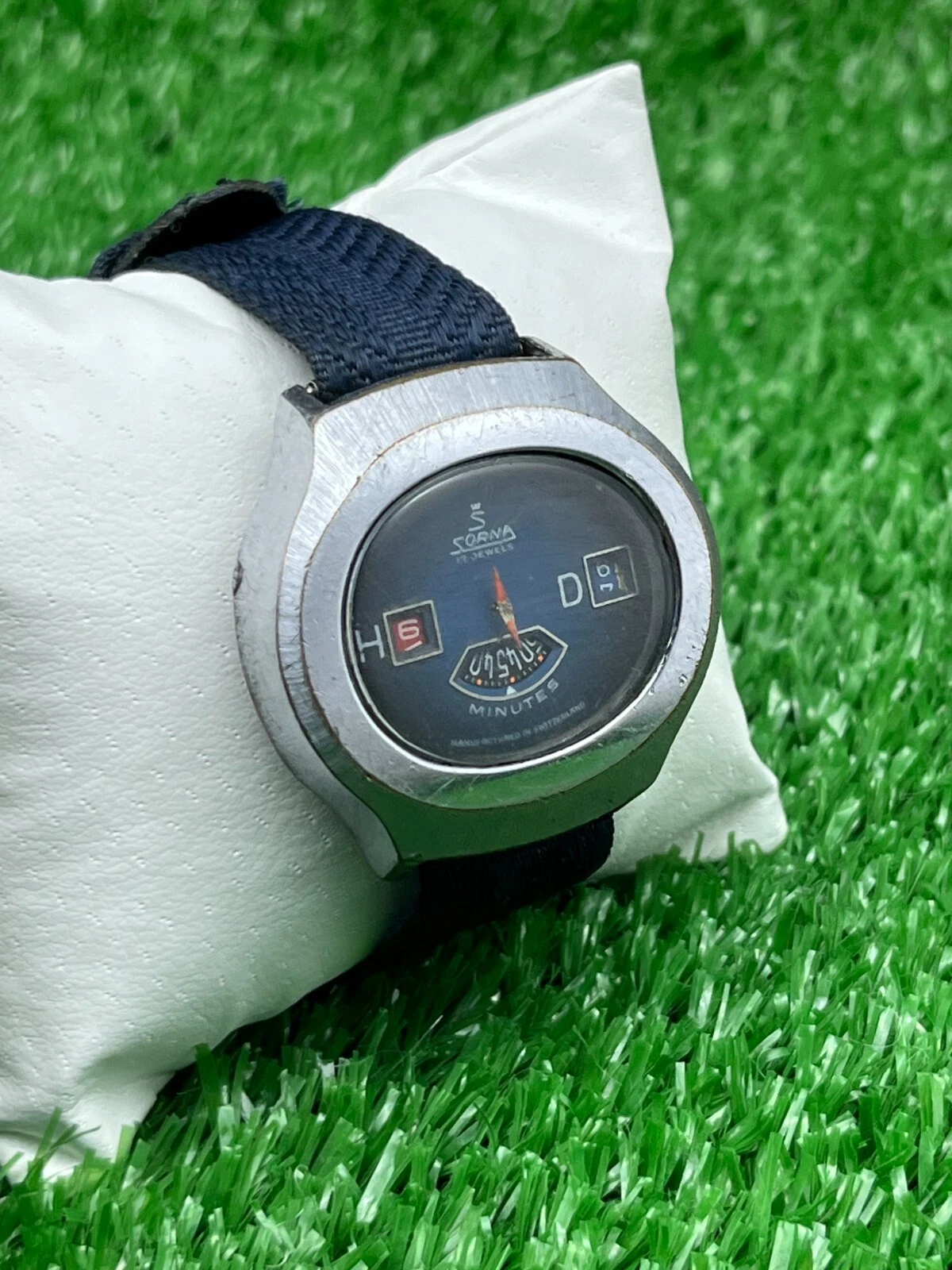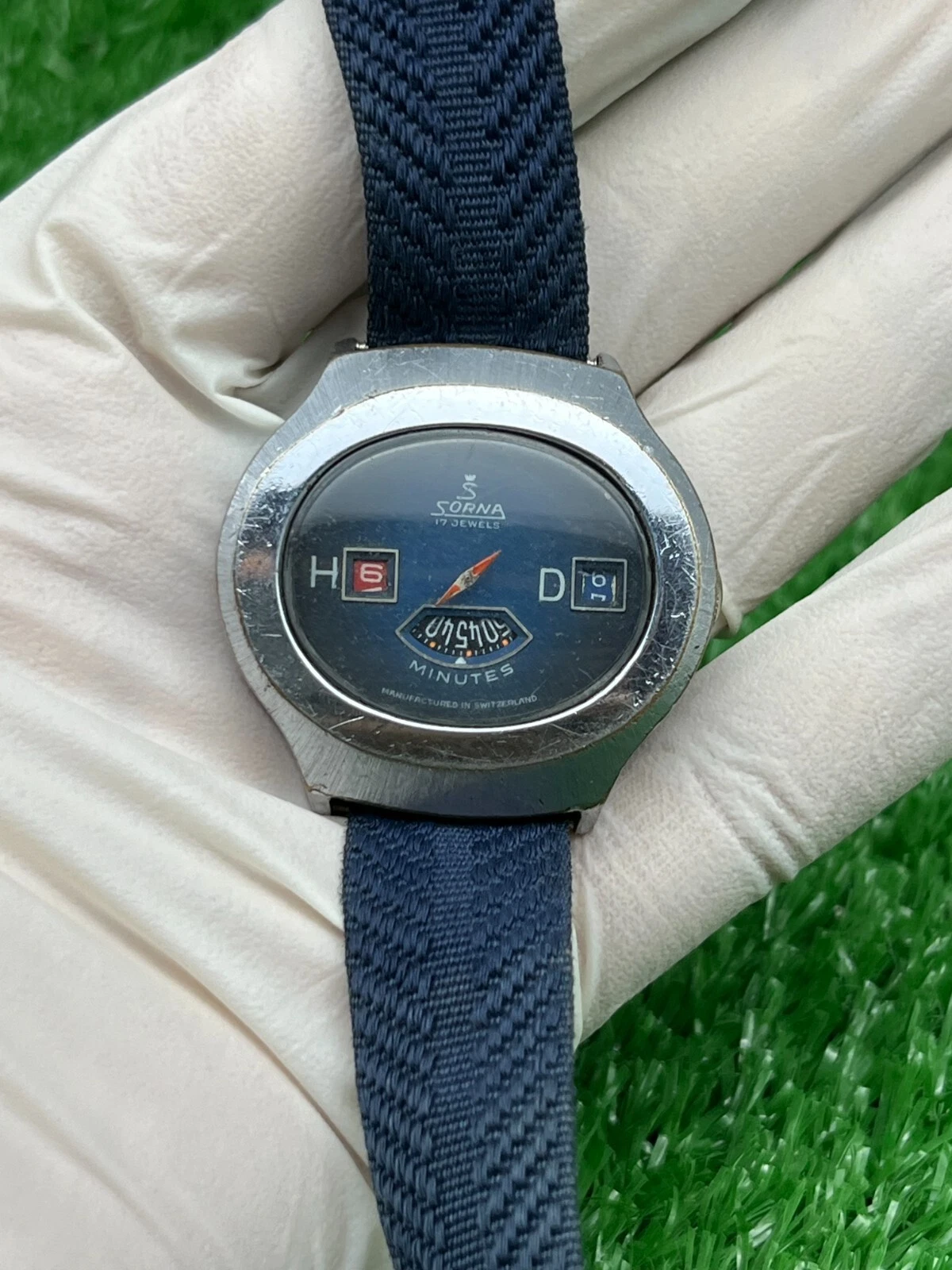Rare Vintage SORNA Space Age Digital Jump Hour Automatic Watch Blue Dial 70s