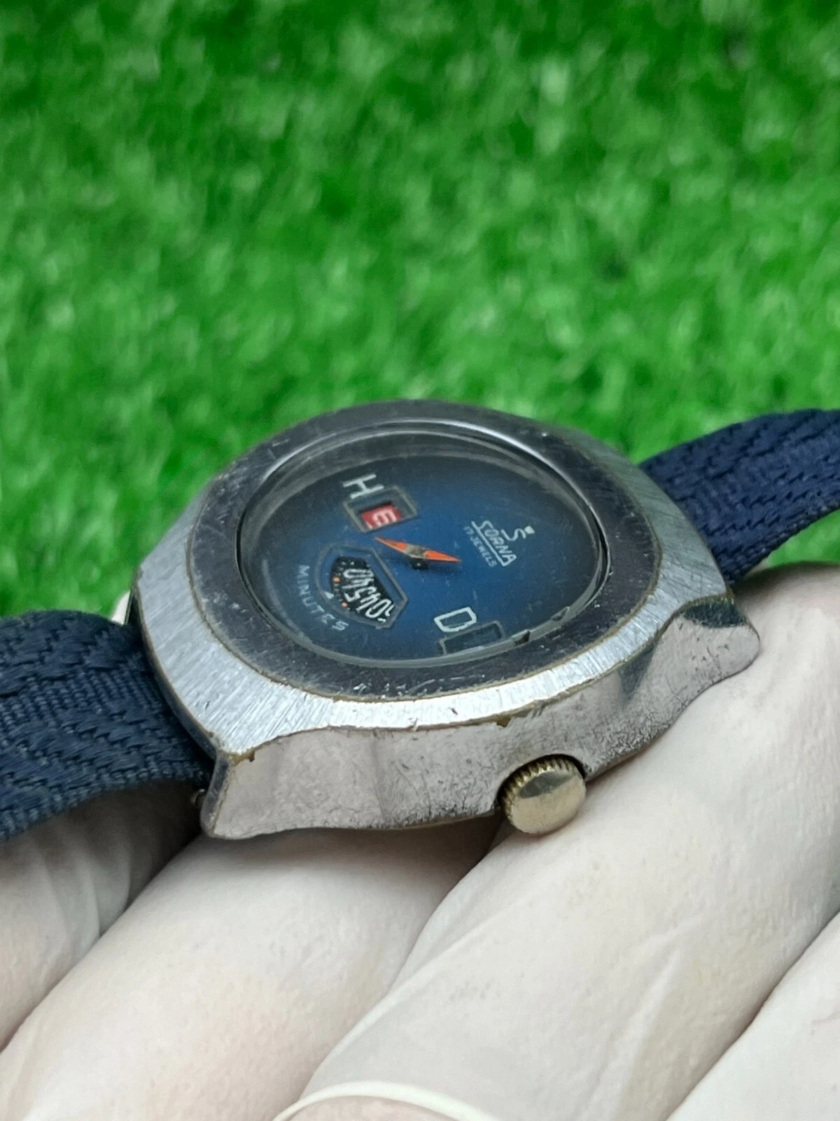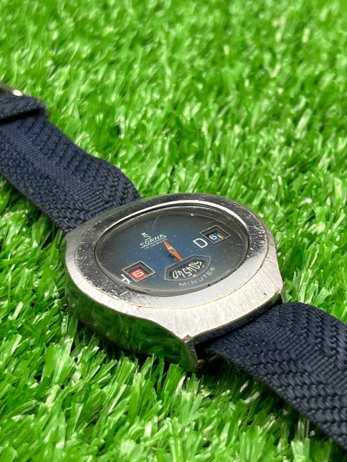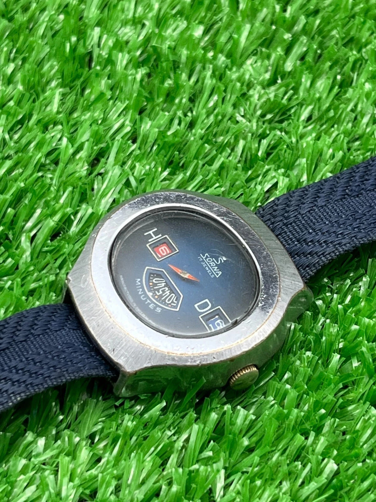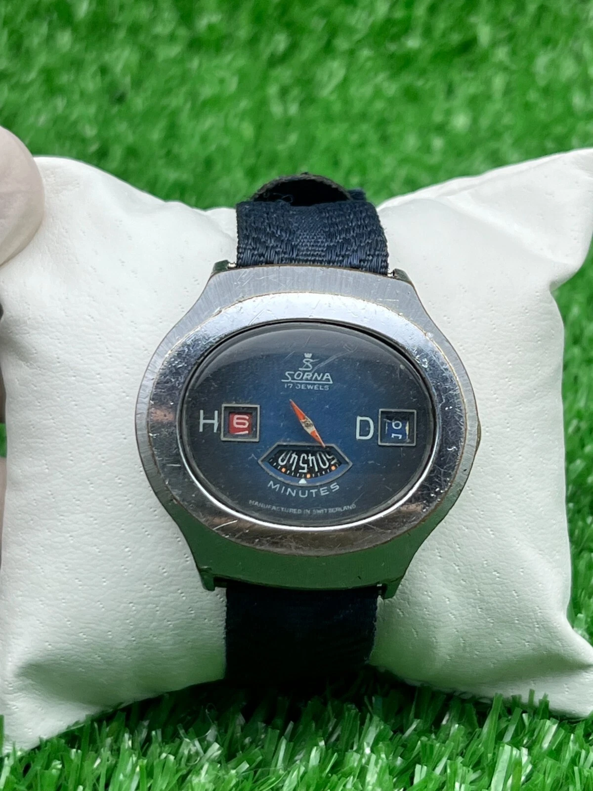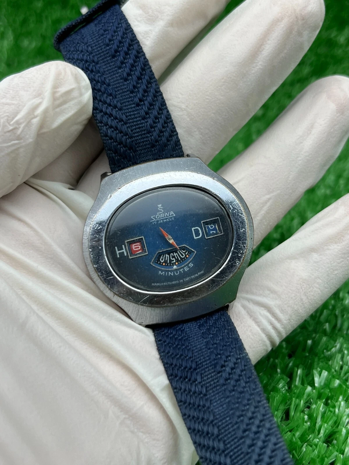 Rare Vintage SORNA Space Age Digital Jump Hour Automatic Watch Blue Dial 70s