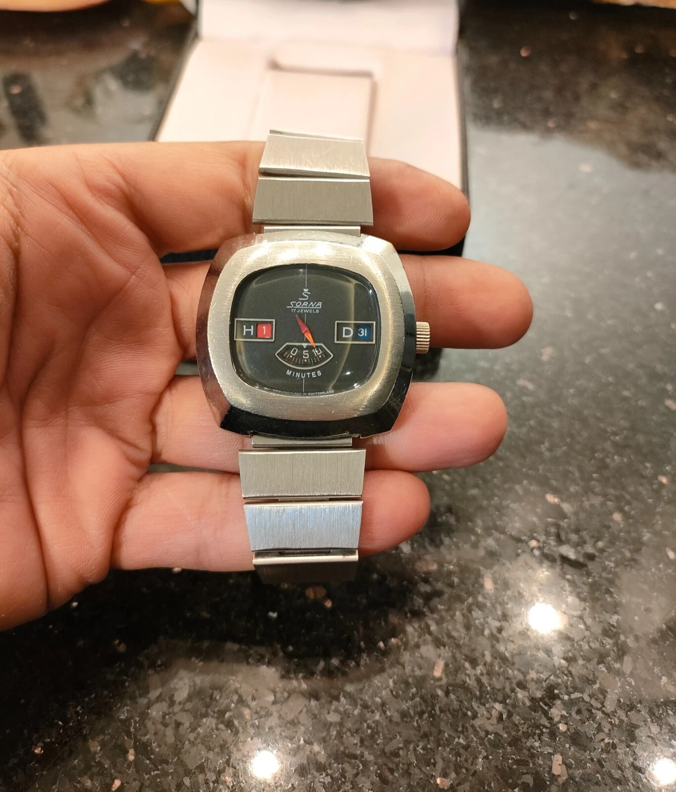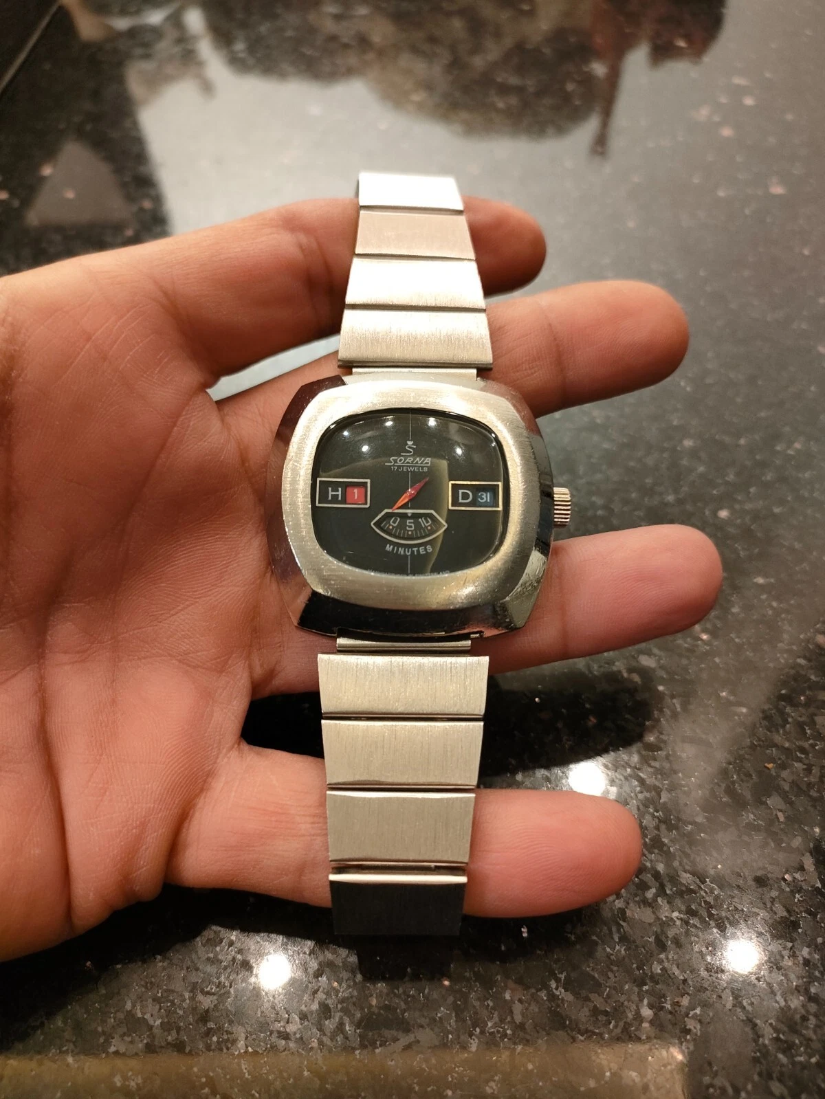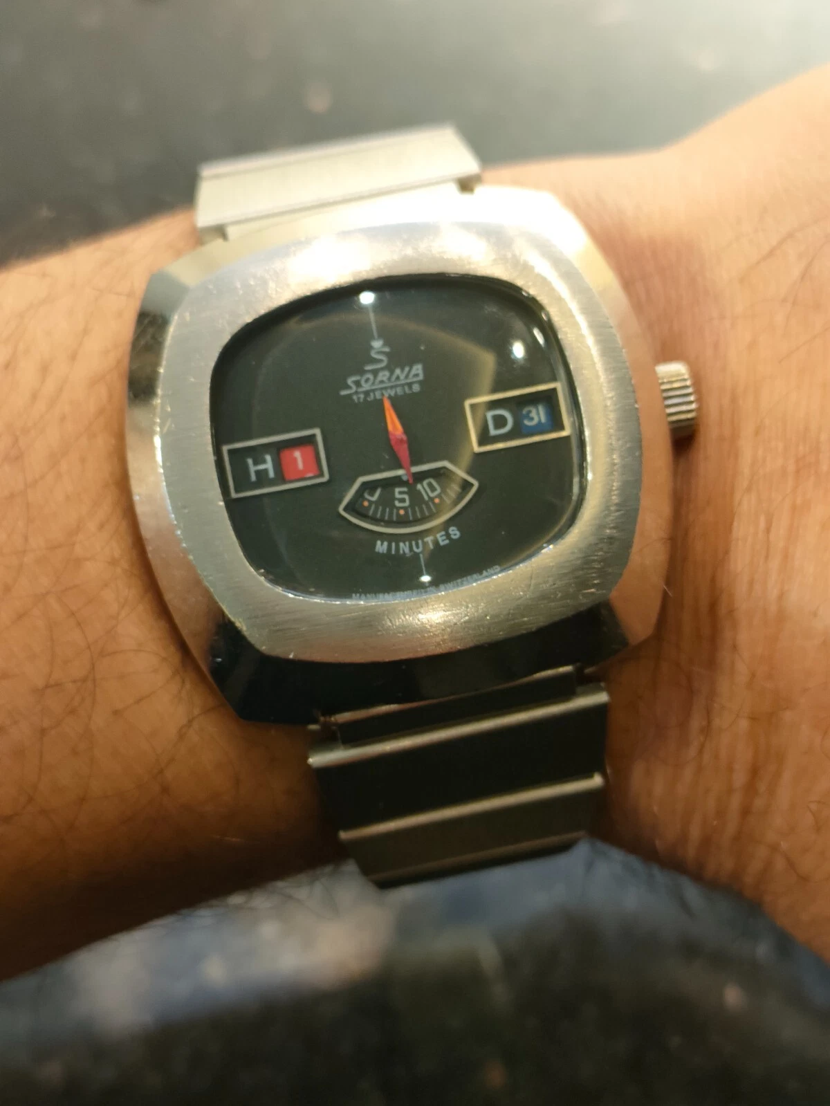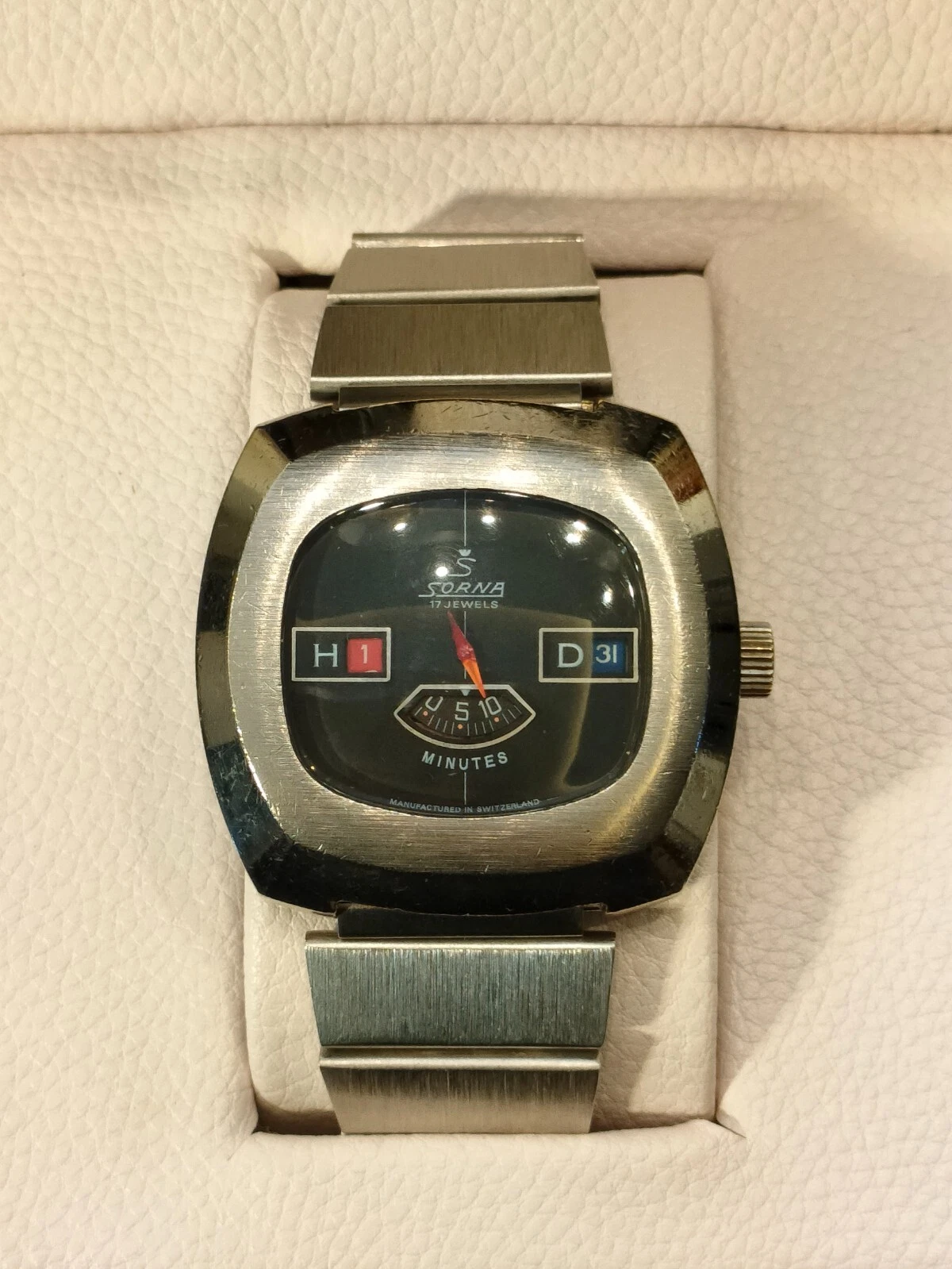 1970s Vintage Sorna Jump Hour 17 Jewels Switzerland