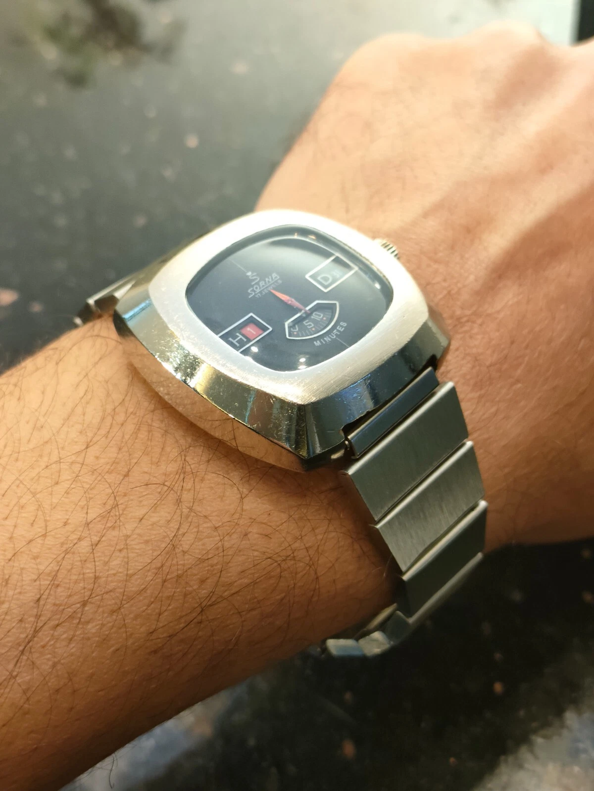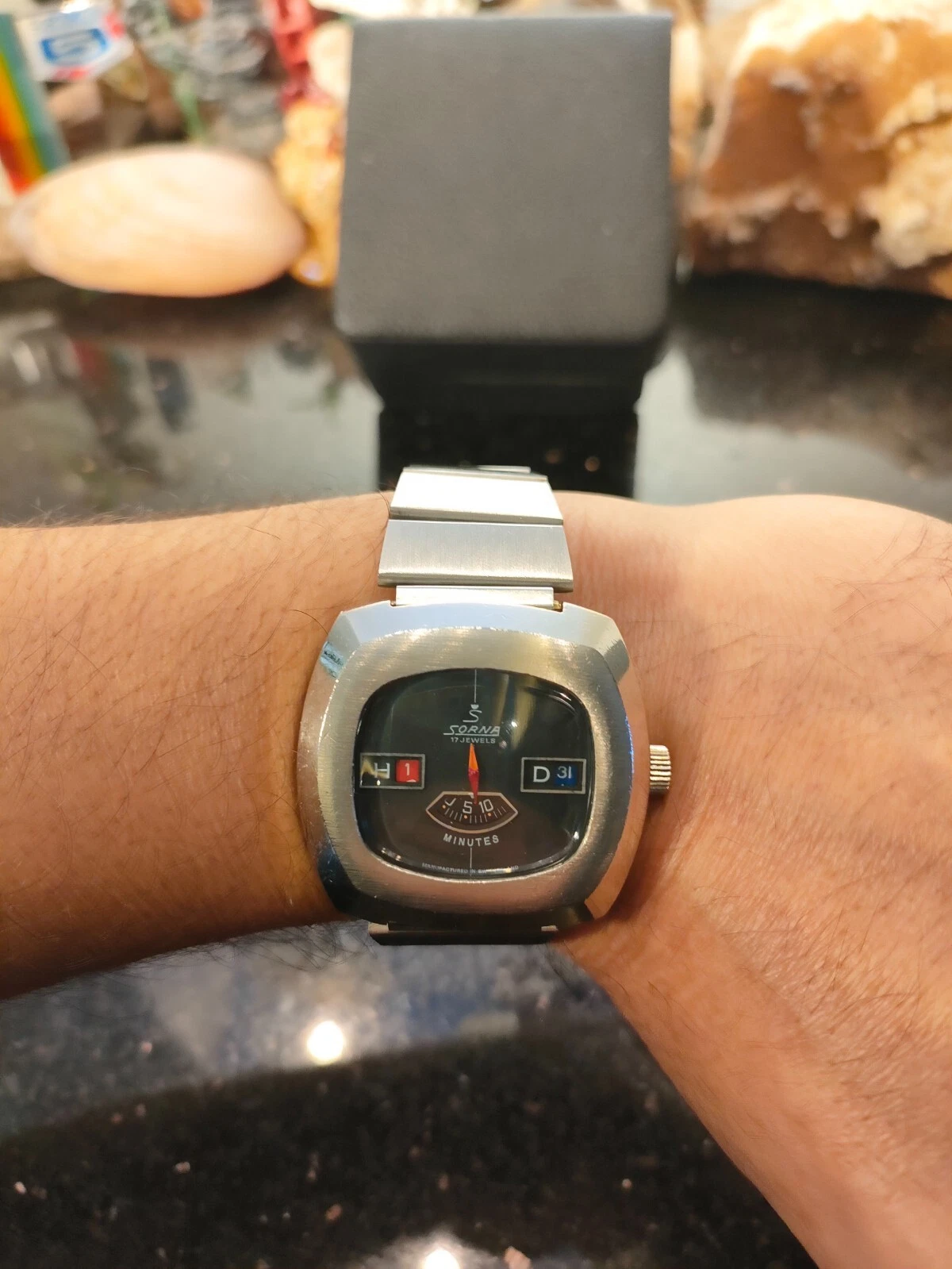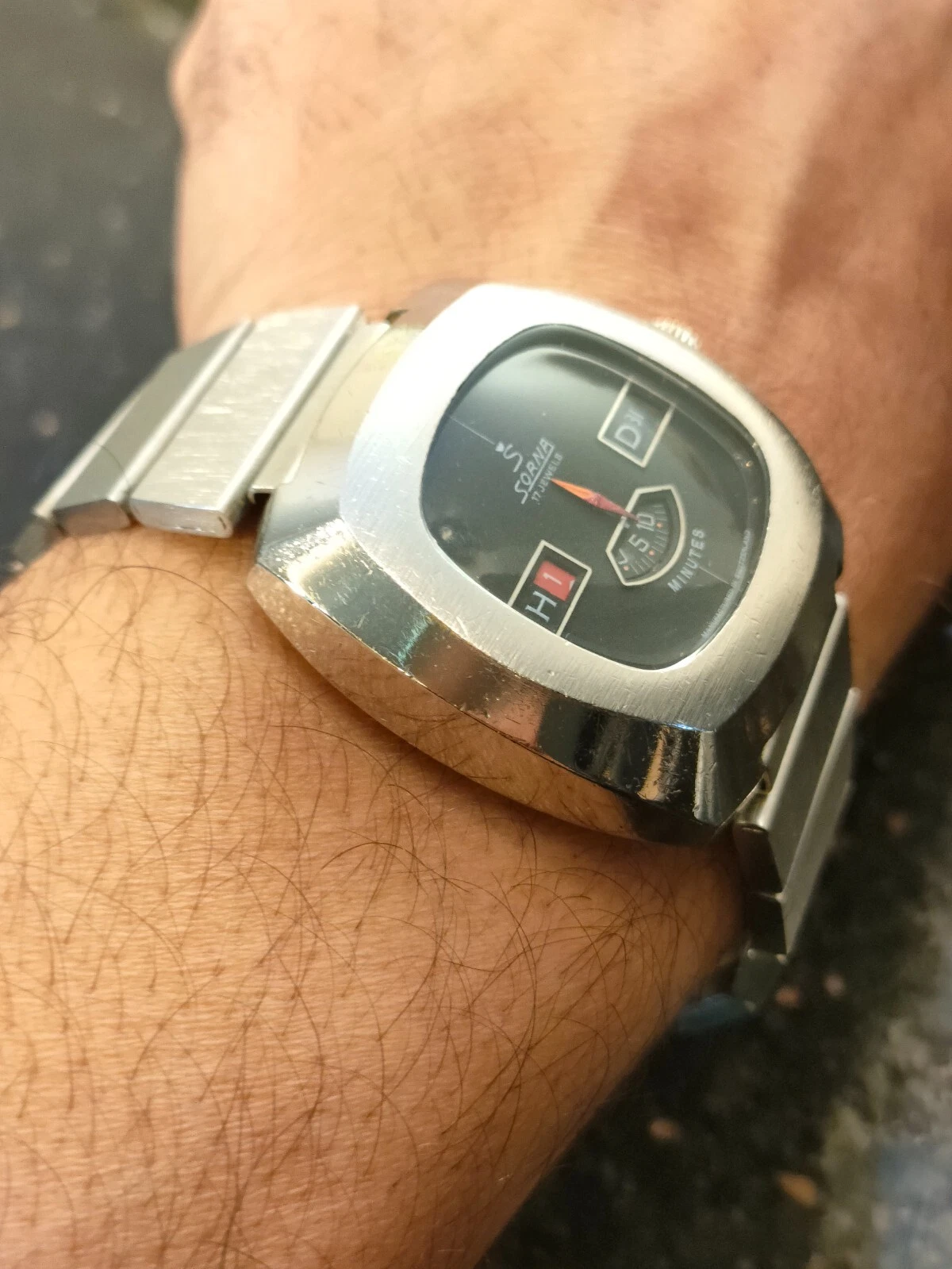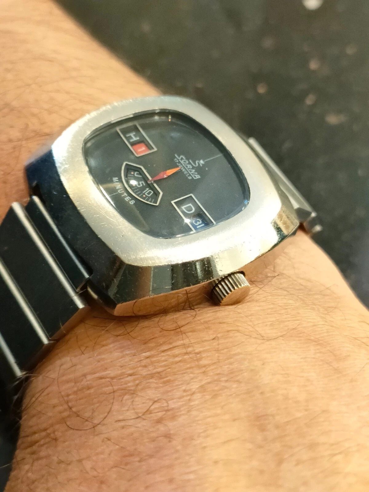 1970s Vintage Sorna Jump Hour 17 Jewels Switzerland