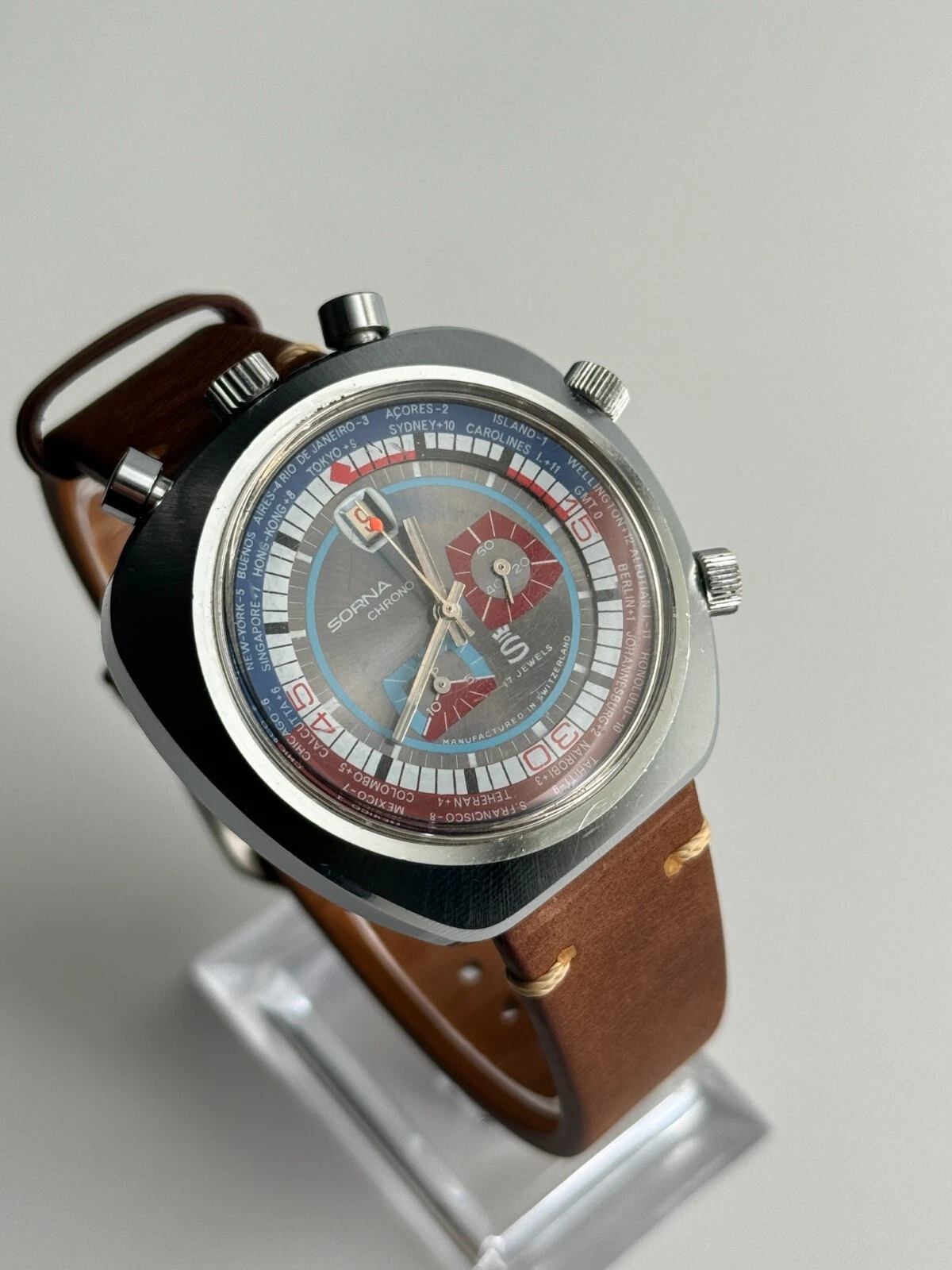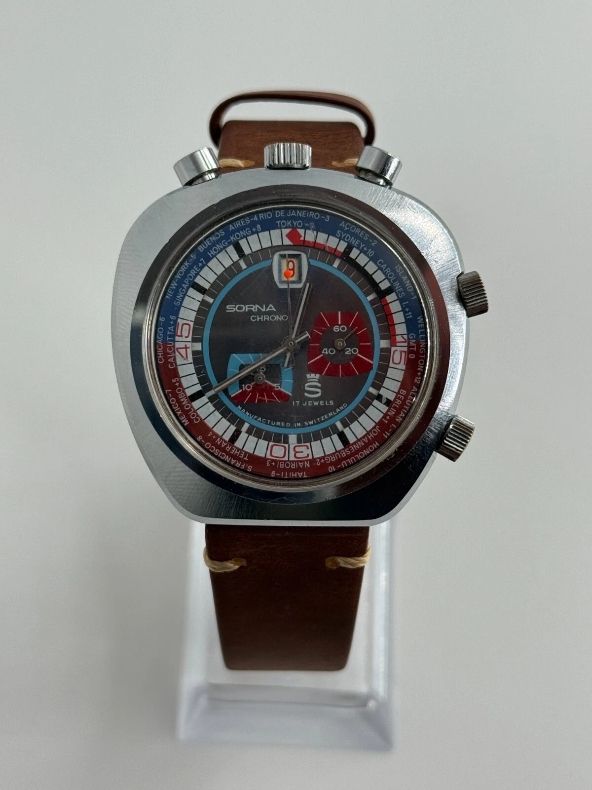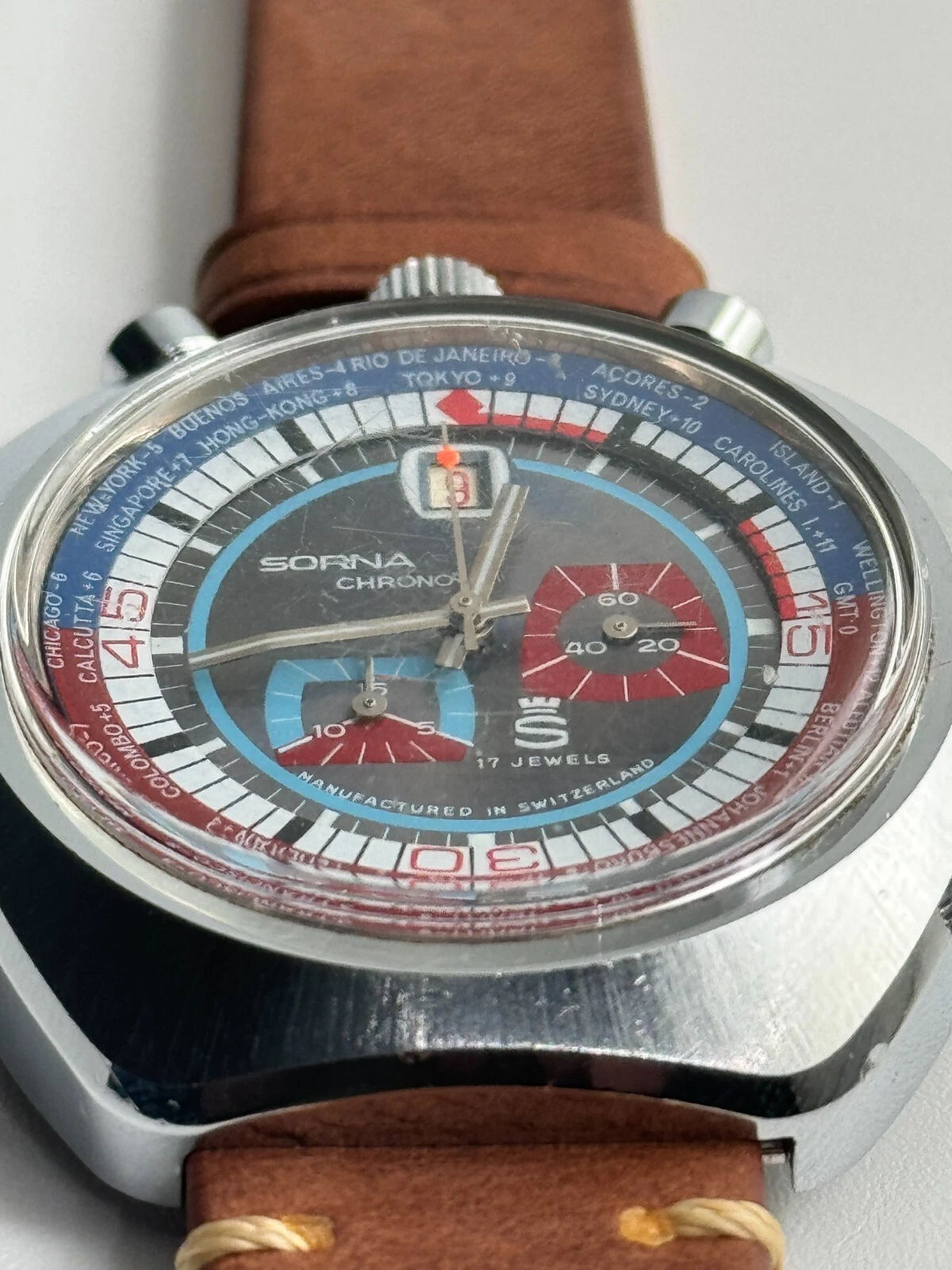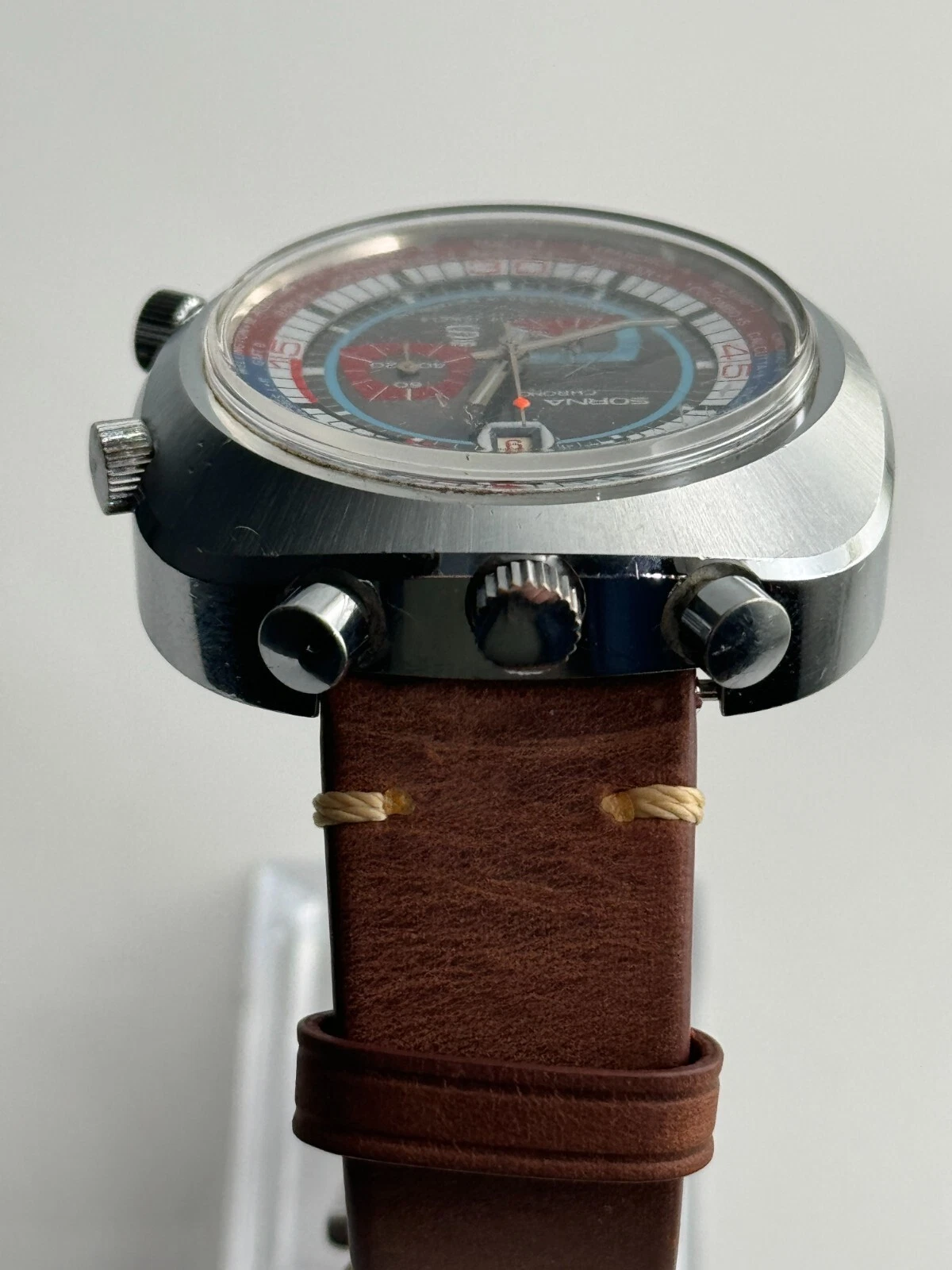 Sorna Swiss Mechanical Bullhead Chronograph 5 Crowns Original 1970 5 Colors Dial