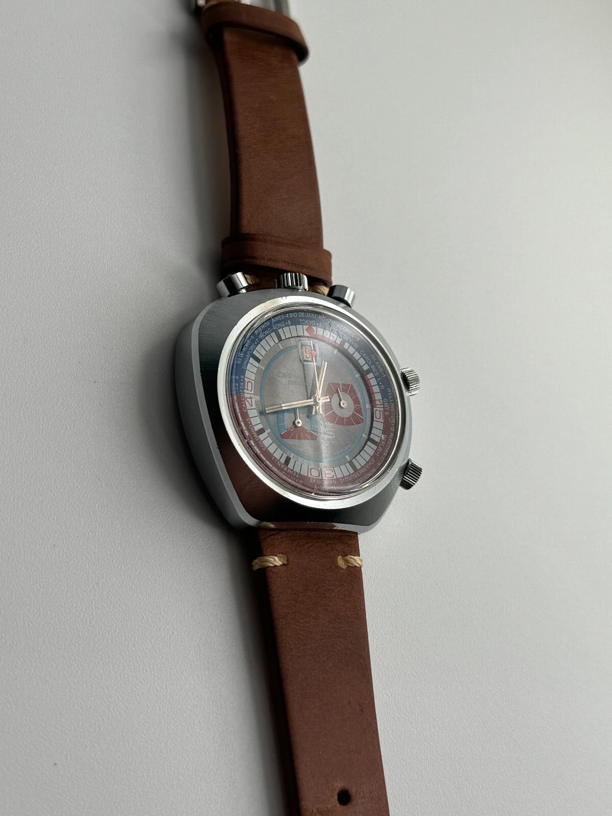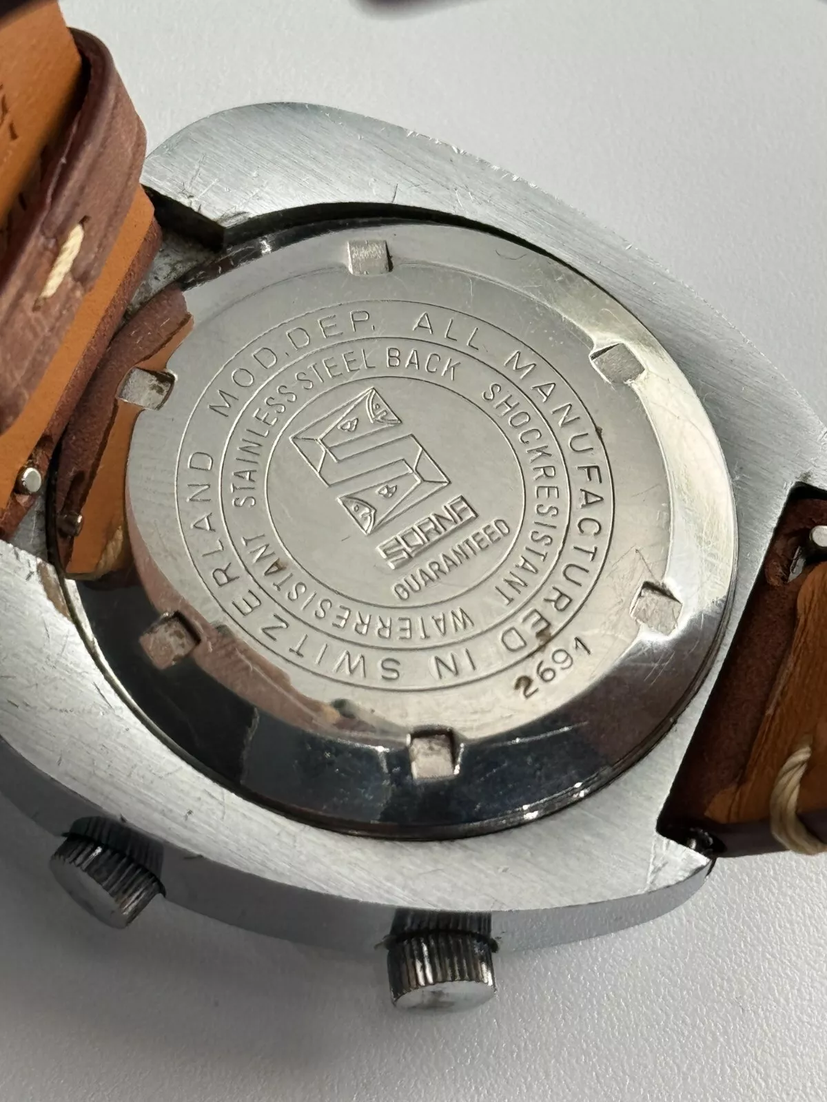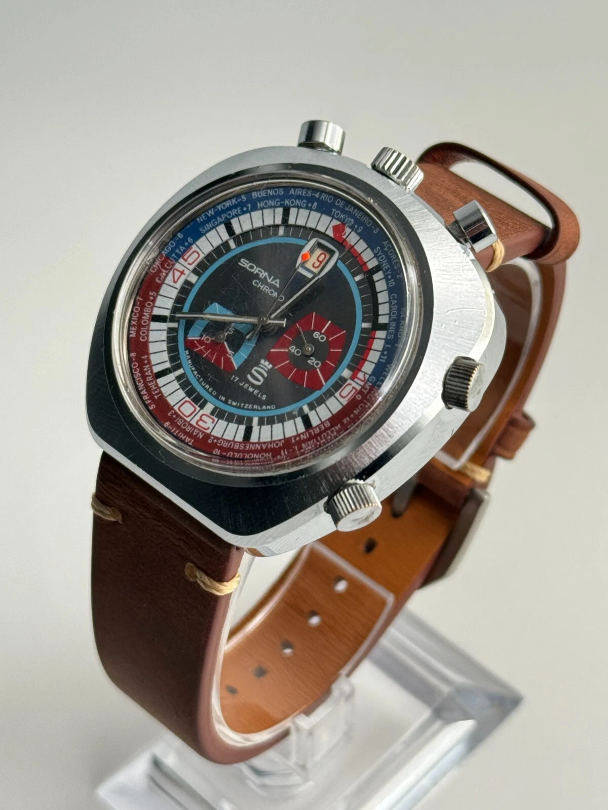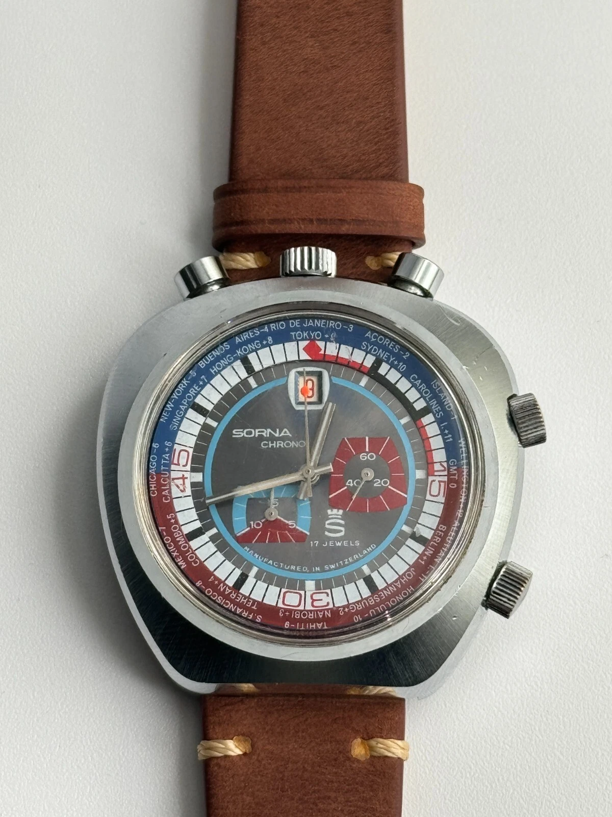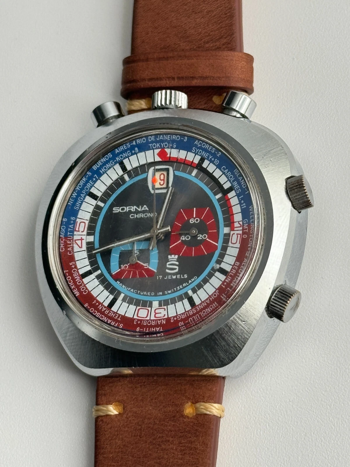 Sorna Swiss Mechanical Bullhead Chronograph 5 Crowns Original 1970 5 Colors Dial
