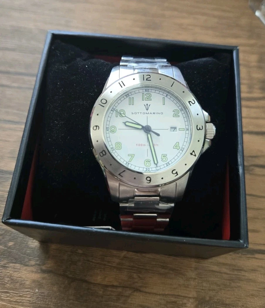 Sottomarino FUSO ORARIO St-7001-44 White Dial 42 Mm Dive Watch Stainless Steel