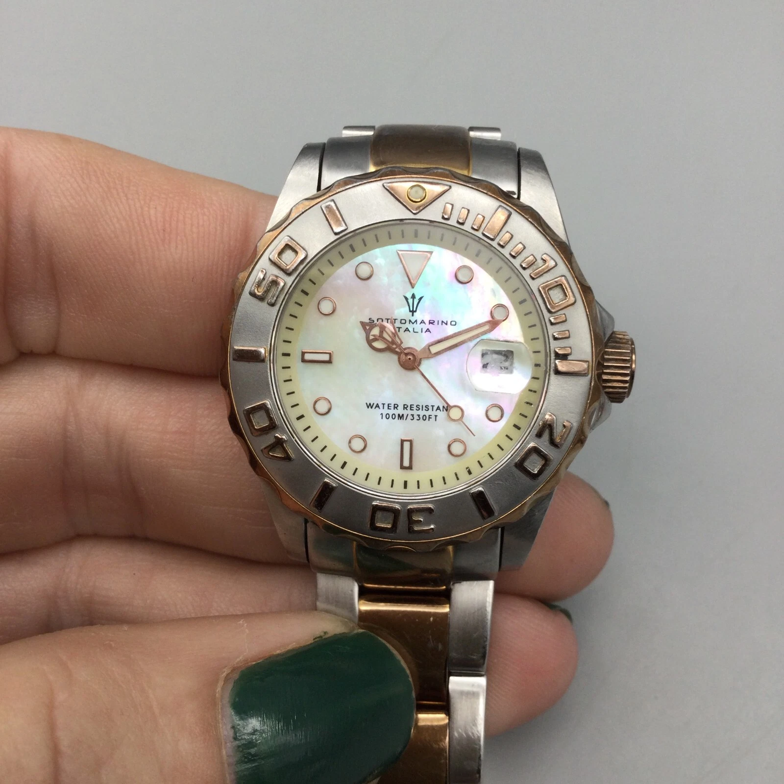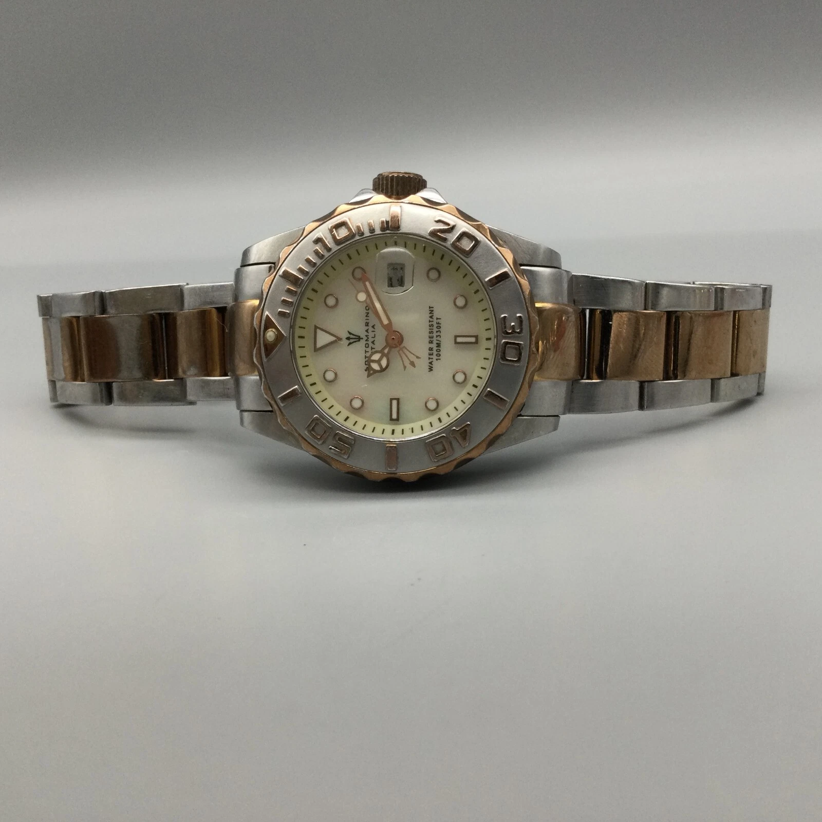 Sottomarino Italia Watch Women 30mm Silver Gold Two Tone Date New Battery 7.5"