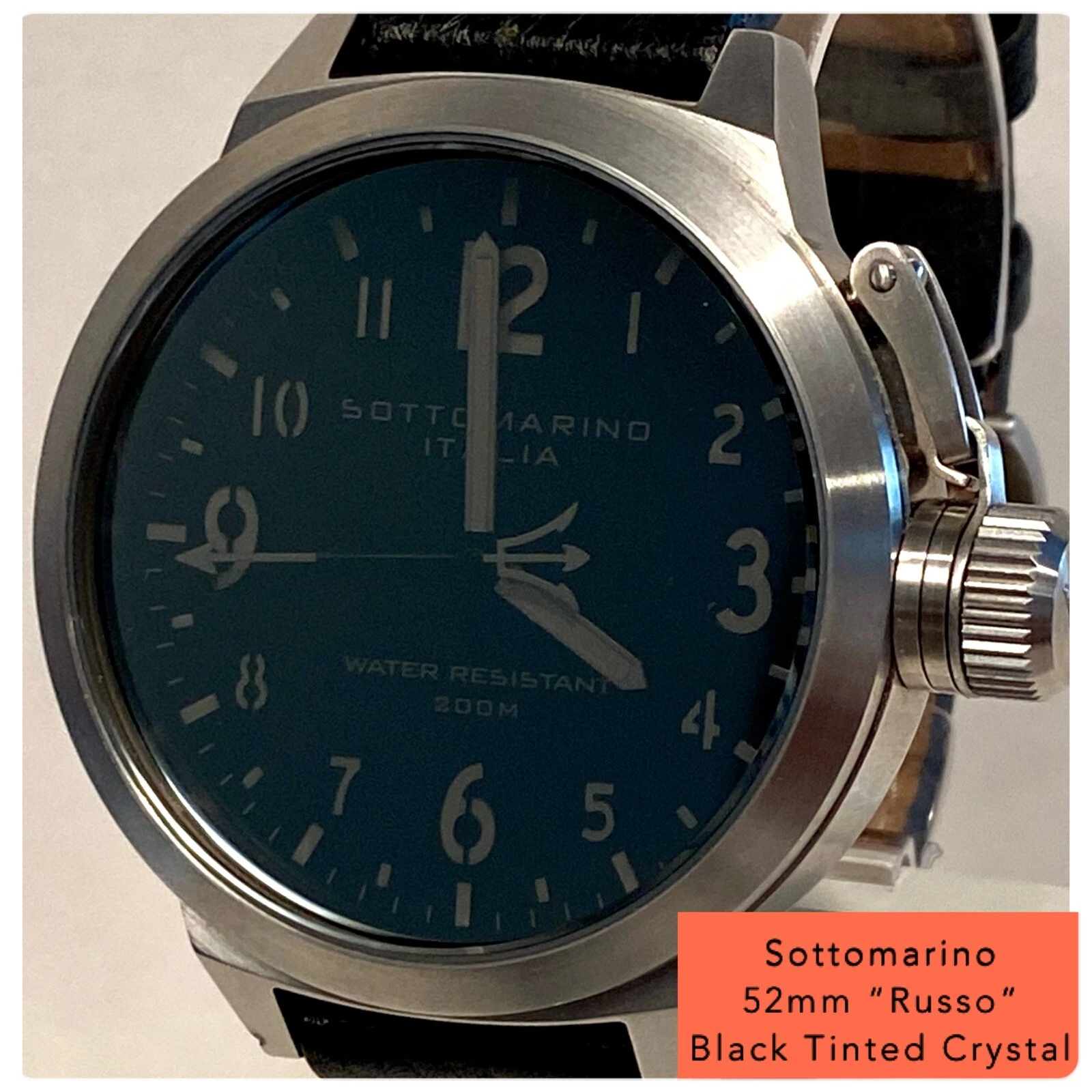 52mm Black Tinted SOTTOMARINO “Italia Russo” Silvertone/ Black Band Mens Watch