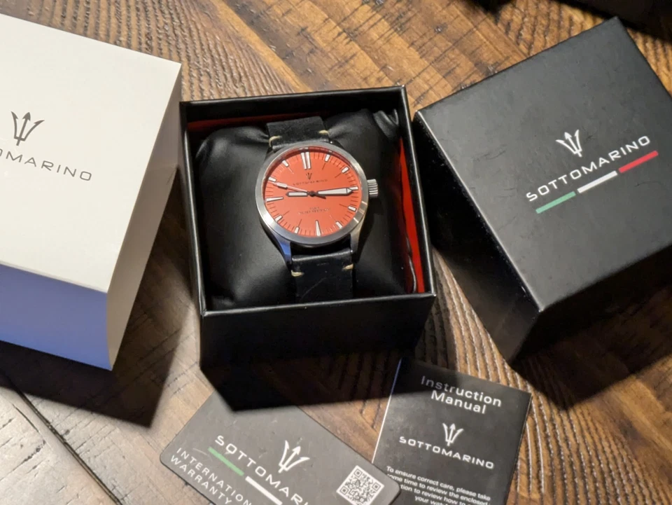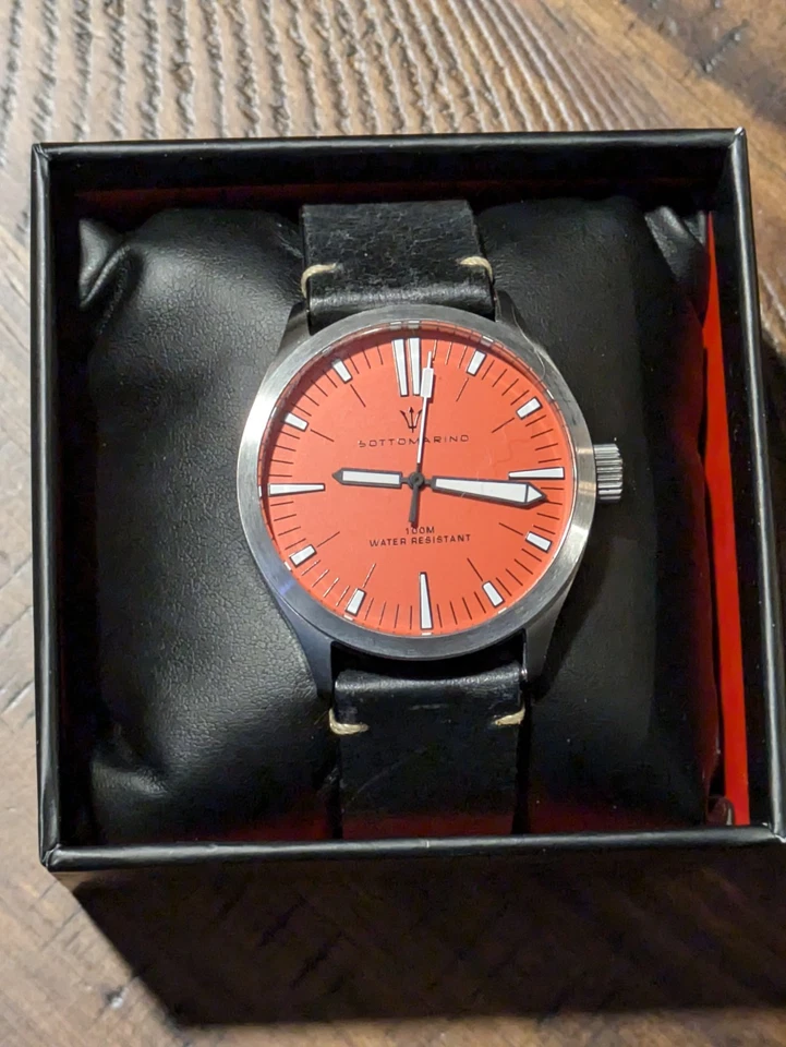 Sottomarino ST-7000 Orange Dial 41mm Quartz Black Leather 100m Wrist Watch