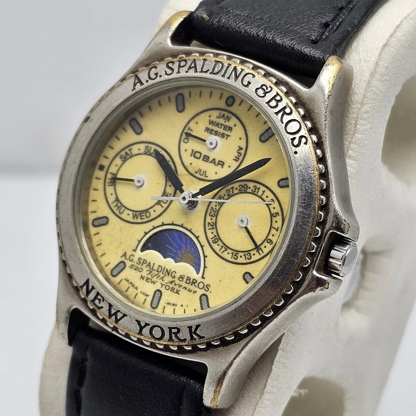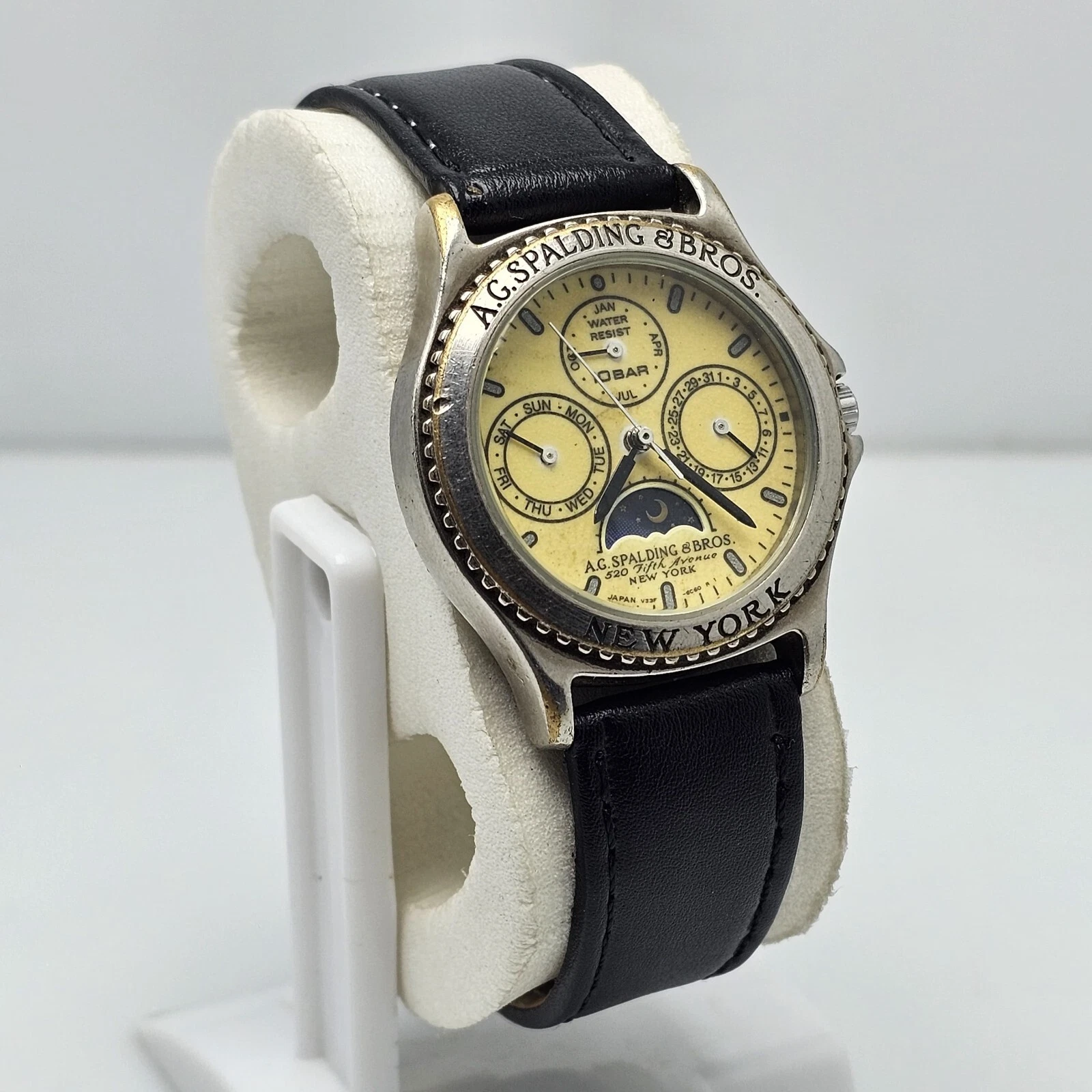 A.G. Spalding & Bros Quartz V33F-6B10 Moon Phase Vintage Men’s Watch