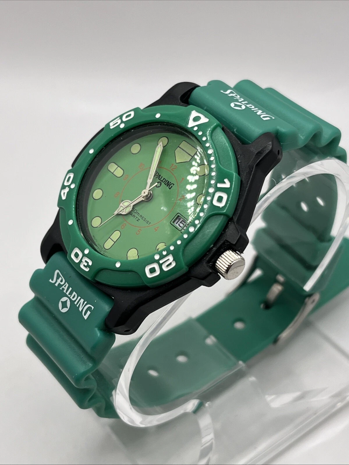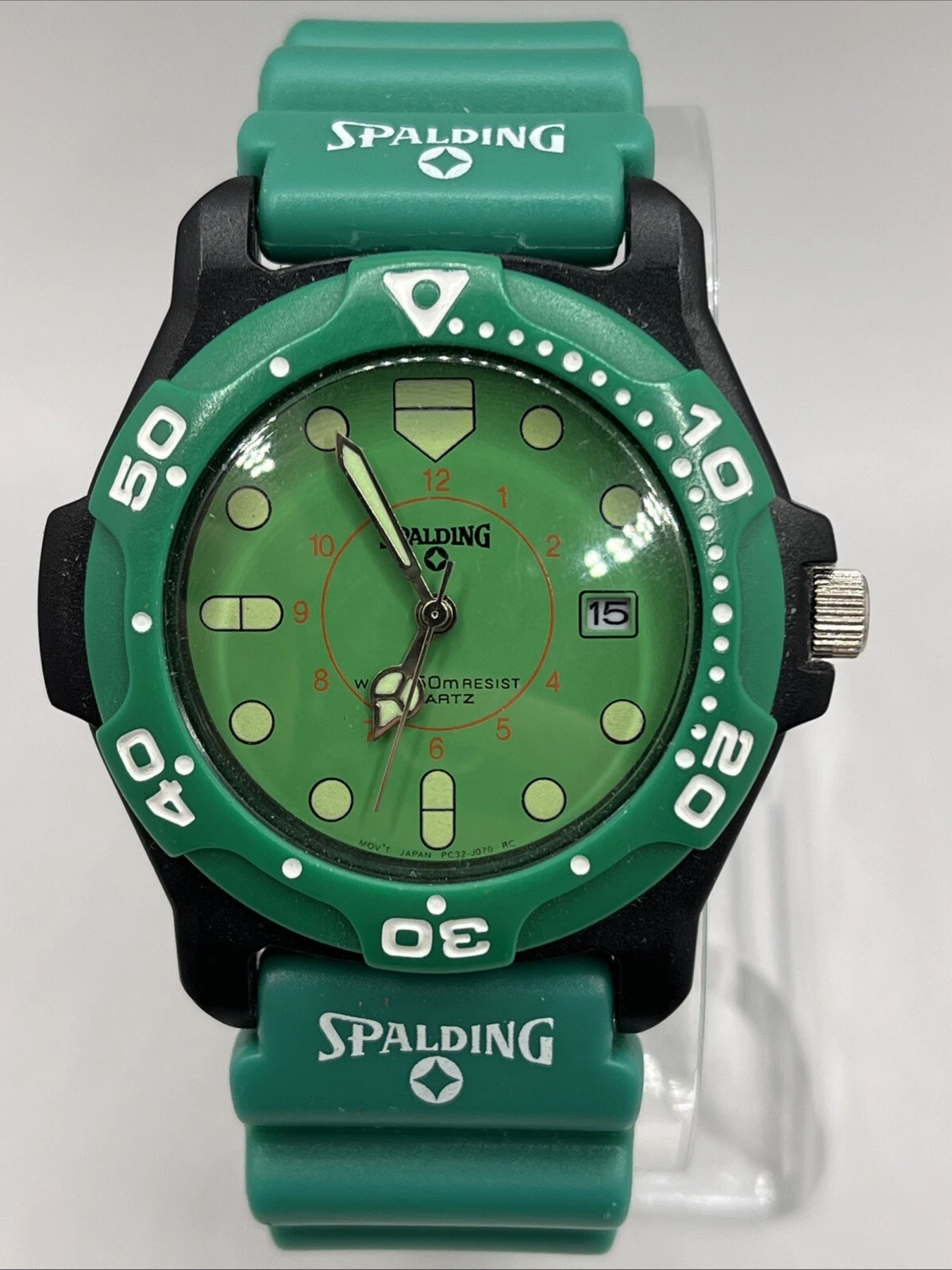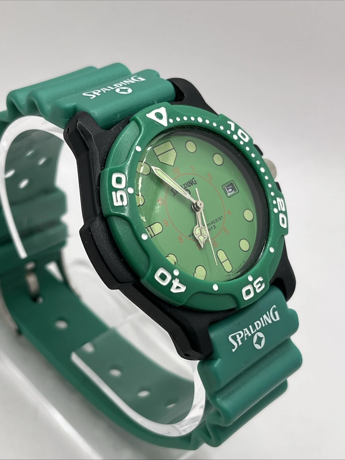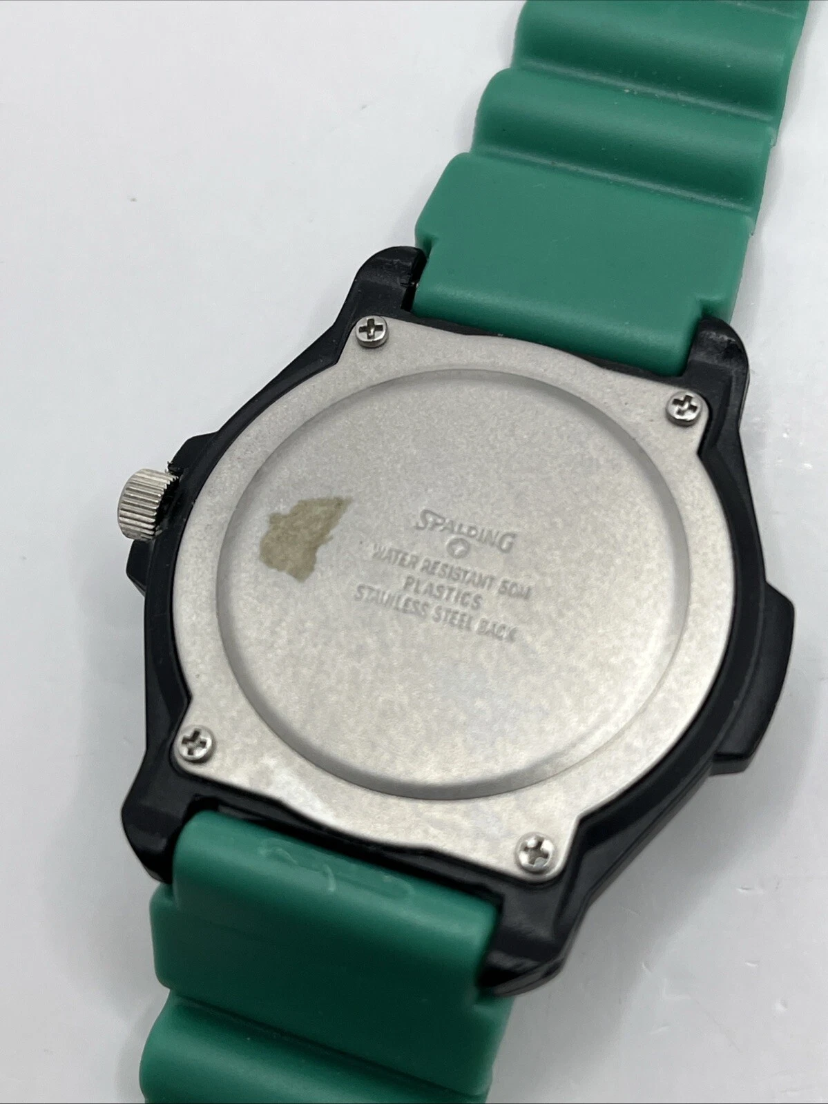 Vintage Spalding Men's Quartz Watch Green Plastic Band 41mm Case- New Battery