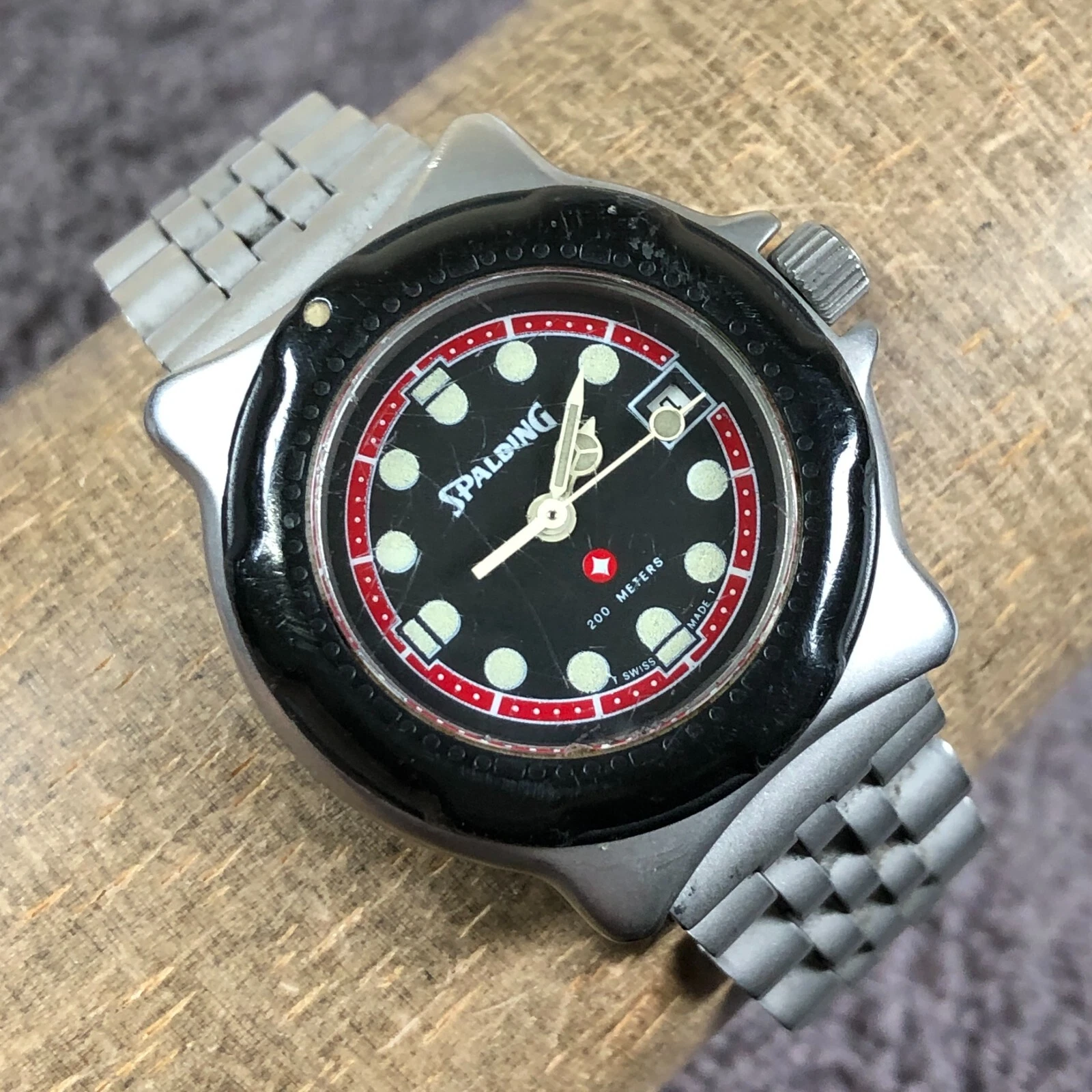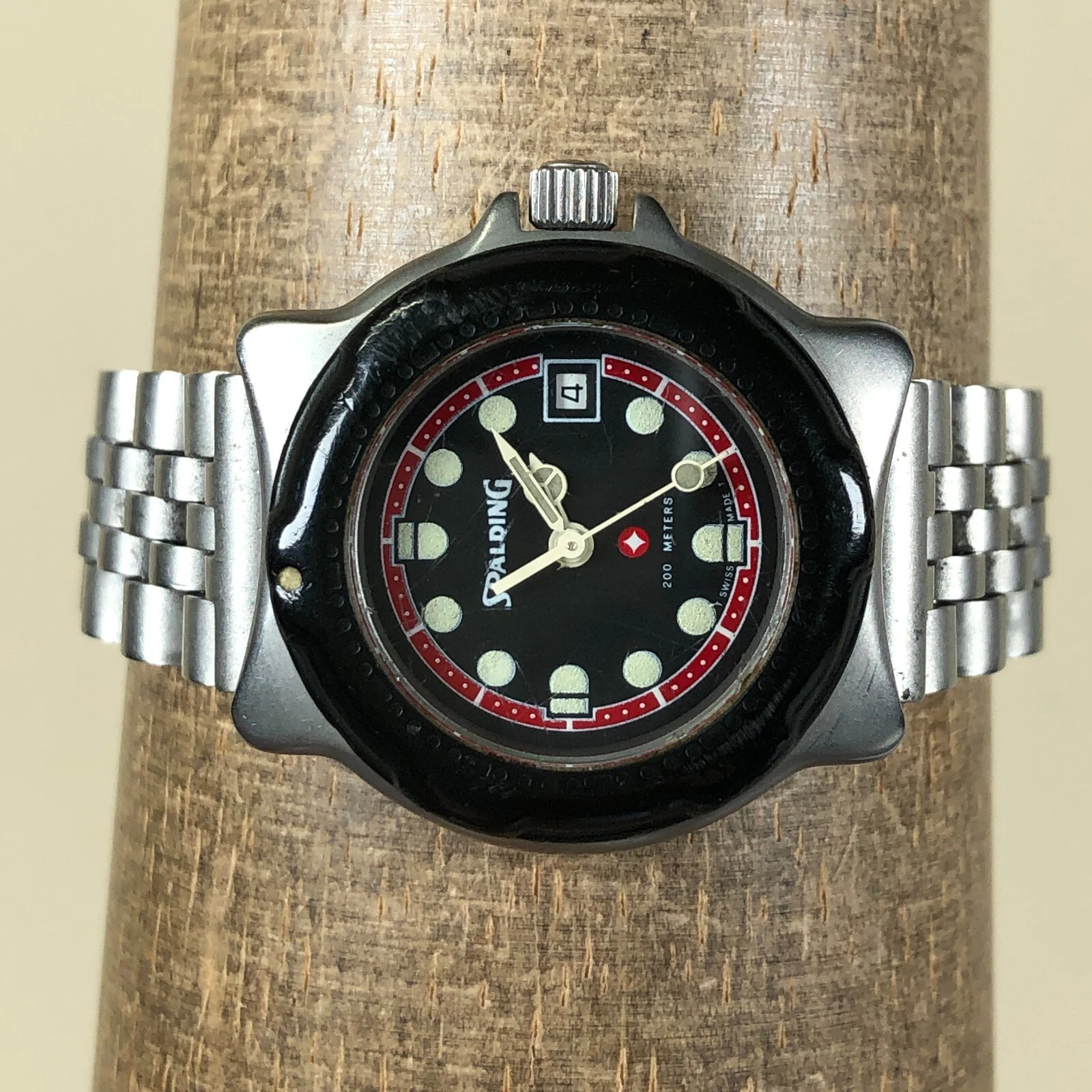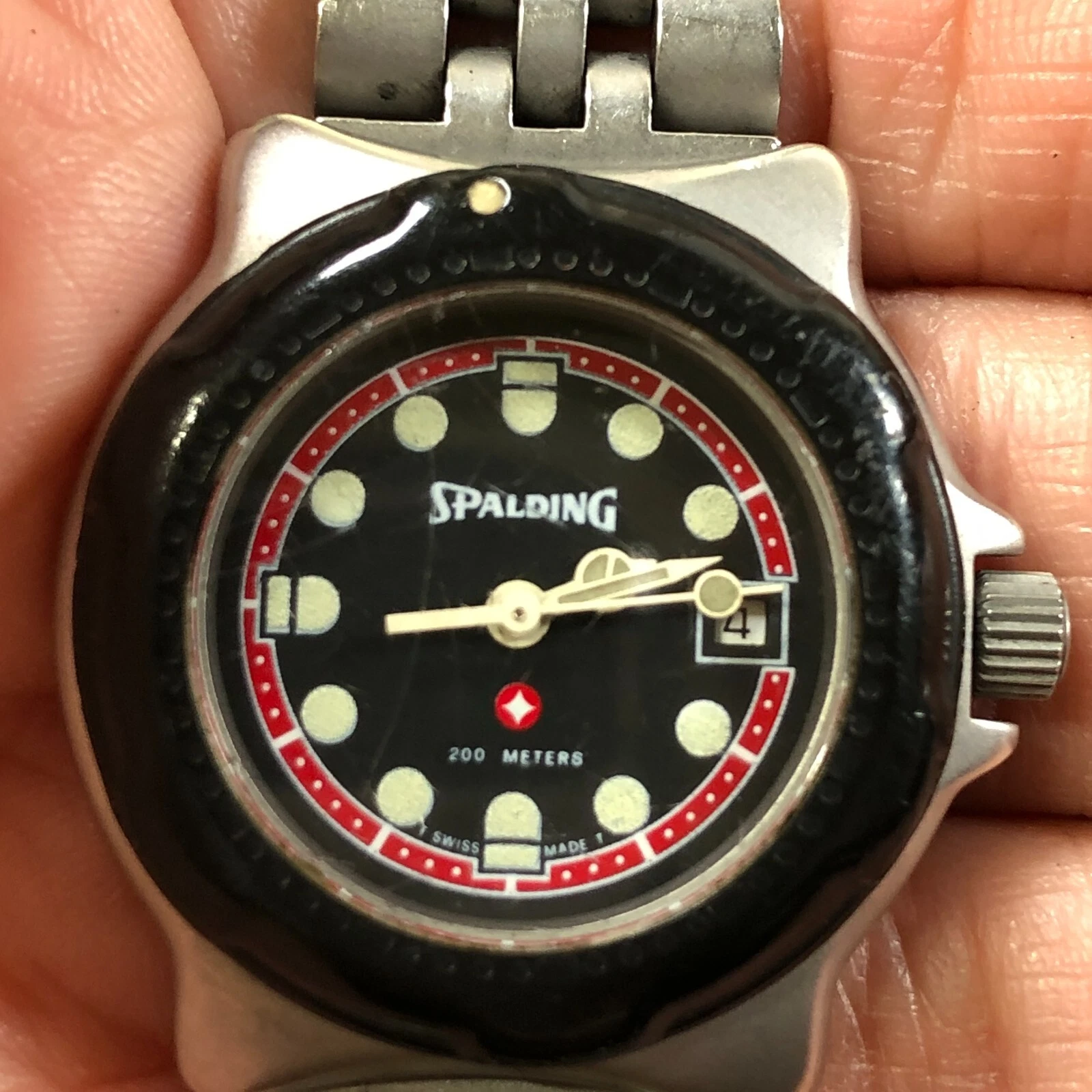 Spalding Women 7876 Date Silver Tone Round Quartz Analog Watch 6 1/4"