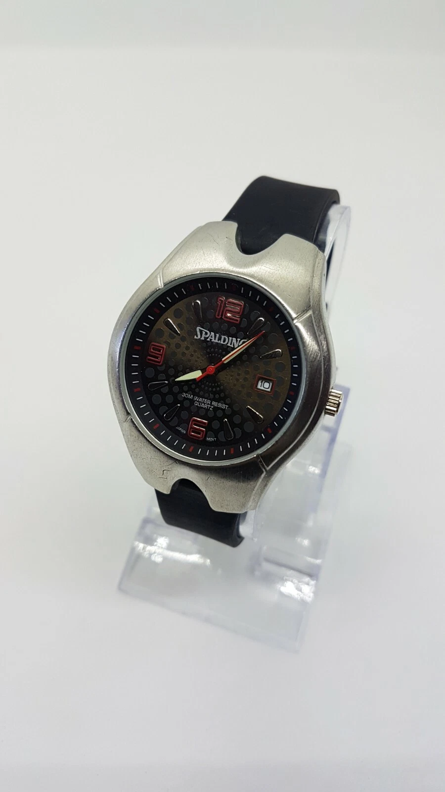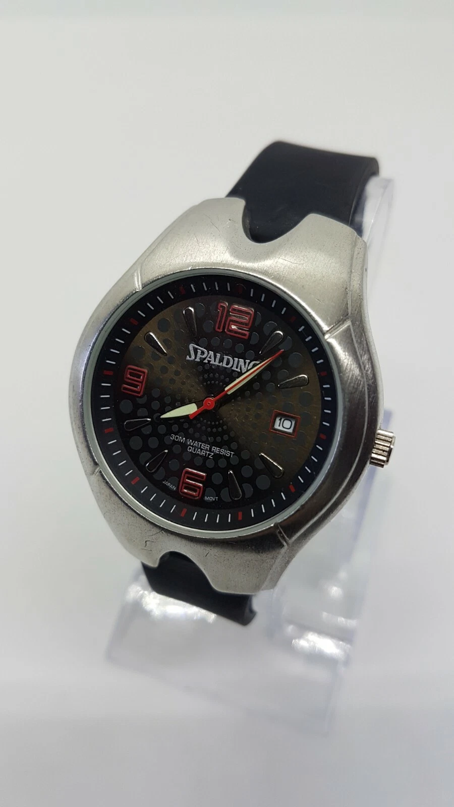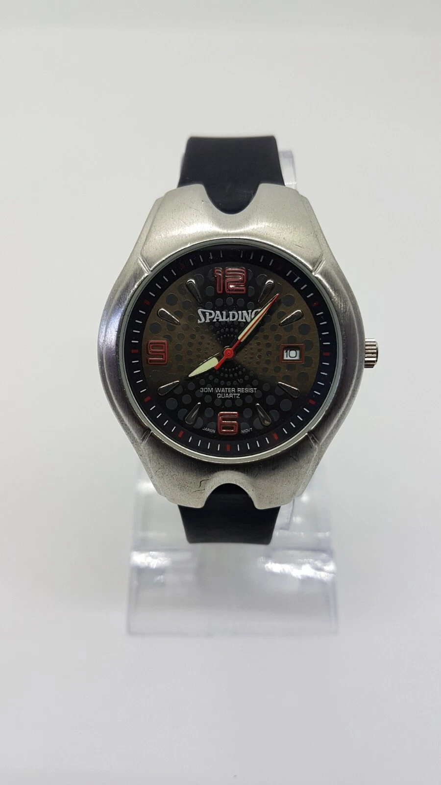 Spalding Sports Black and Silver Watch for men and women 41mm Red Hour Markers