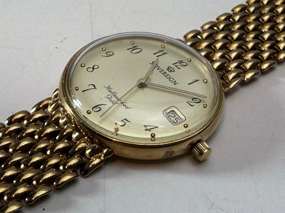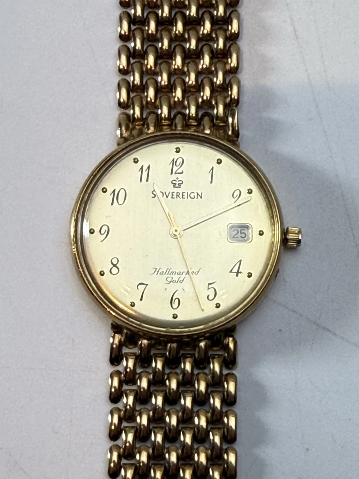Sovereign Hallmarked Gold 9ct Gold Gents Watch on 9ct Gold Bracelet