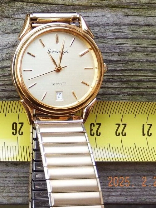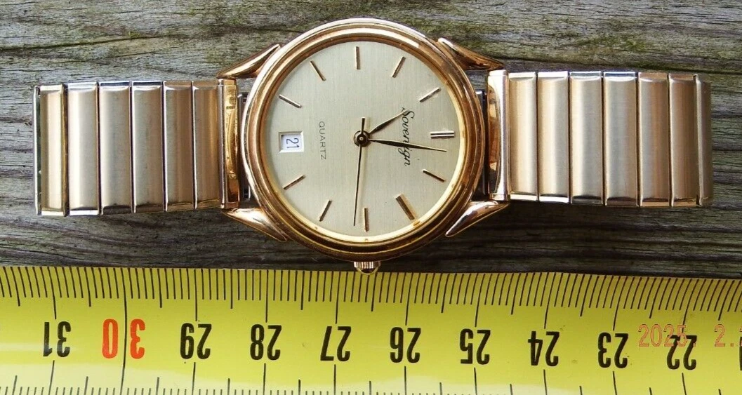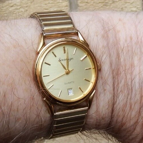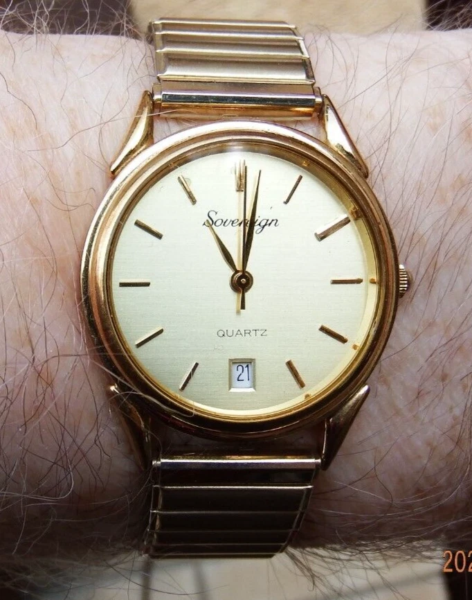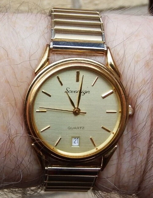 VERY GOOD VINTAGE SOVEREIGN SWISS QUARTZ GP BRACELET  WATCH. GWO.