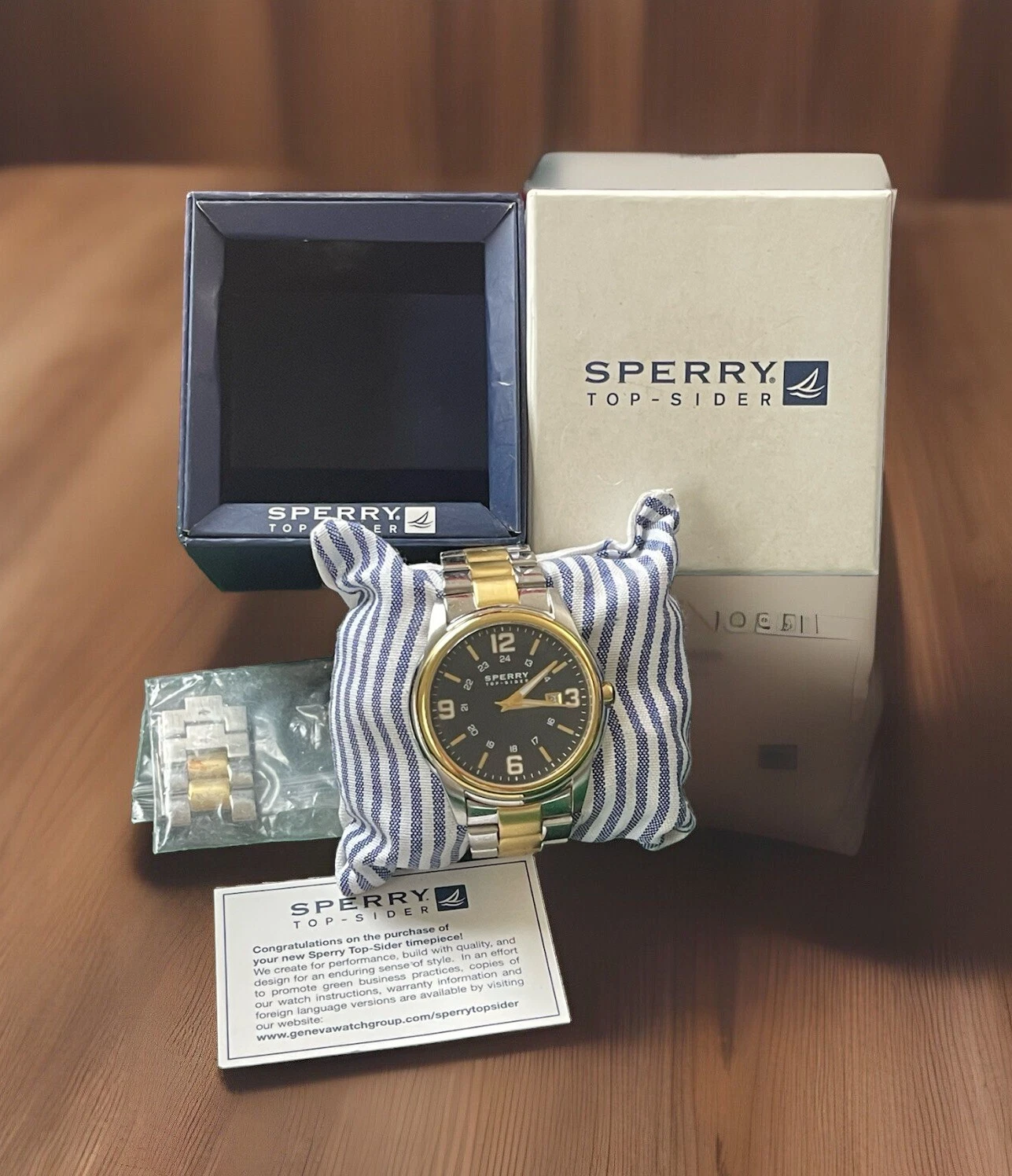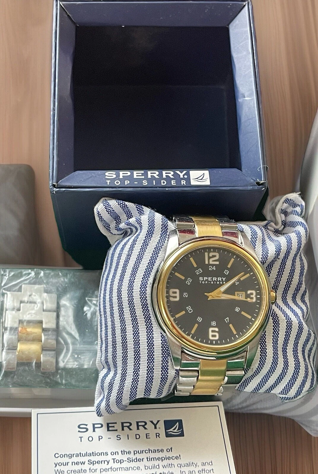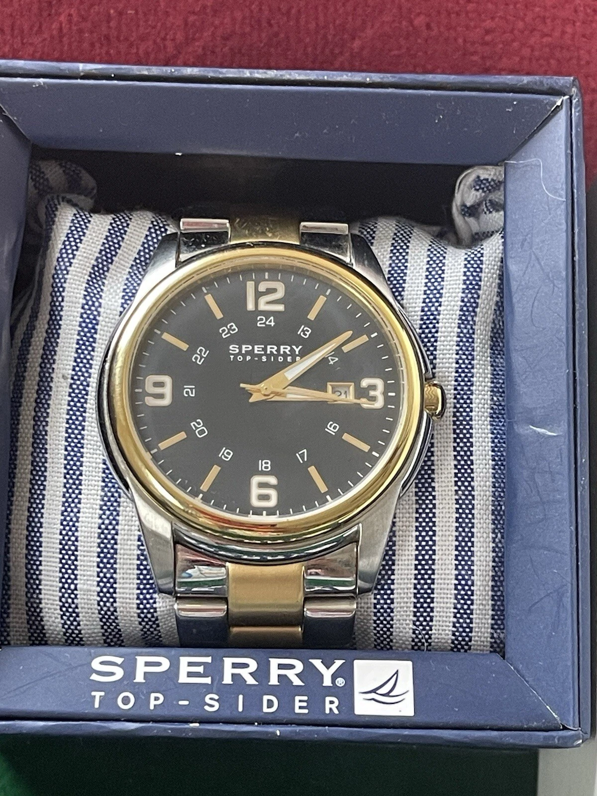 Sperry Top Sider Watch Womens Rhinestone Gold Silver Tone Nautical
