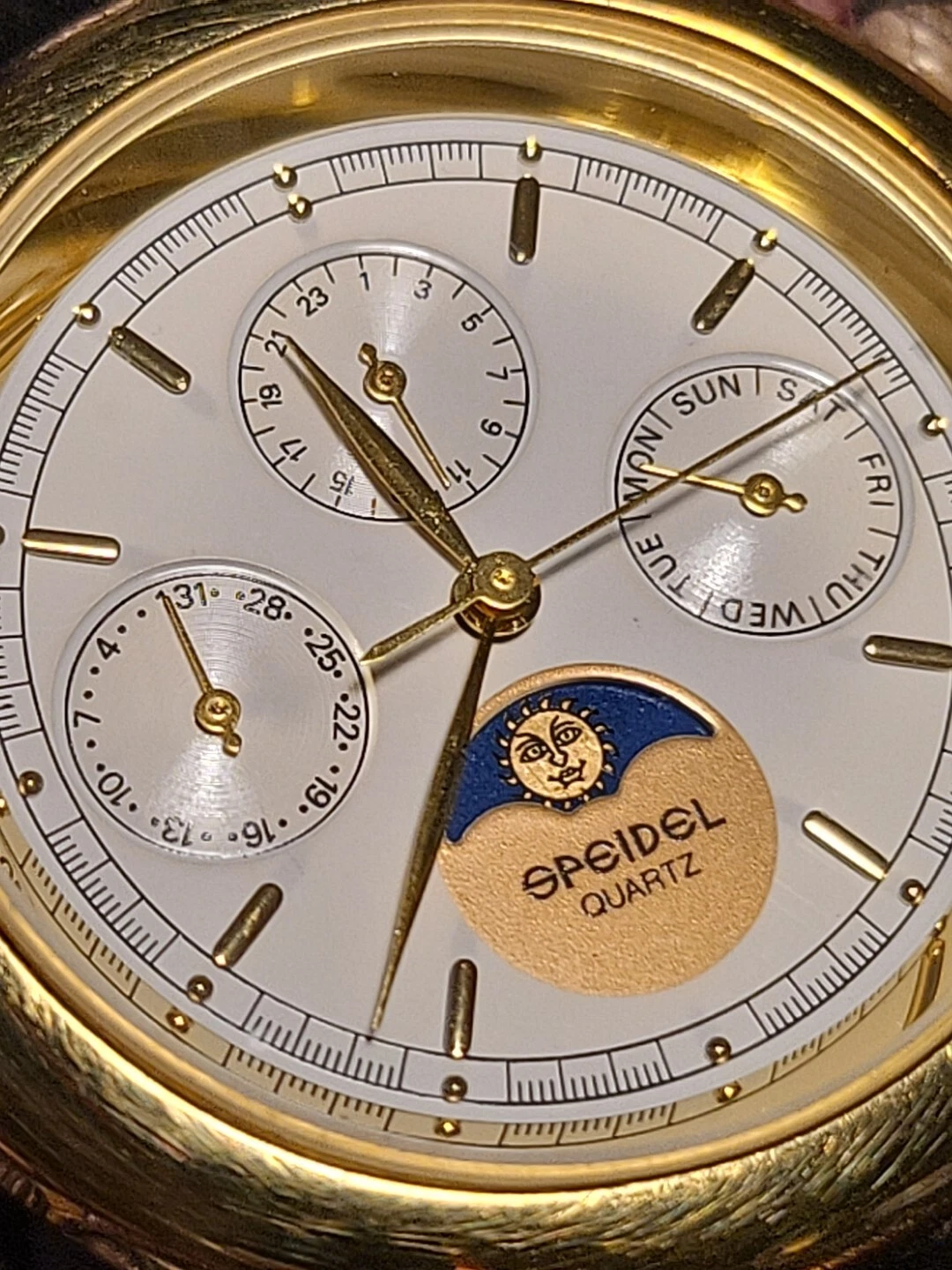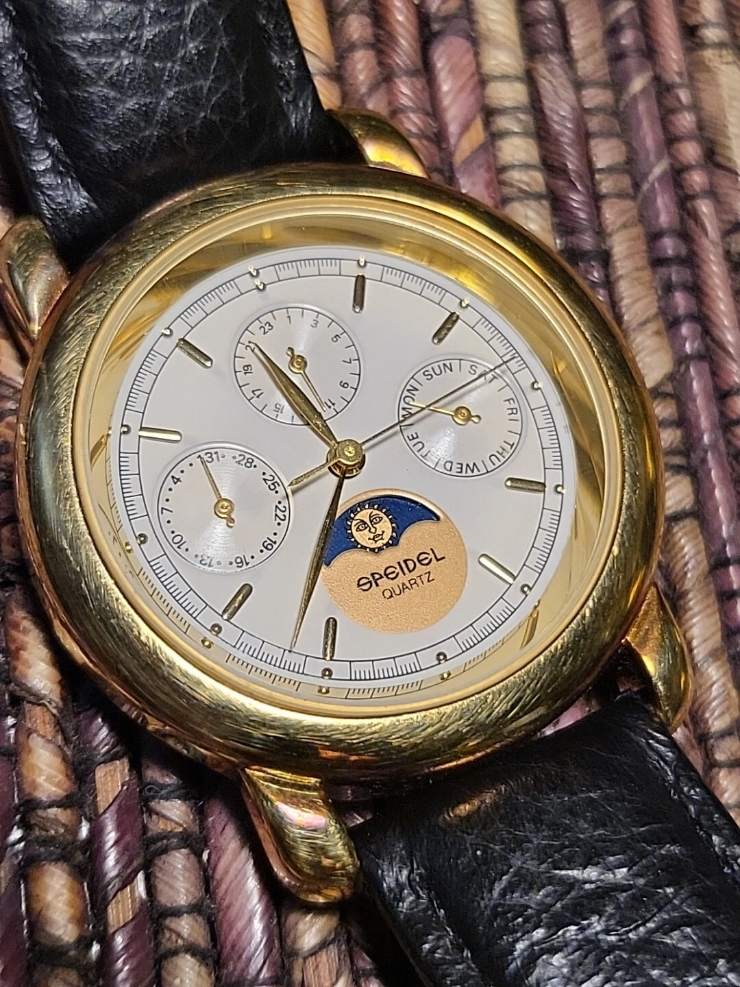 Vintage Speidel Quartz Moon Phase Date Calendar Men’s Watch New Batt