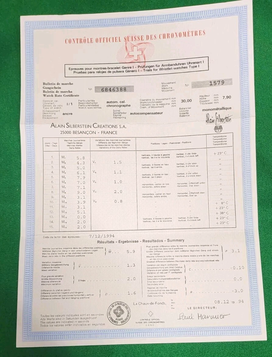 Alain Silberstein Kronomarine Triple Calendar Moonphase Chronograph Wristwatch
