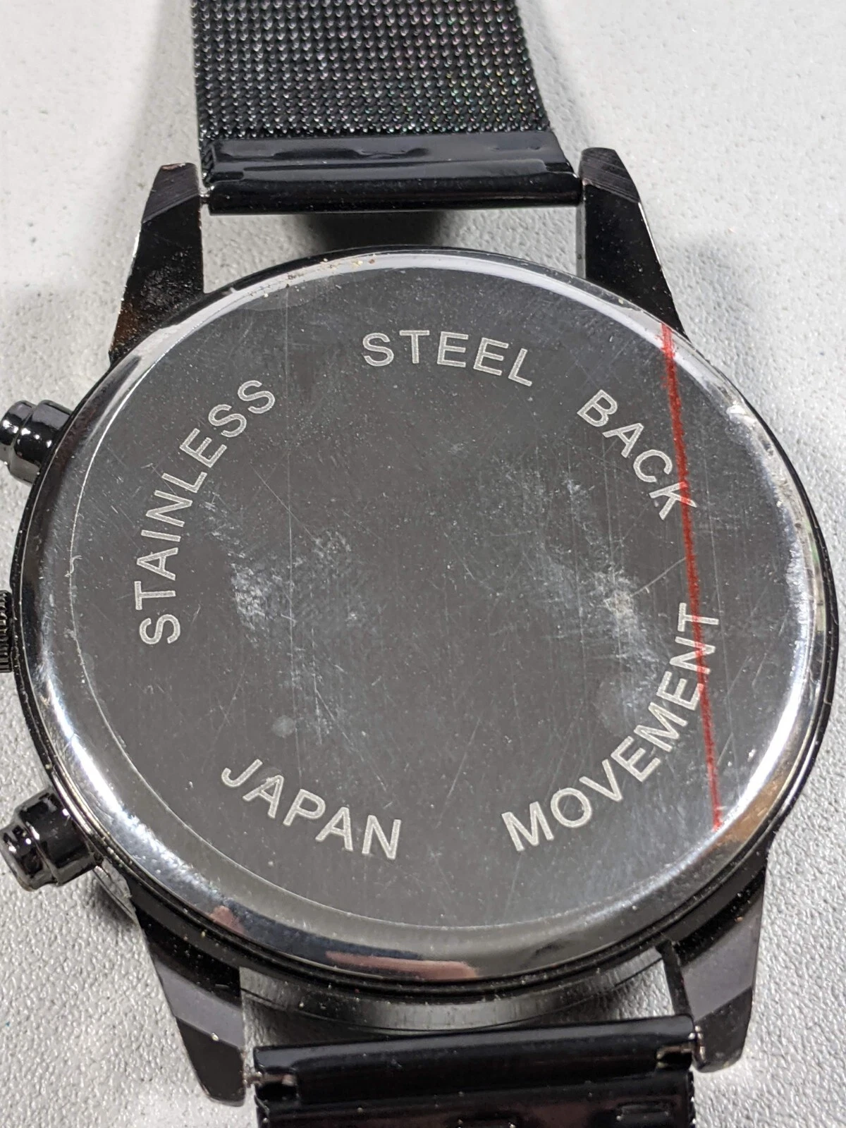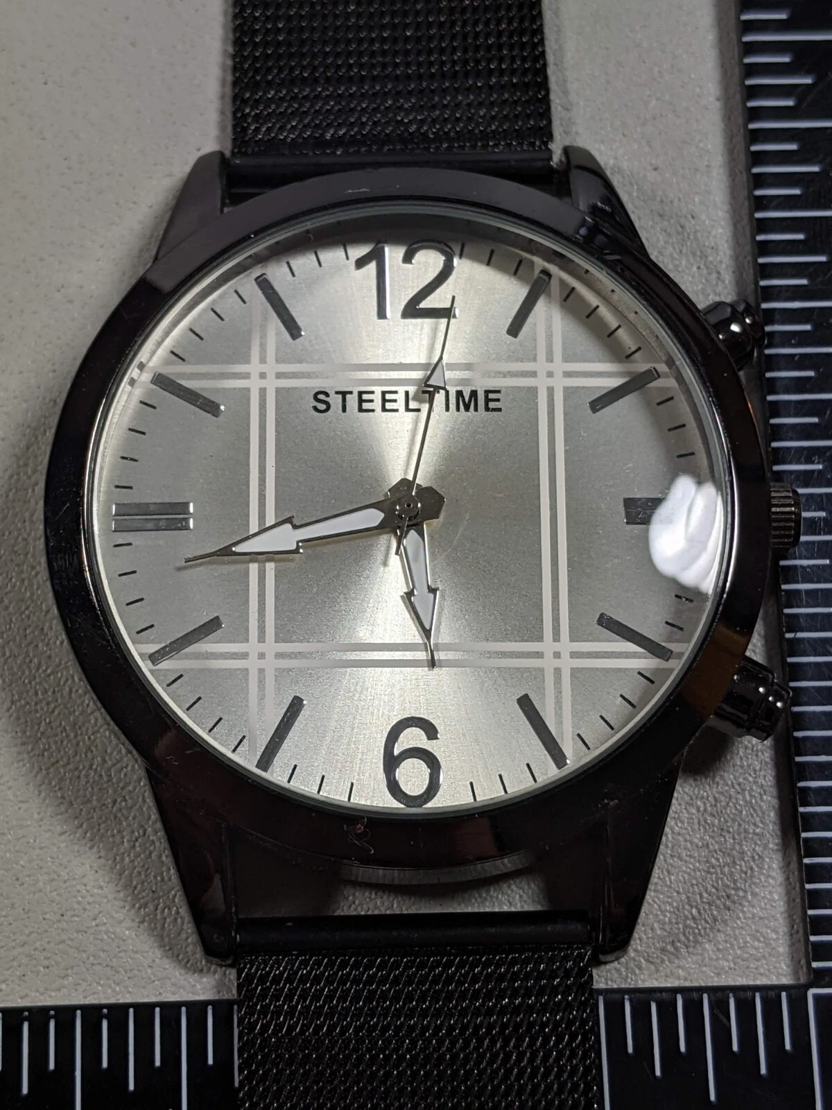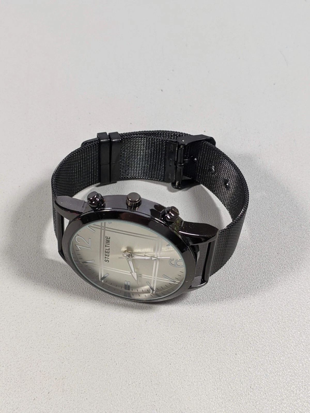 Steel Time Silver Tone Dial Round Black Round Case 45 mm Mesh Band Watch