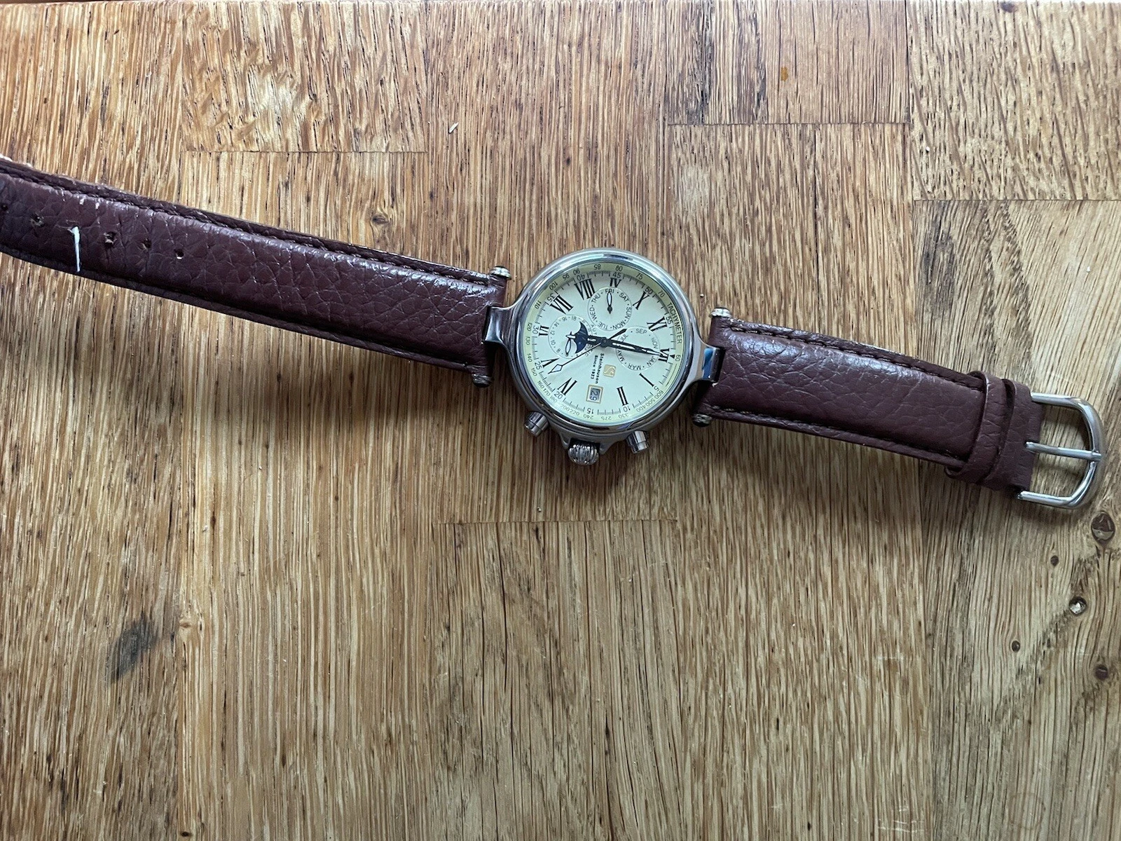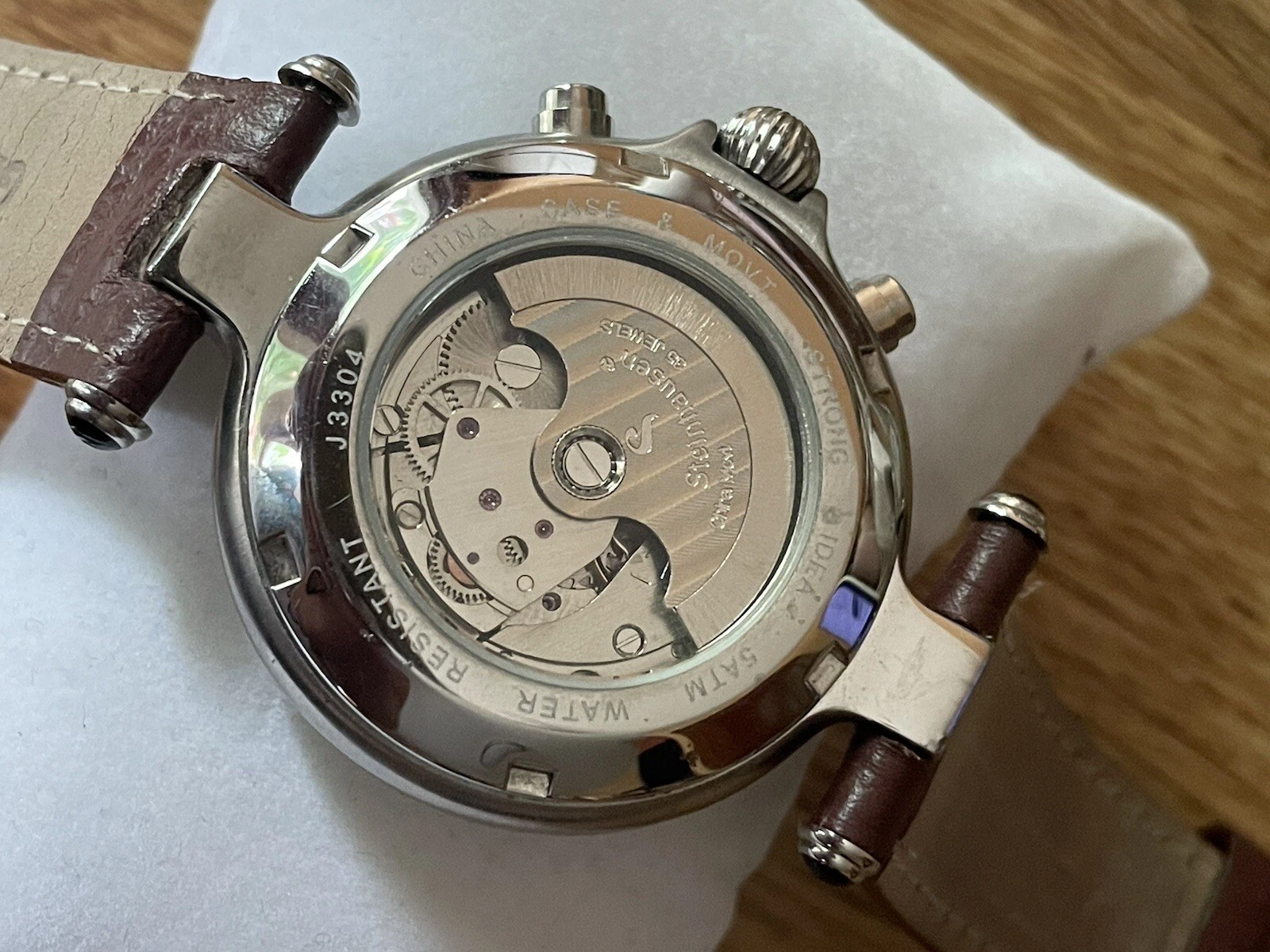 Mens Steinhausen Automatic Watch Triple Calendar Moon Phase Skeleton Back