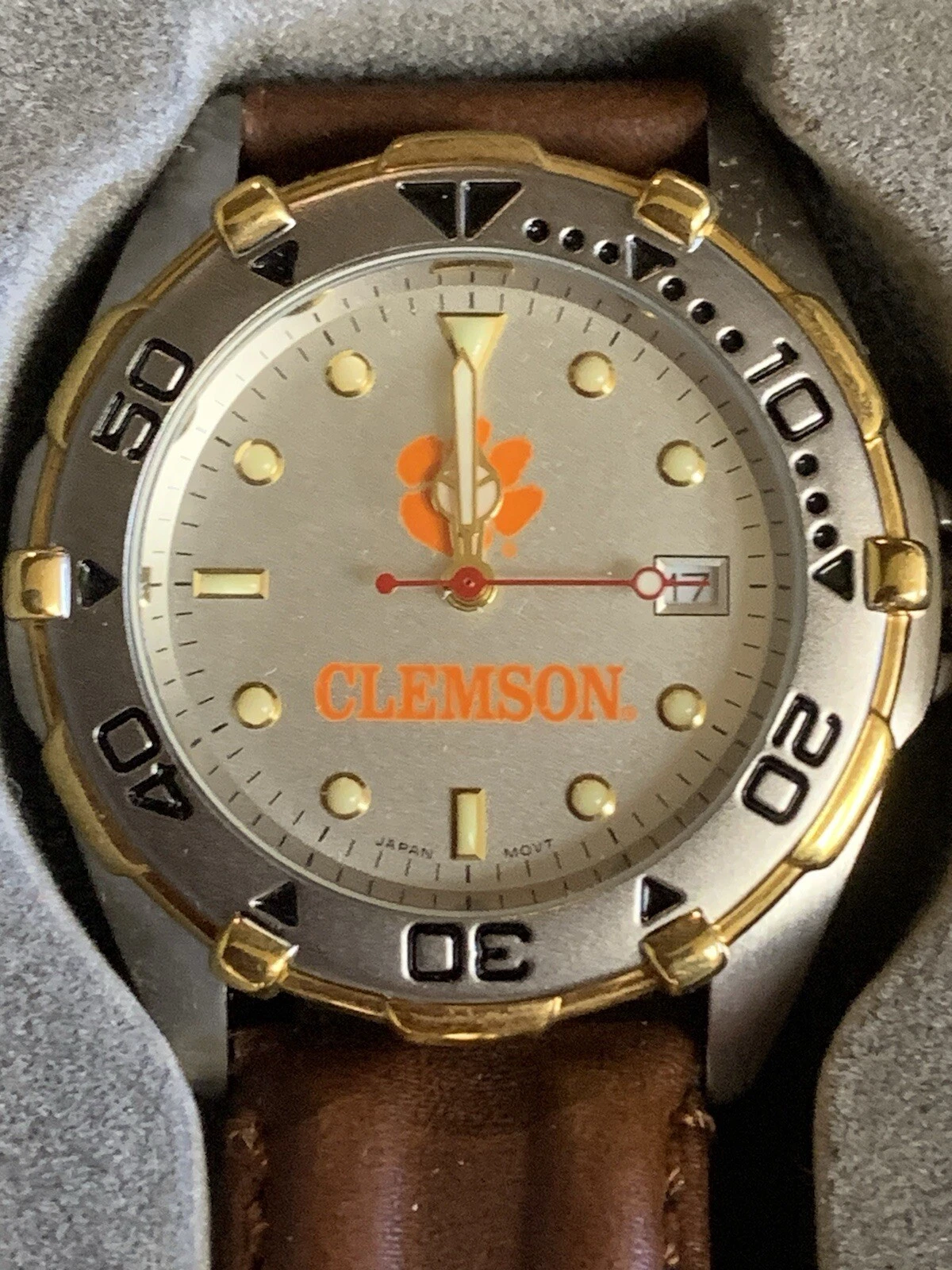 Hana Time’s Men’s Clemson University Swiss Made Steel Gen. Leather. Need battery