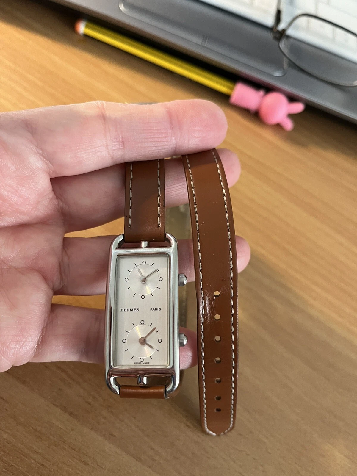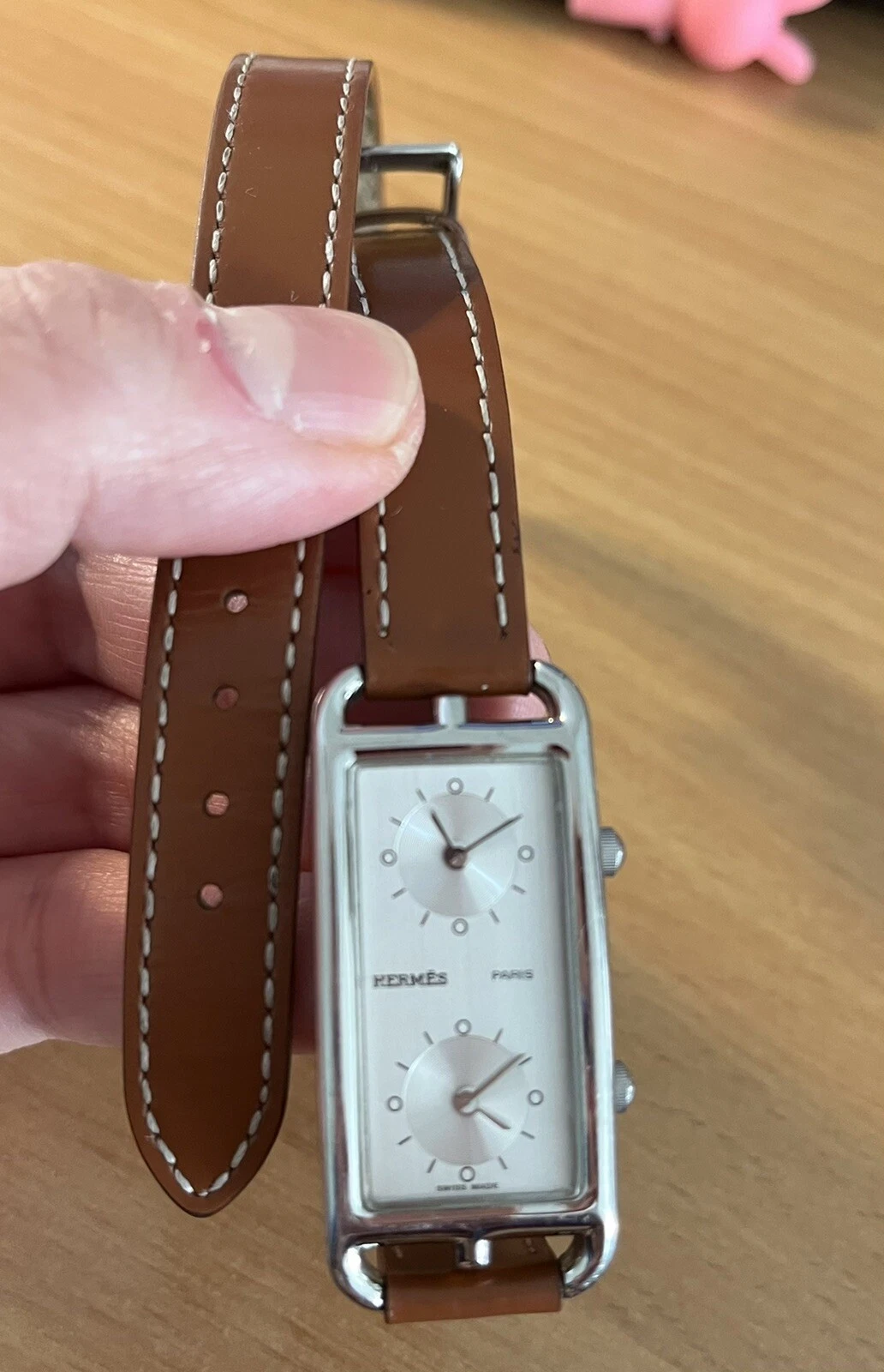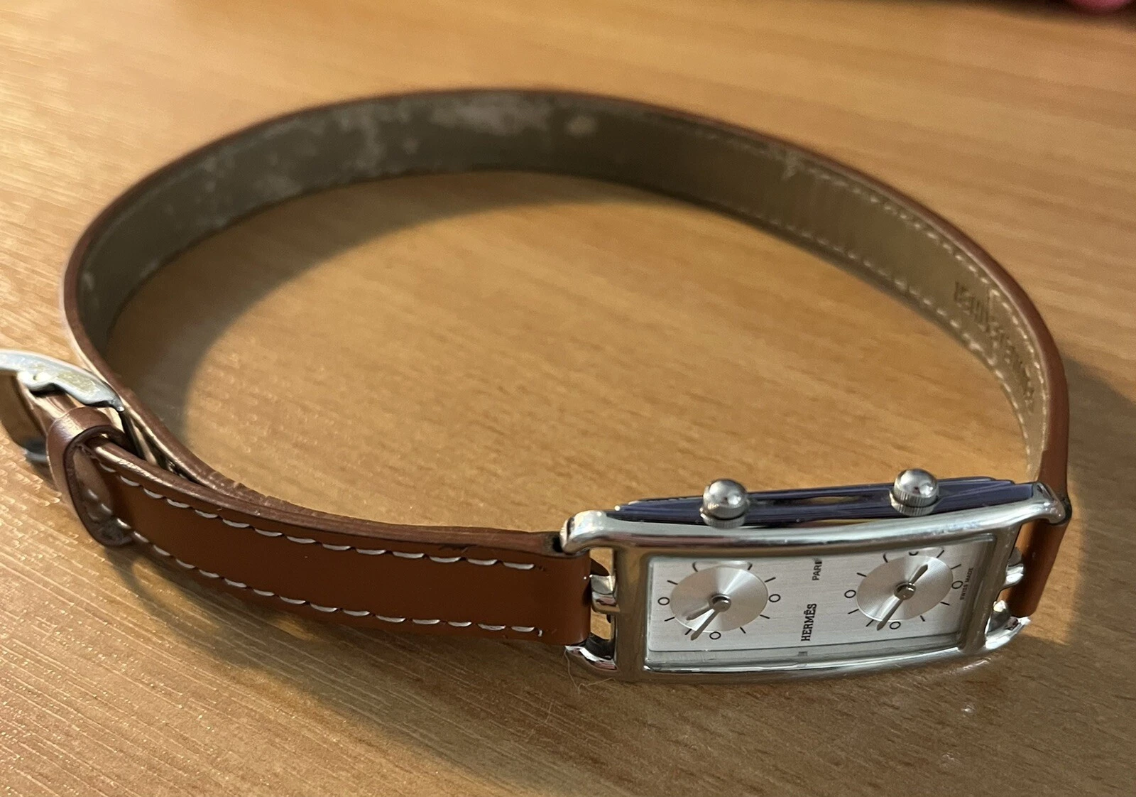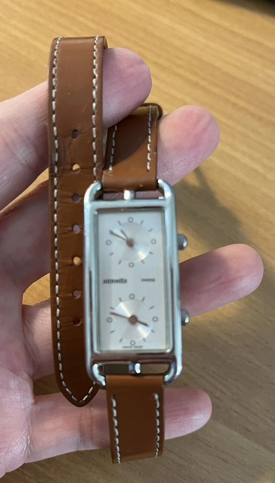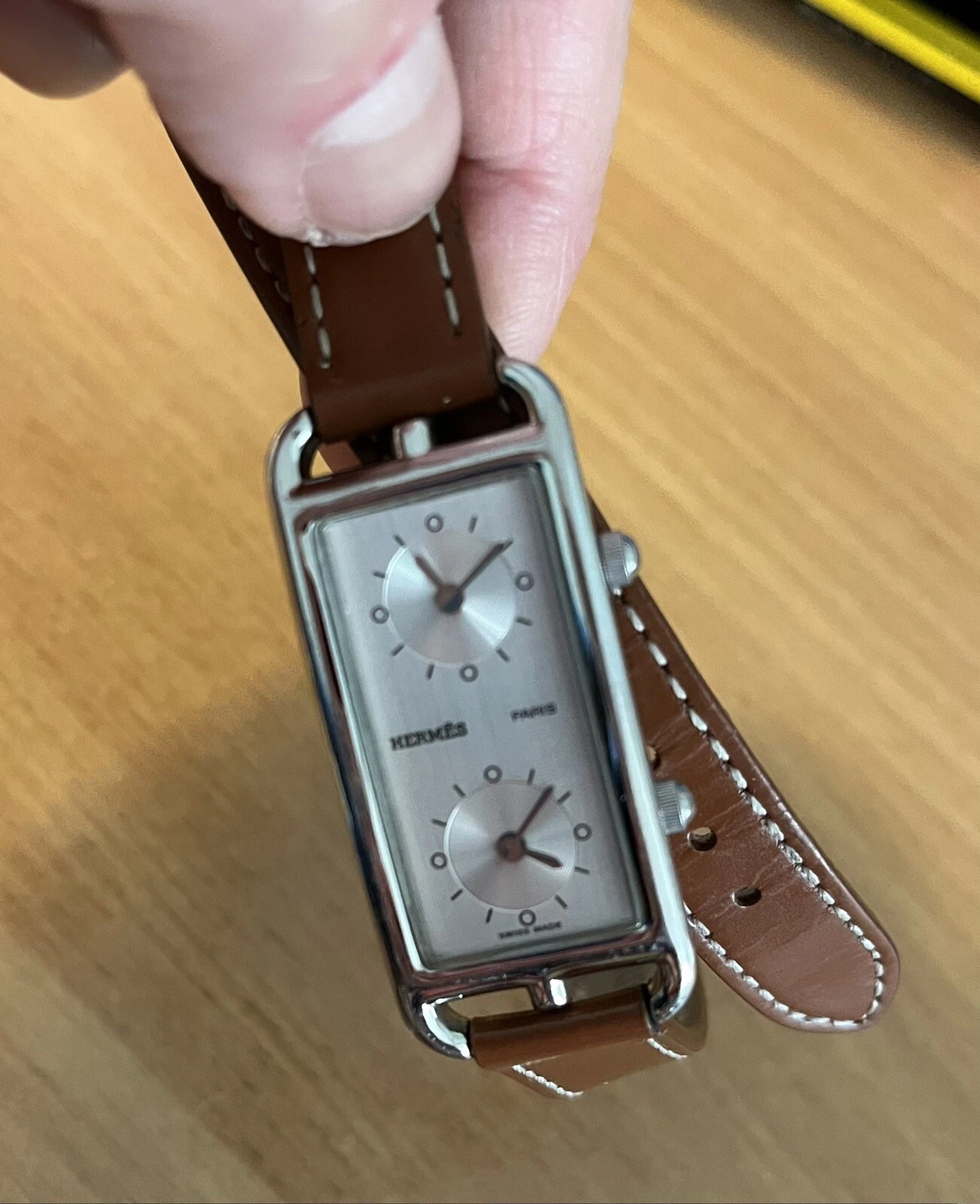 Hermes Montre Cape Cod Duzon steel dial ladies watch with Dual Time Zones