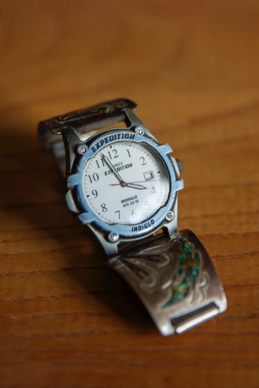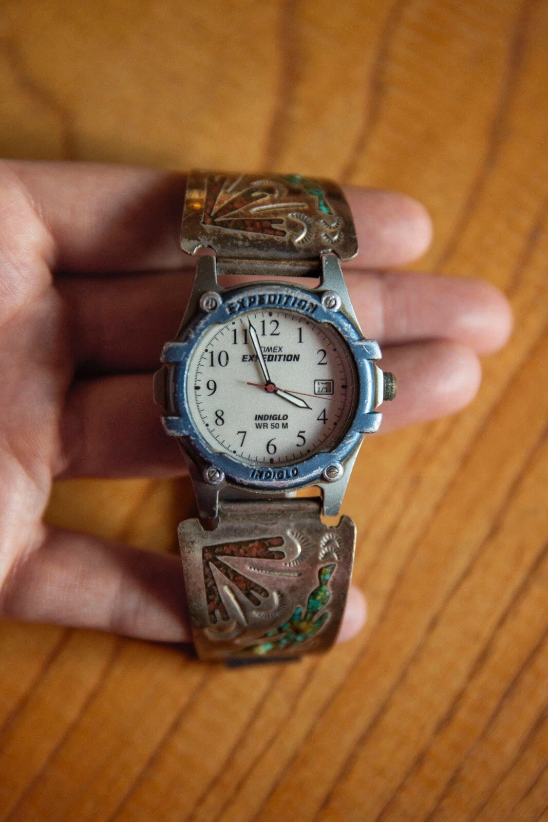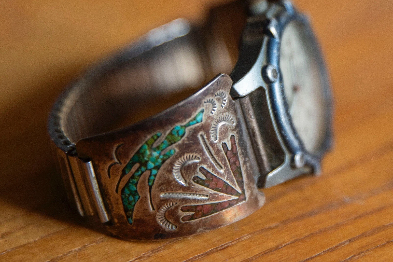 VTG Turquoise Etched Detailed Sterling Watch Band + Watch