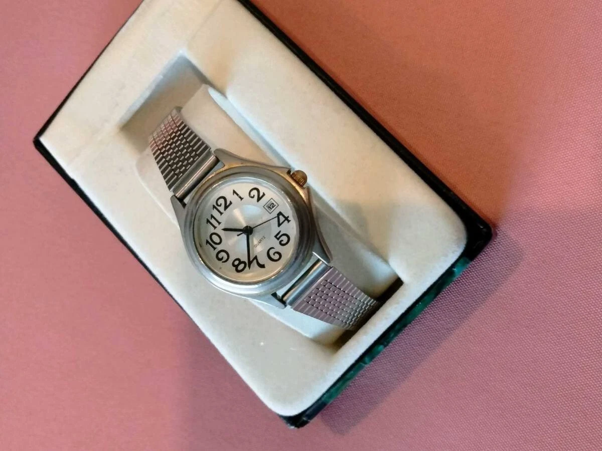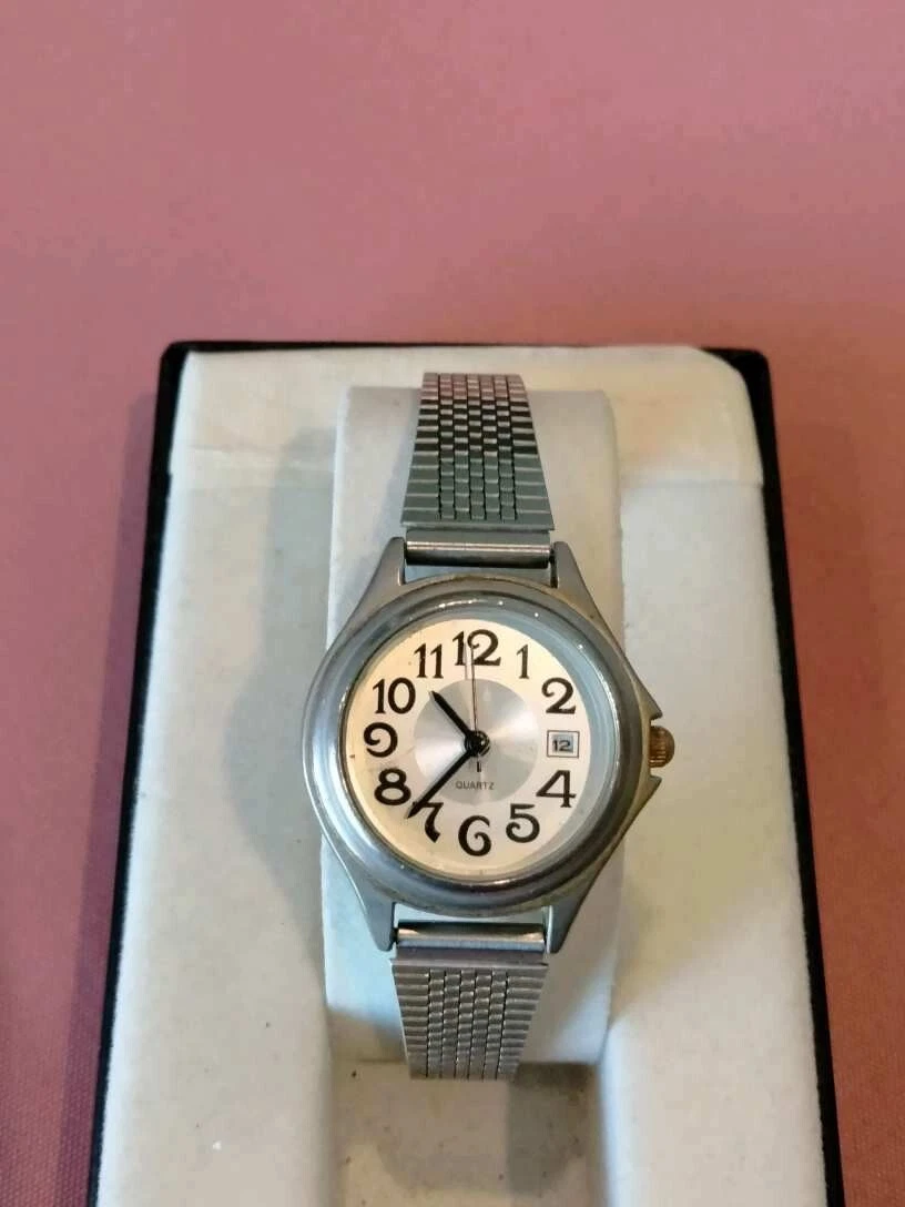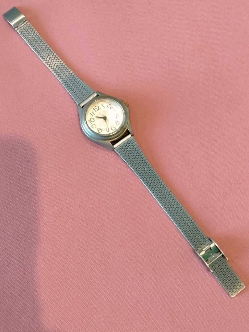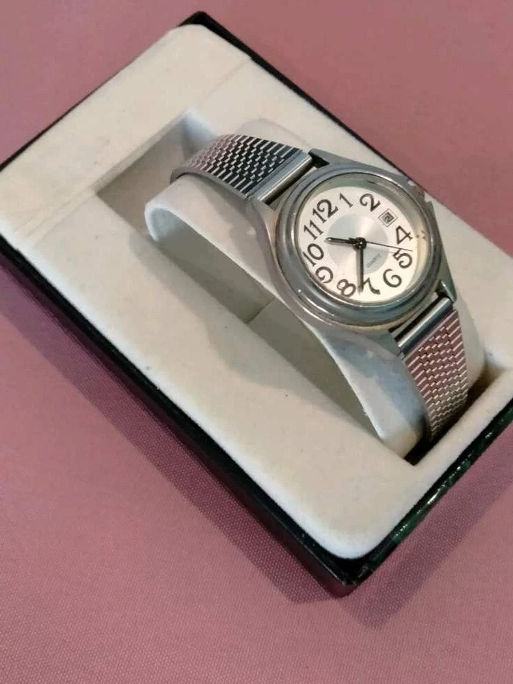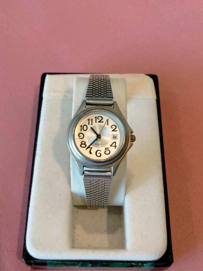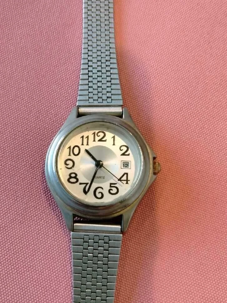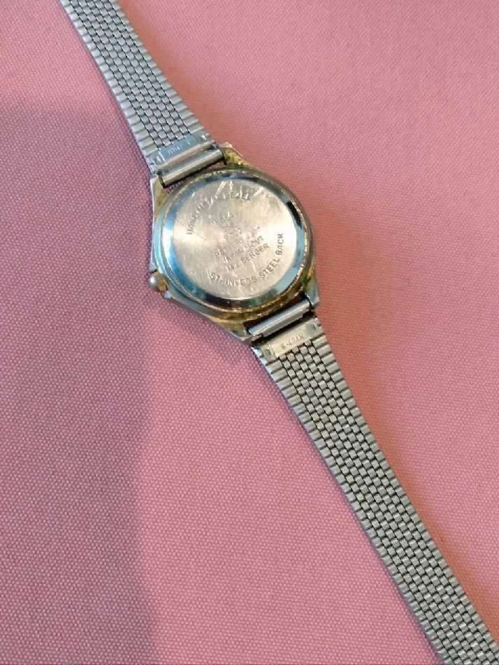 stainless steel fashion watch, s/s straps-bezel-and case.Runs and keeps time.