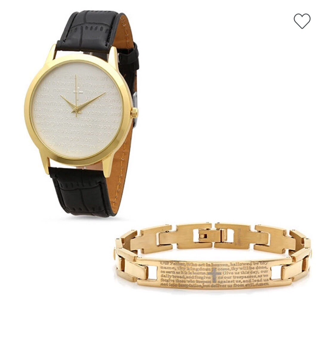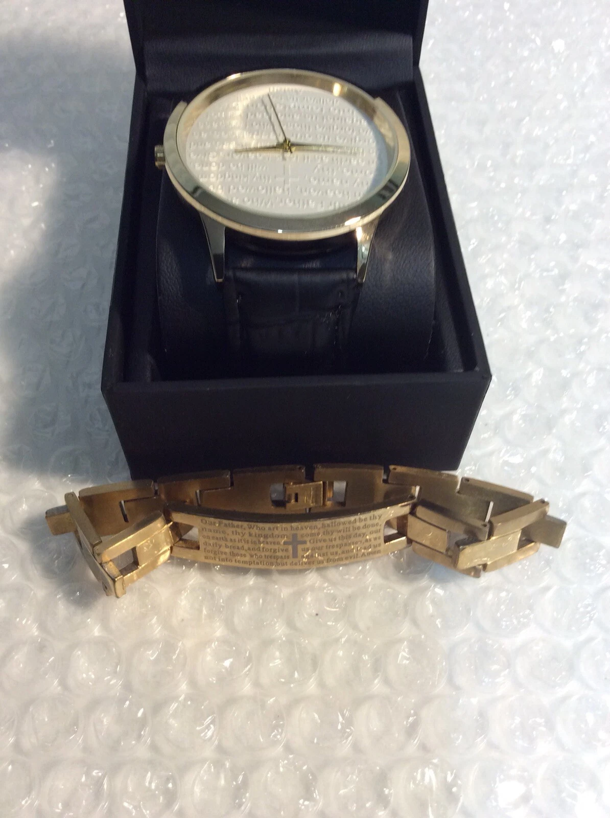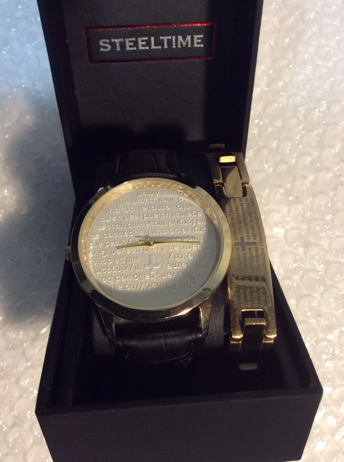 SteelTime The Lords Prayer Watch And Bracelet Set 18k Yellow Gold-plated