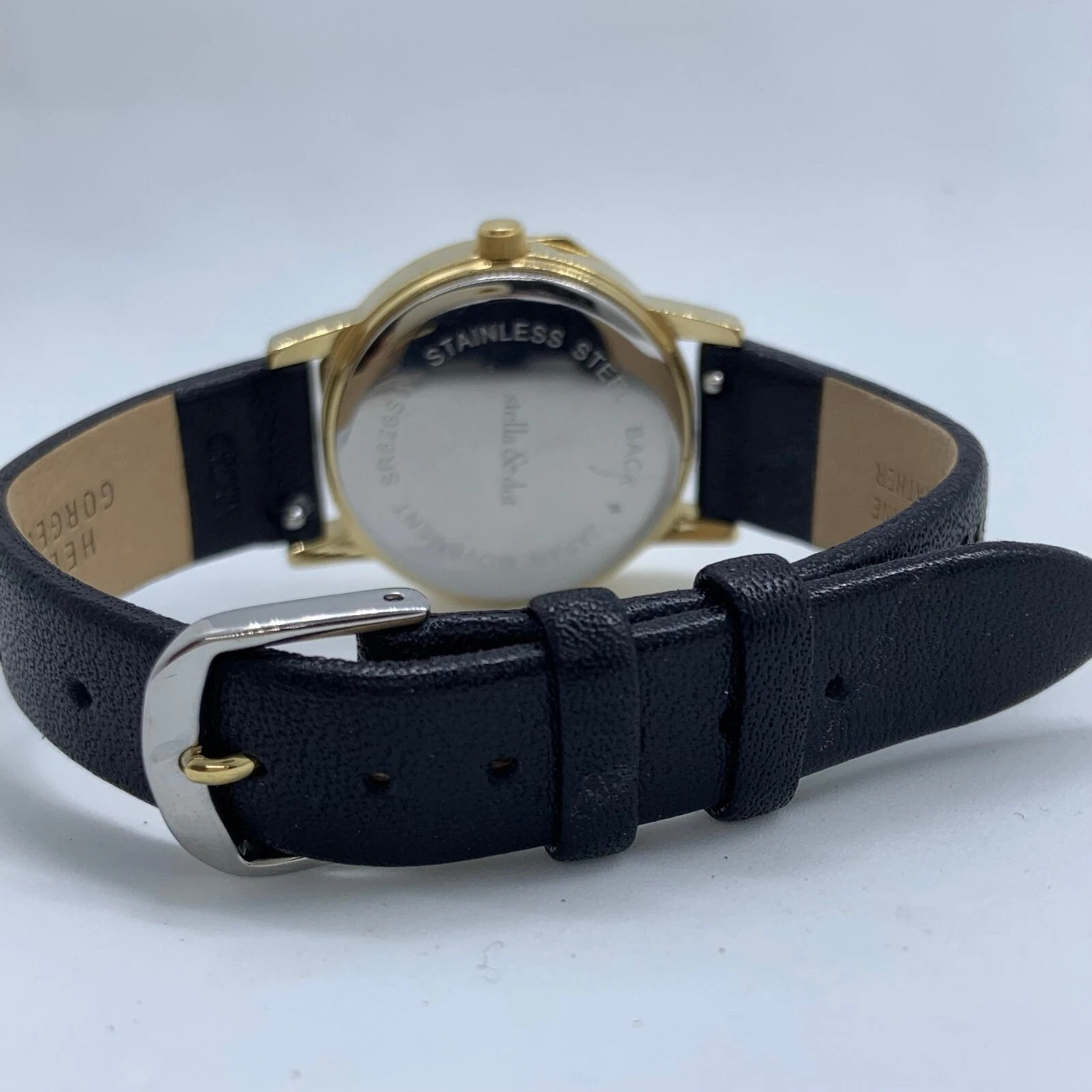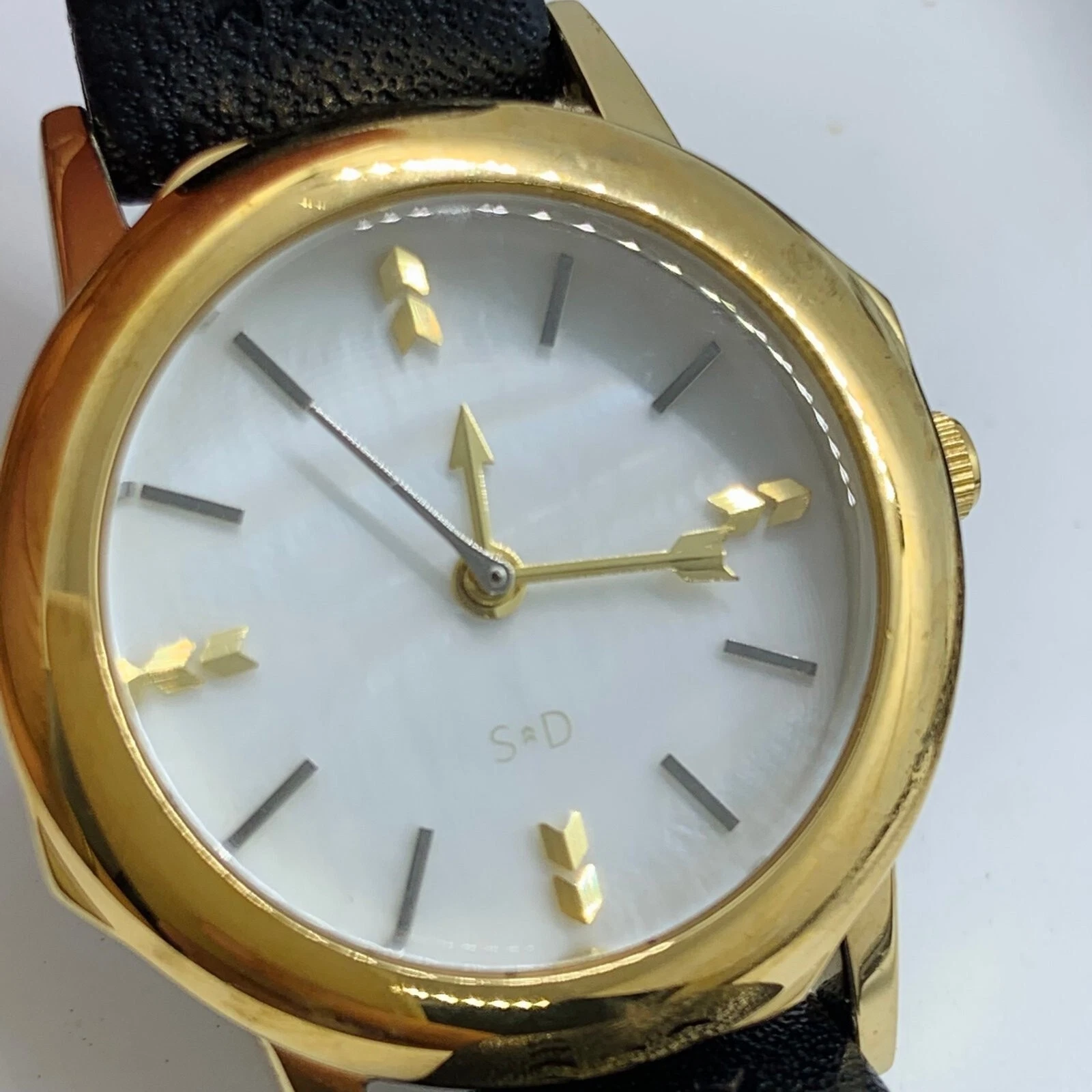 Stella & dot ladies 28mm Quartz analog gold tone watch MOP dial runs