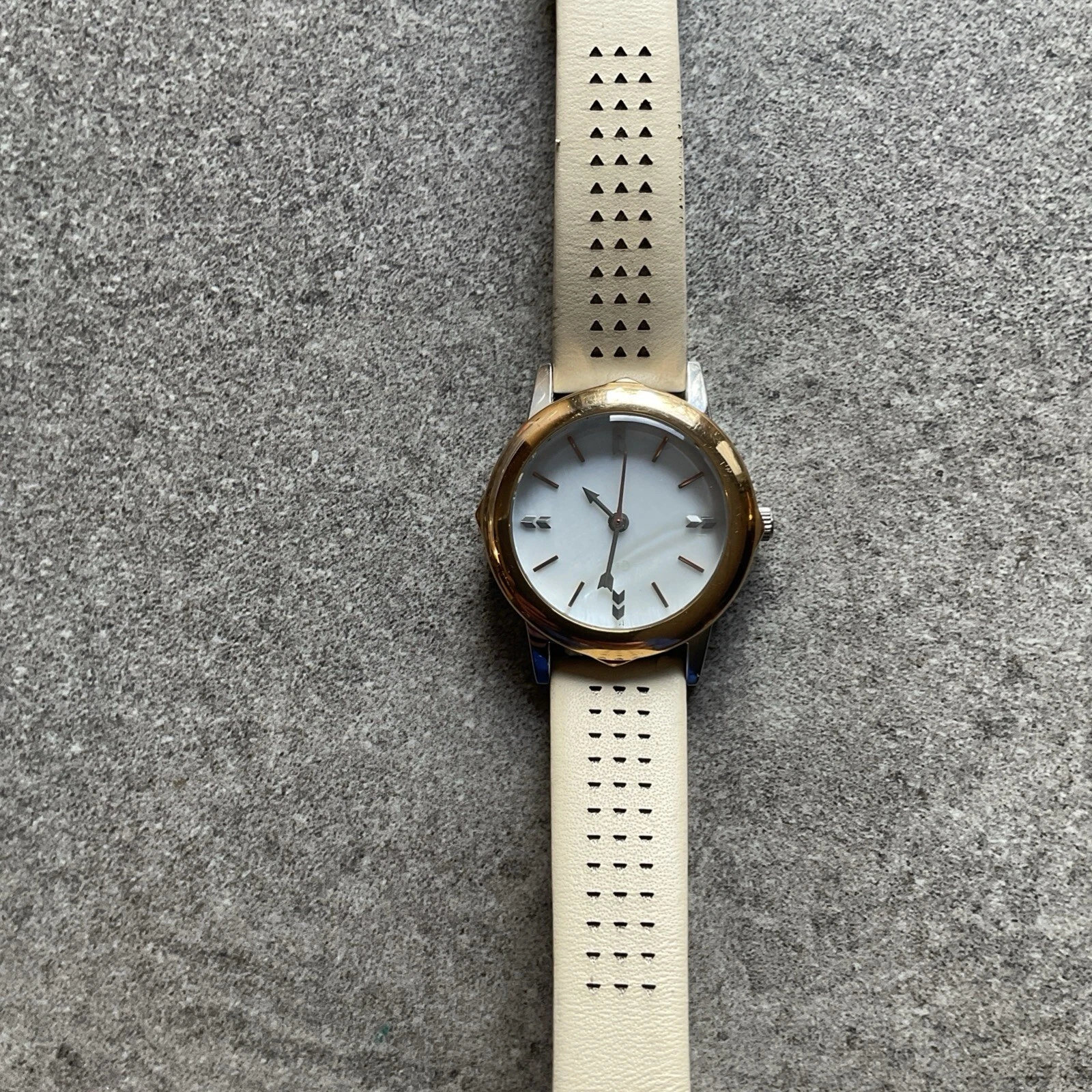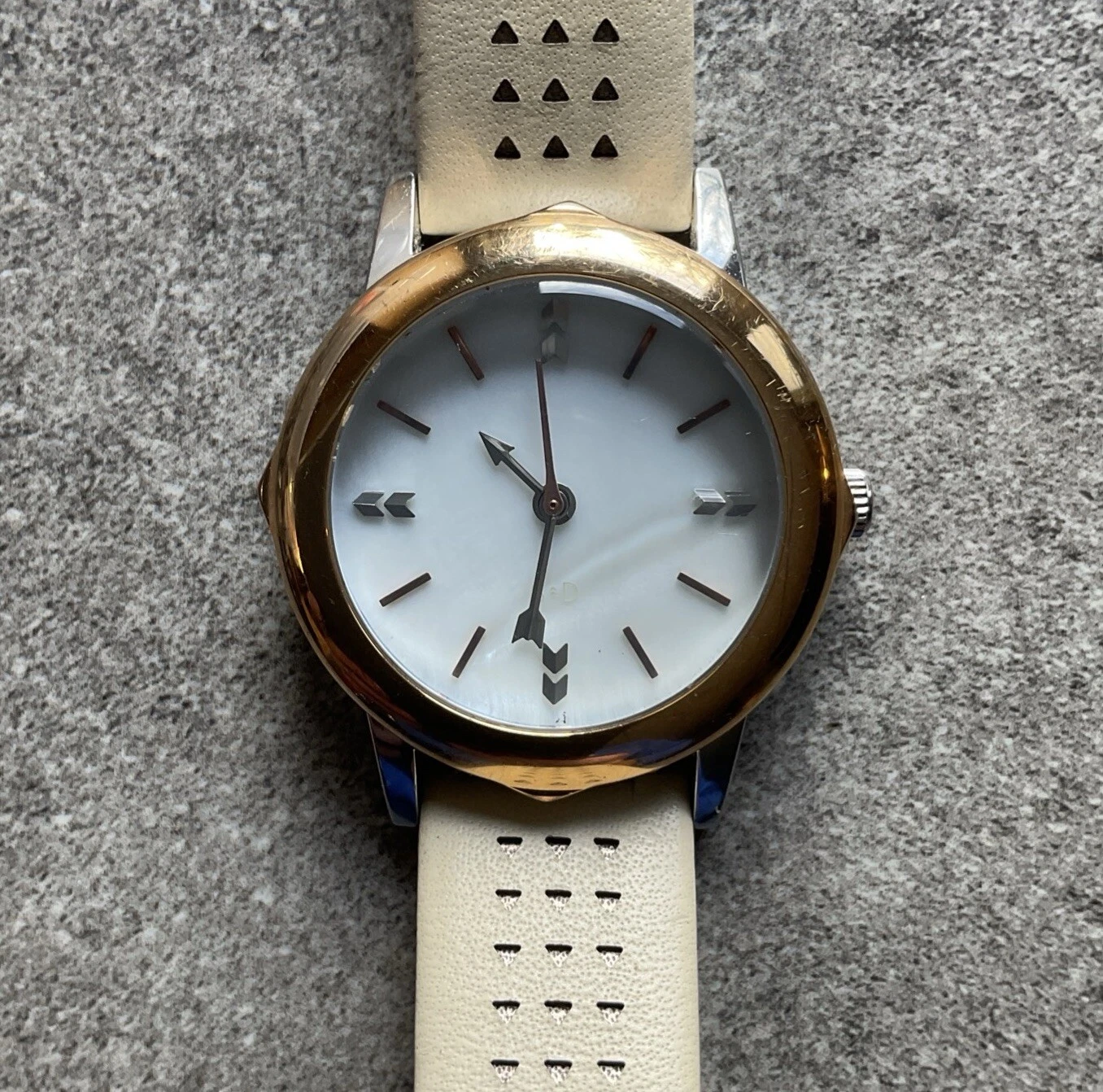 Stella & Dot Womens Watch 28mm Two Tone Case MOP Dial Leather Band A14