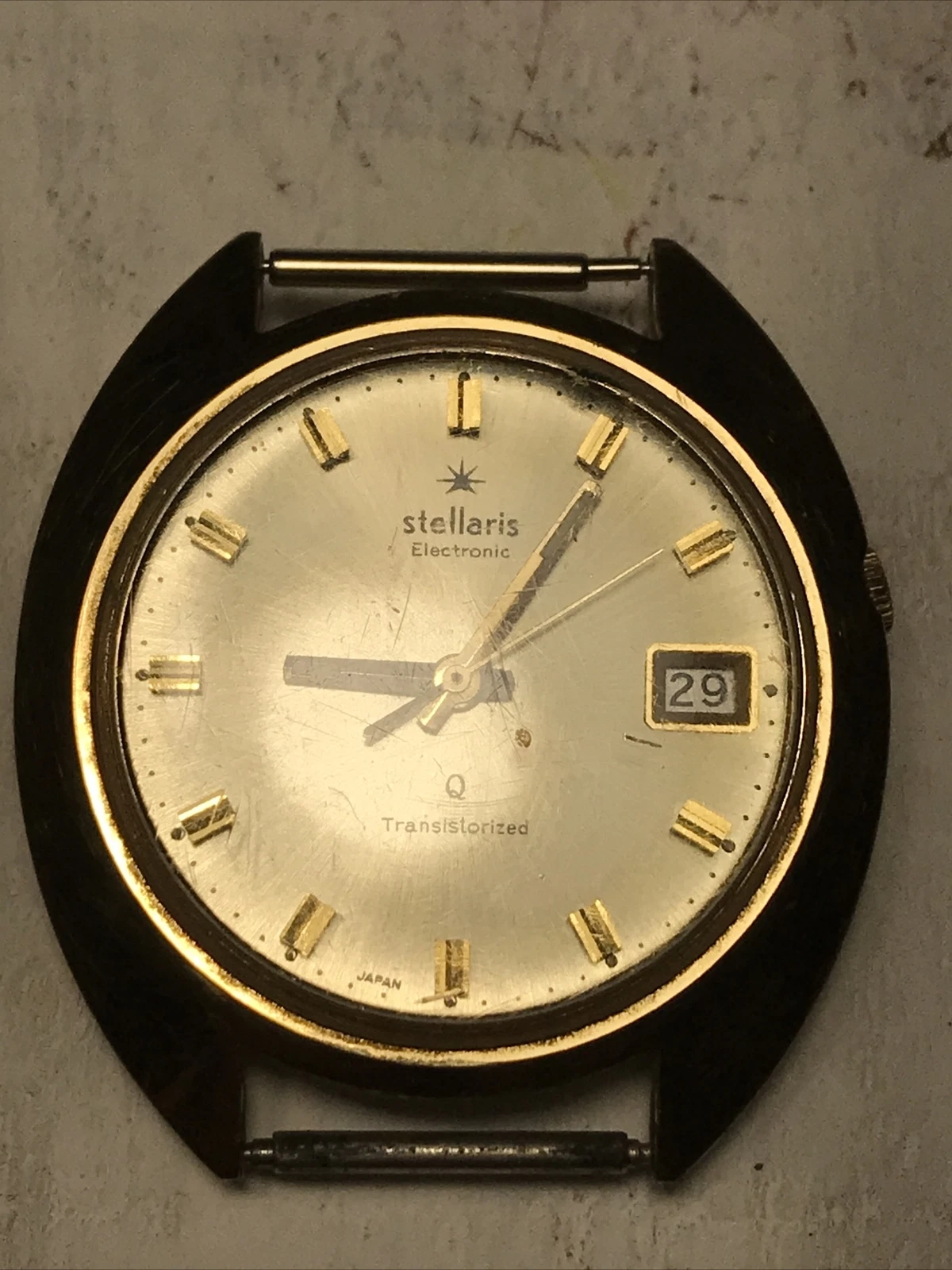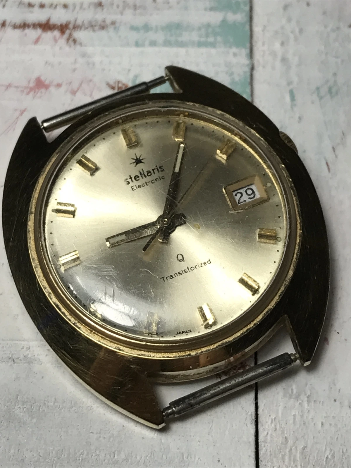 STELLARIS TRANSISTORIZED ELECTRONIC JAPAN CROWN AT 2 VINTAGE 1970s BROKEN WATCH