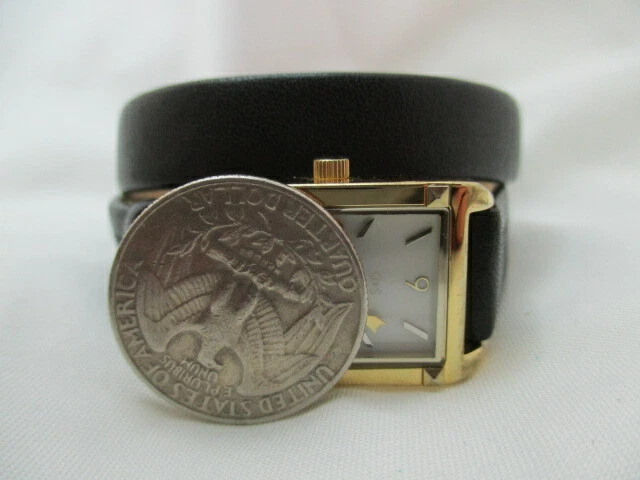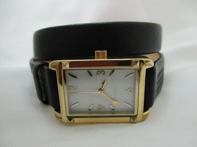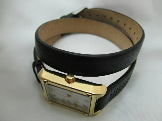 Stella & Dot Analog Wristwatch Black Wrap Around Buckle Buckle Gold Tone