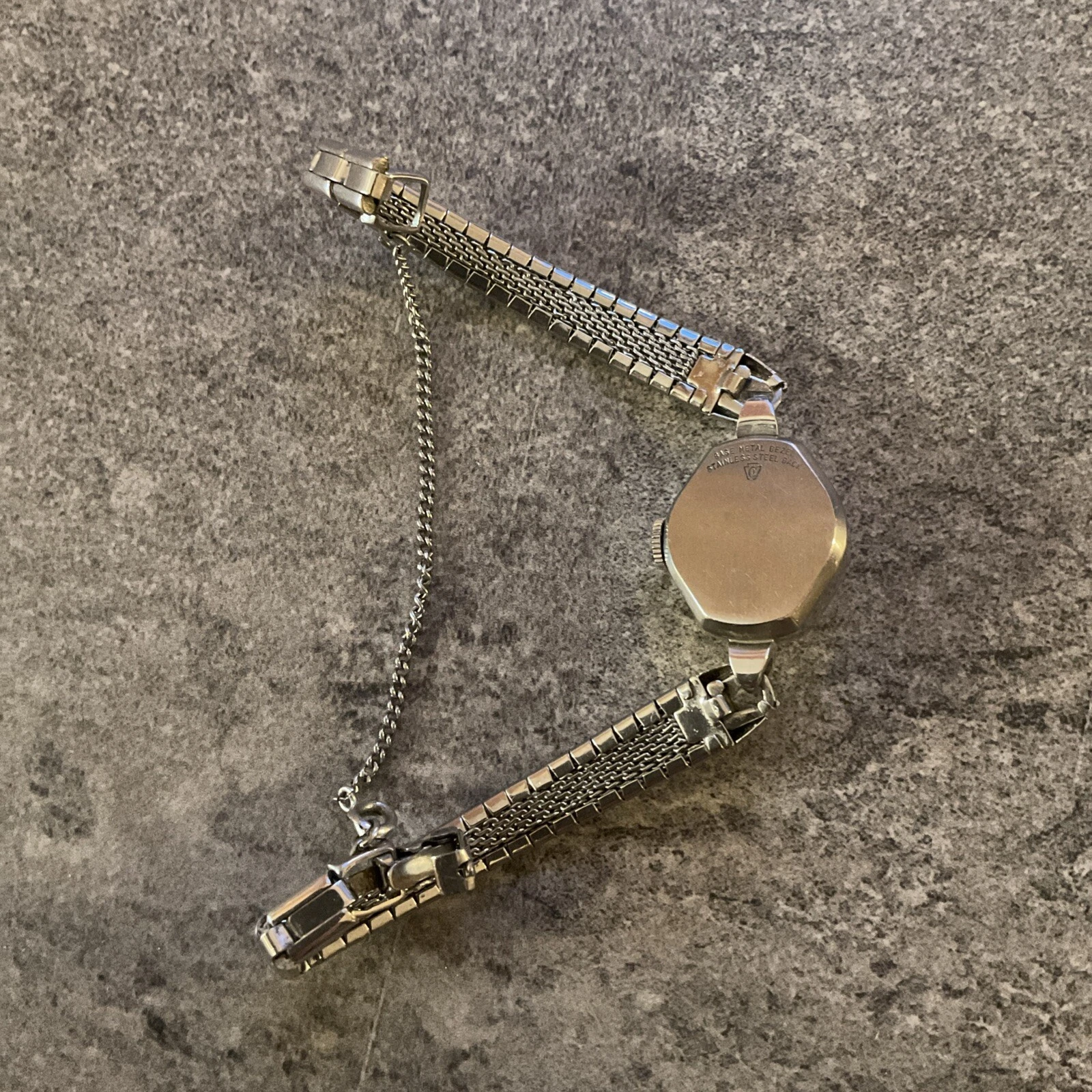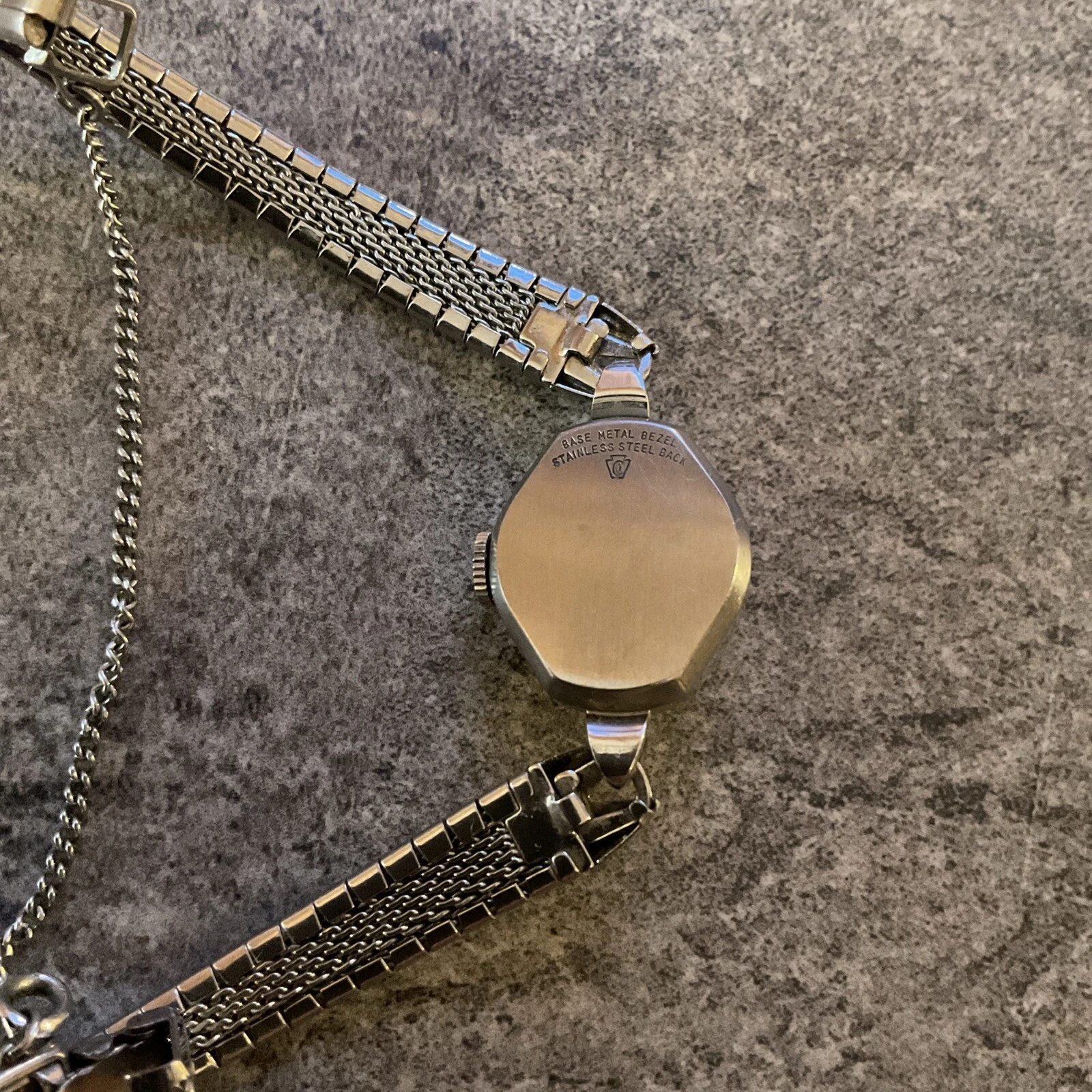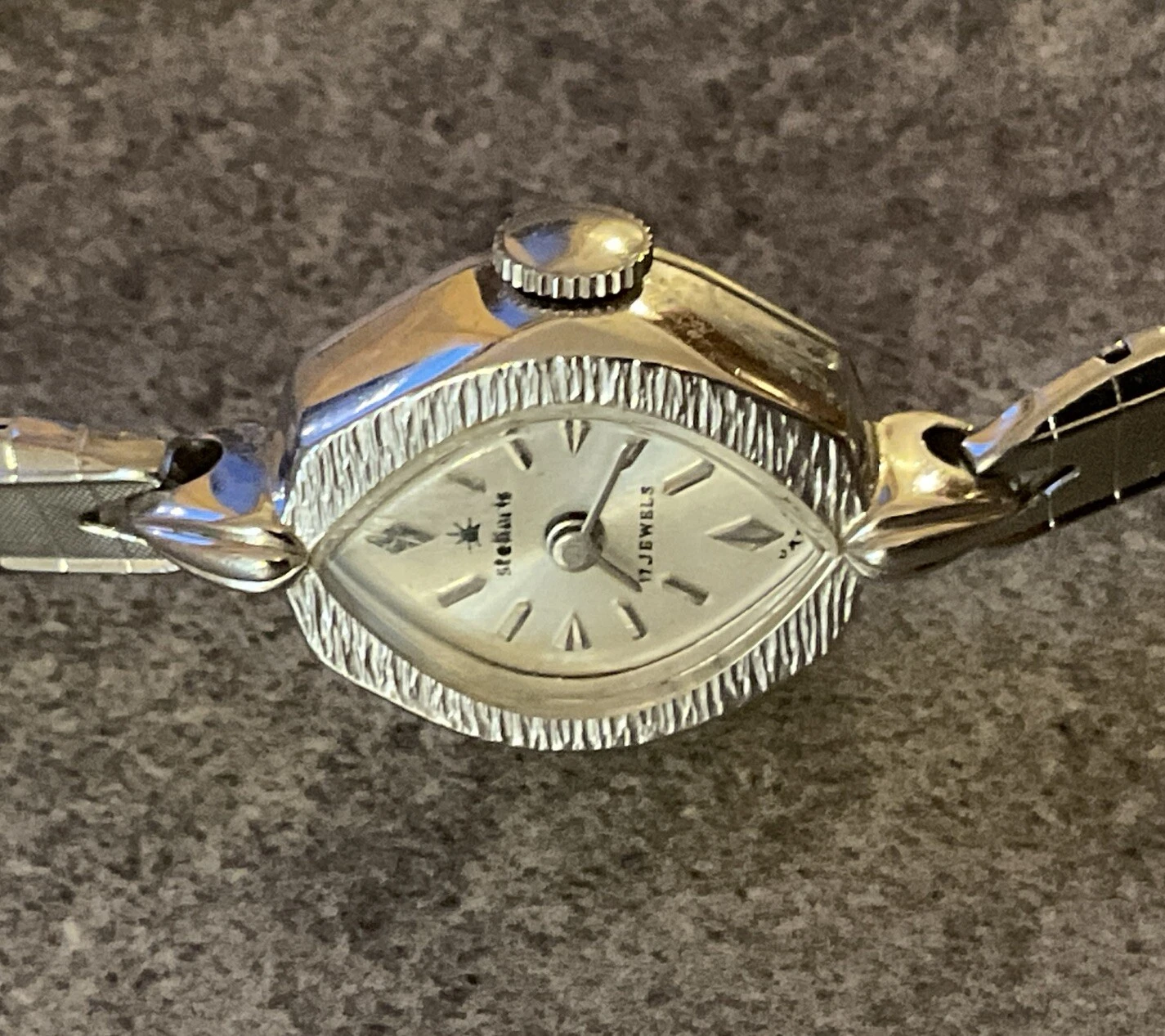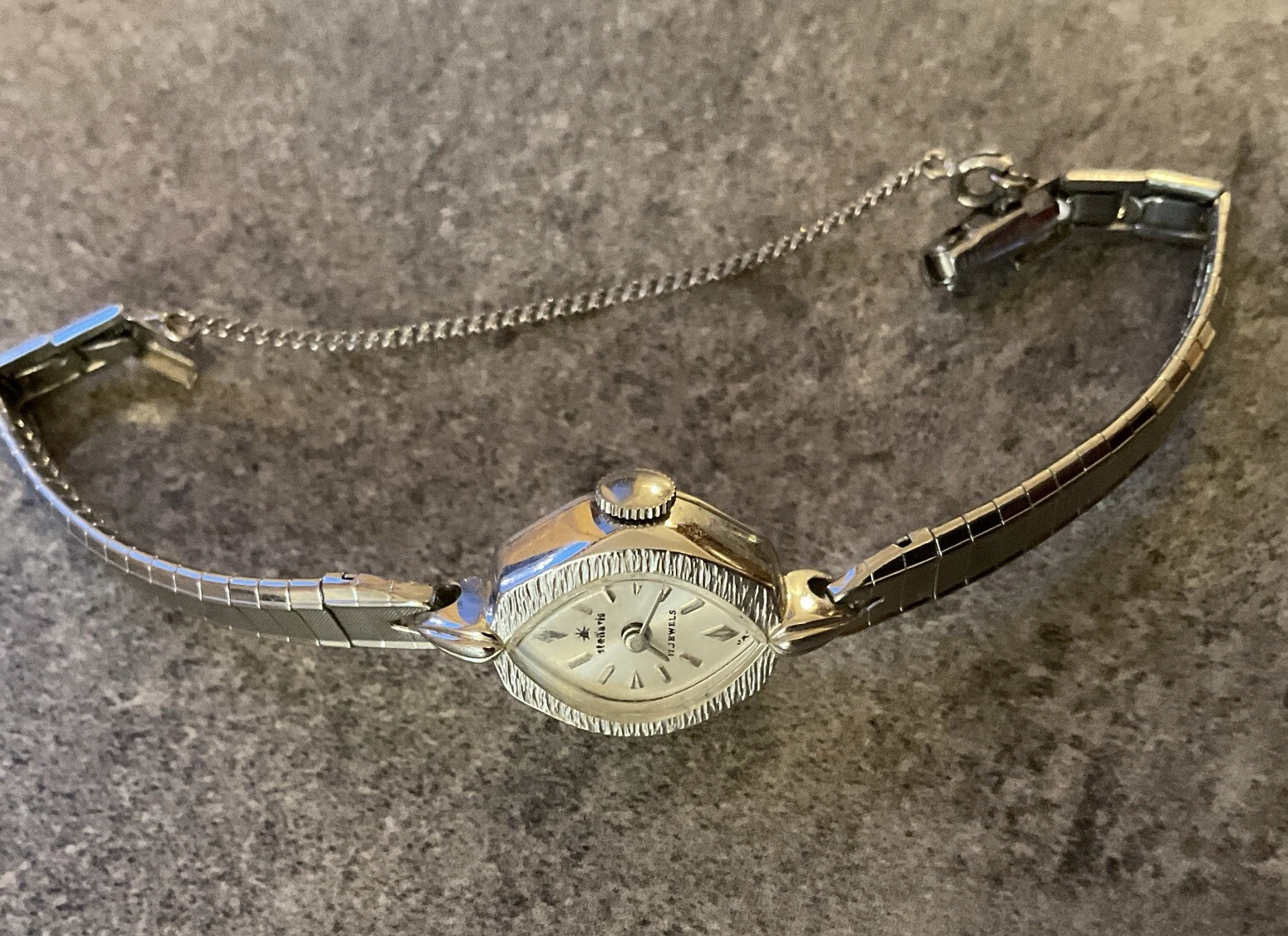 Vintage Ladies Stellaris 17 Jewels Mechanical Watch Silver Tone Case And Band A7